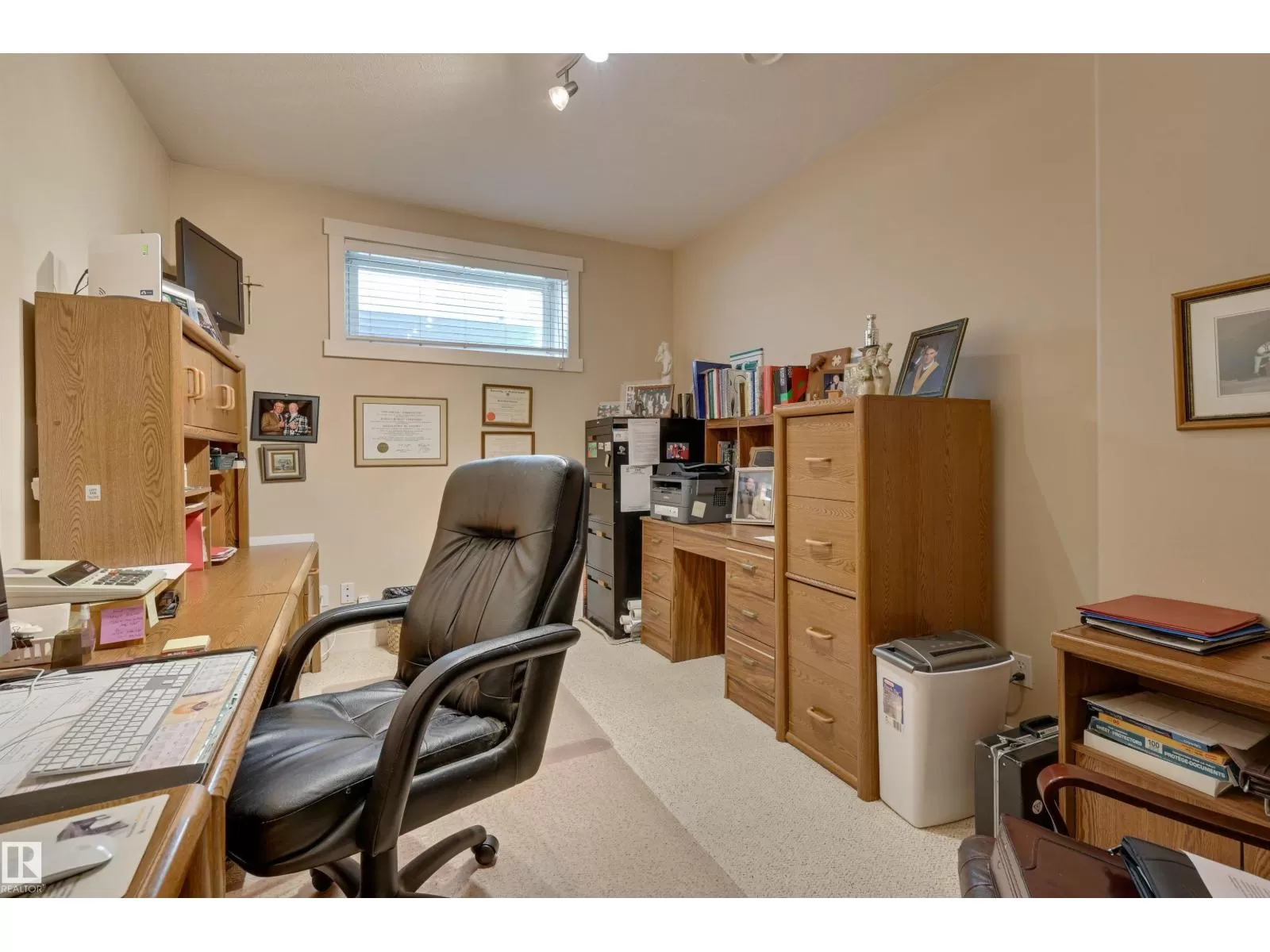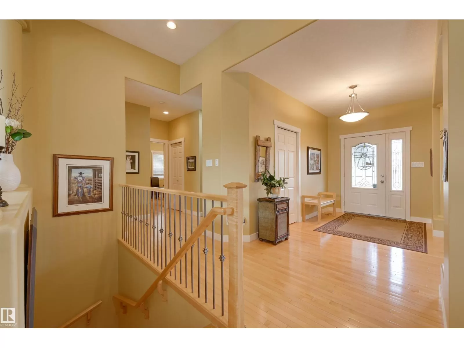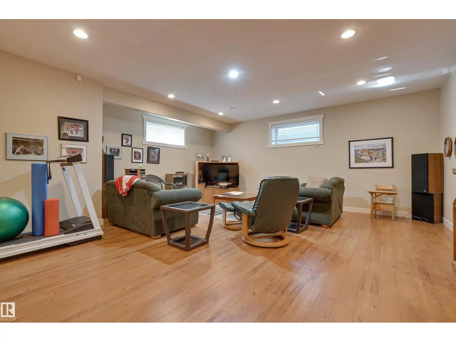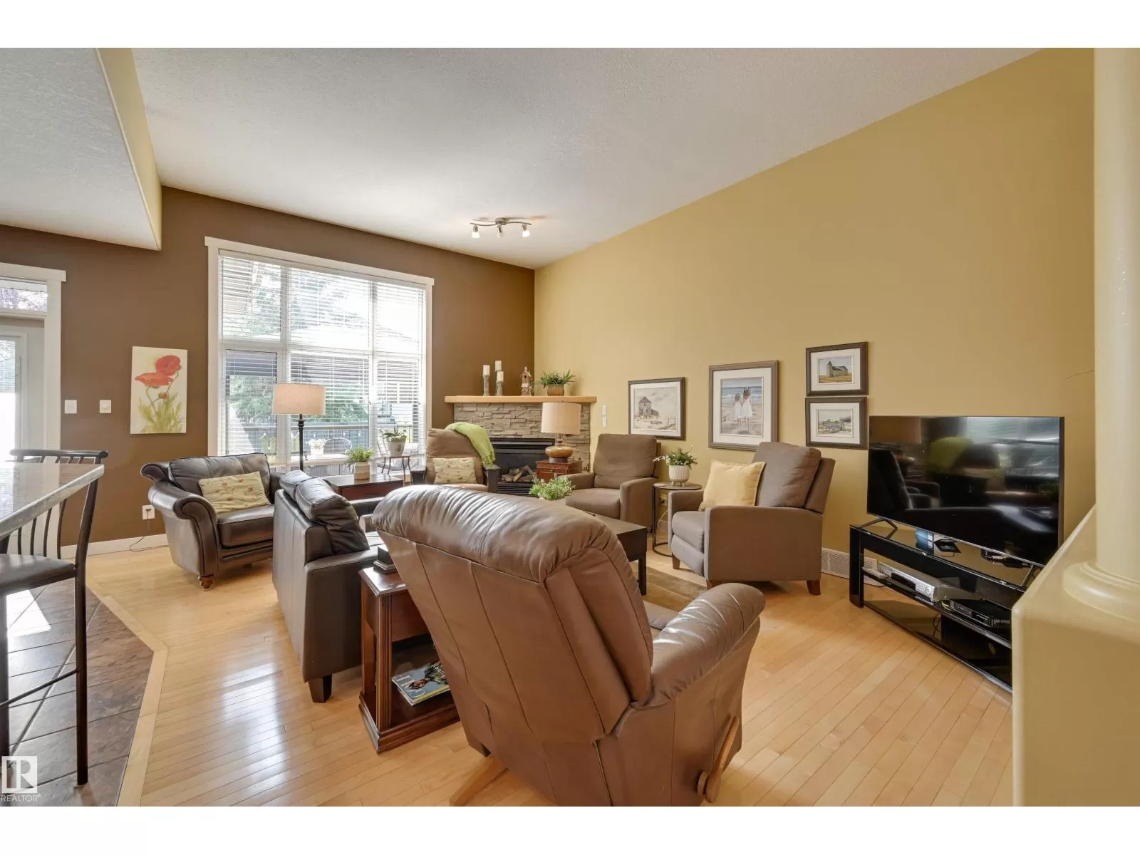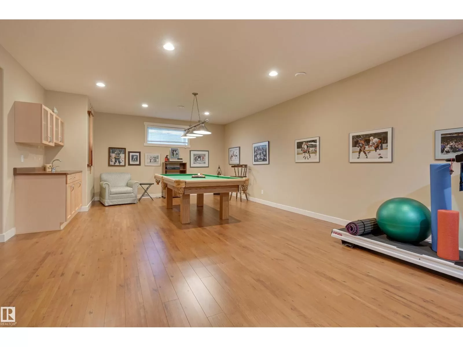 Located in College Woods, this fully finished home offers over 3,000 sq.ft. of living space with thoughtful upgrades throughout. The front veranda welcomes you & hardwood leads past formal dining room into the open concept kitchen with island & breakfast bar, granite counters, pantry, SS appliances, & breakfast nook overlooking the maintenance-free deck & sunny south-facing backyard. You will enjoy the natural light while sitting in the great room with gas fireplace. Enjoy the beautiful backyard view also from your primary bedroom with walk-in closet & 4-pc ensuite. Spacious second bedroom, & full bath, plus laundry complete the main floor. The lower level is perfect for entertaining: wet bar, family/TV room, games area with pool table, two additional bedrooms, & full bath. Enjoy 9 ft ceilings on both levels, abundance of natural light, A/C & in-floor heat, & U/G sprinklers, aggregate driveway. The fully finished double garage has a rubber floor. Quiet location close to trails, parks, & all amenities. (id:27476)