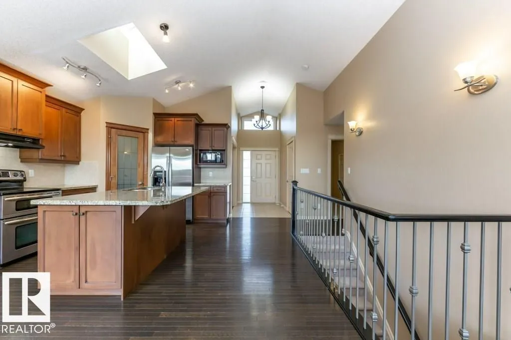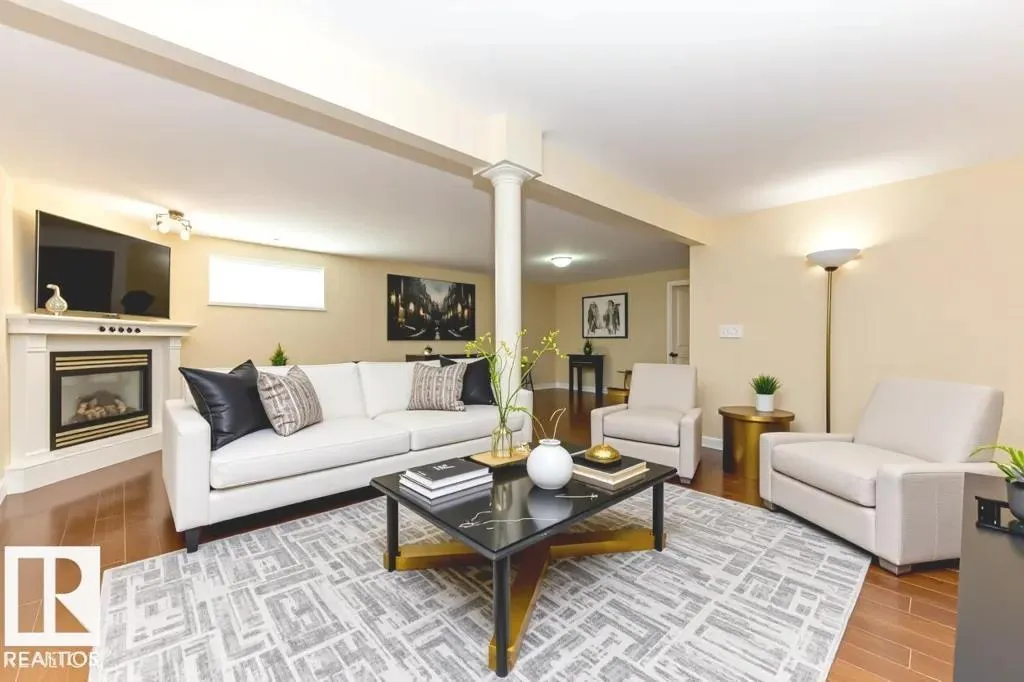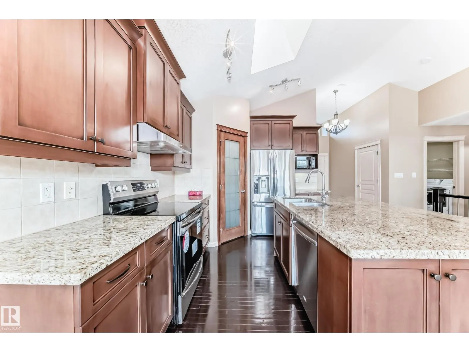 Welcome to this beautiful air conditioned TWO plus TWO Bedrooms and a DEN bungalow located in the prestigious Cameron Heights community, offering over 2800 square feet of living space, including a fully finished basement. The main floor boasts an open design with hardwood flooring, vaulted ceilings, skylight and many windows allowing lots of natural light. The large living room features a gas fireplace and large windows. The Kitchen is equipped with ample cabinetry, a corner pantry, a massive island, granite countertops with custom cabinetry, built-in-stainless steel appliances. The spacious Primary Bedroom can accommodate a full King size bed, boasts a walk in closet, and bright ensuite with soaker tub. The second bedroom, den, four-piece bath and the main floor laundry complete this level. The fully finished basement has a large rec area with gas fireplace, 2 large bedrooms, a luxurious bath with enclosed jacuzzi/steam shower, storage and mechanical room. Great location with parks, trails and ravines. (id:27476)