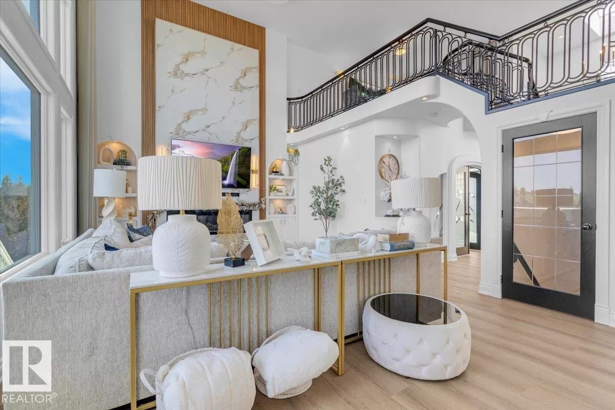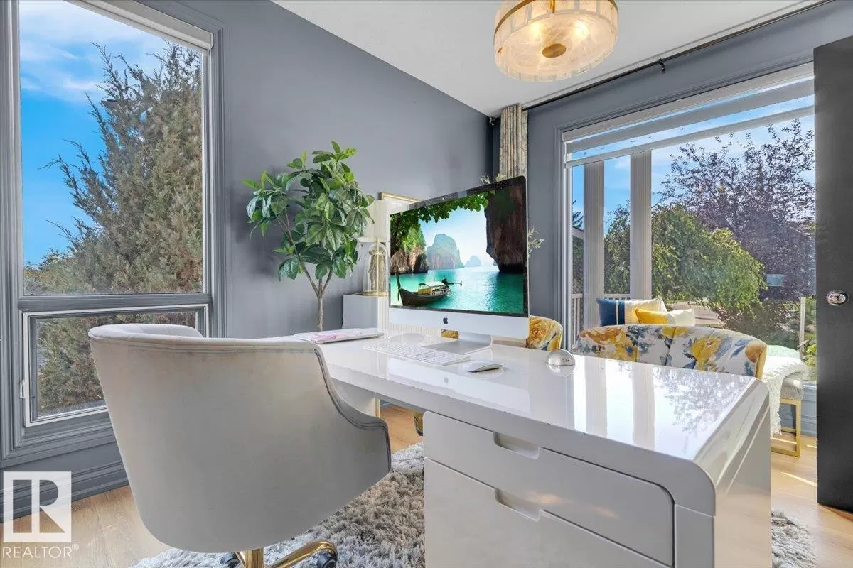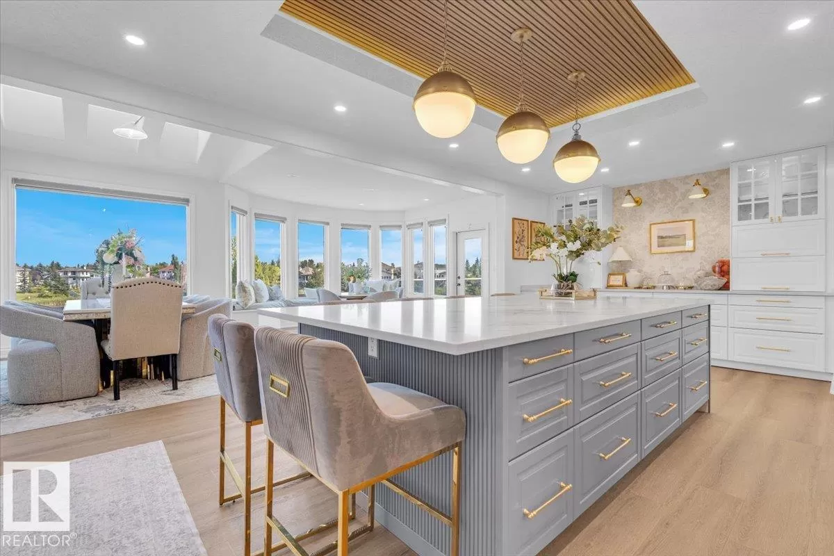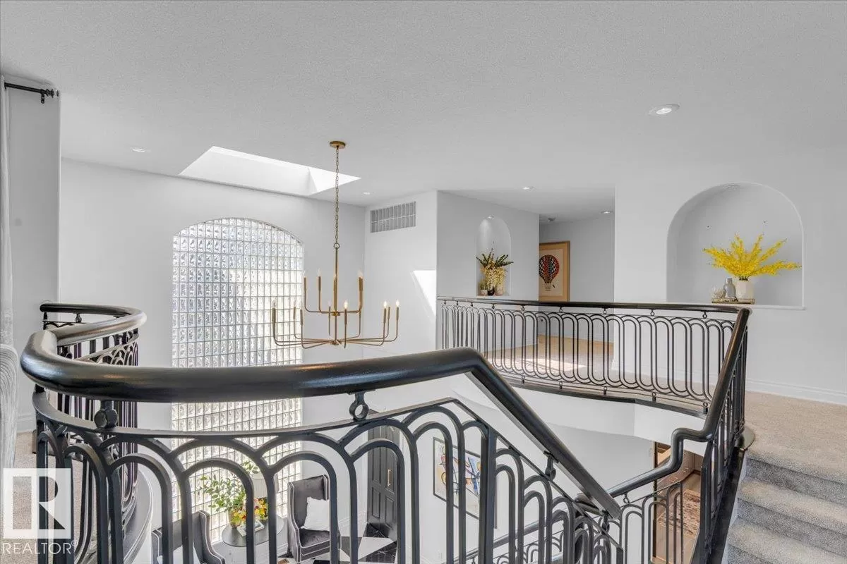 Nestled in a quiet Twin Brooks cul-de-sac, this fully upgraded estate sits on the communityâs largest pie-shaped lot with stunning pond and green space views. Featuring 4 bedrooms on the first floor and 1 bedroom in the basement, 4 full baths, and 2 half baths. This home welcomes you with a grand bifurcated staircase and soaring open-to-below living room. The oversized chefâs kitchen shines with premium appliances, a servery, and skylight, complemented by a spacious dining area, private den, and designer laundry with dual high-end washers and dryers. Upstairs, the luxurious primary suite offers a spa-like 5-piece ensuite and massive walk-in closet, while a second bedroom boasts its own ensuite and skylight. A finished basement adds a family room, rare indoor heated pool, another bedroom, and third washer. Outdoors, enjoy multiple decks and landscaped gardens. This property also includes automated blinds, 2 Electric Fire Place, a triple car garage, and high-efficiency HVAC. (id:27476)