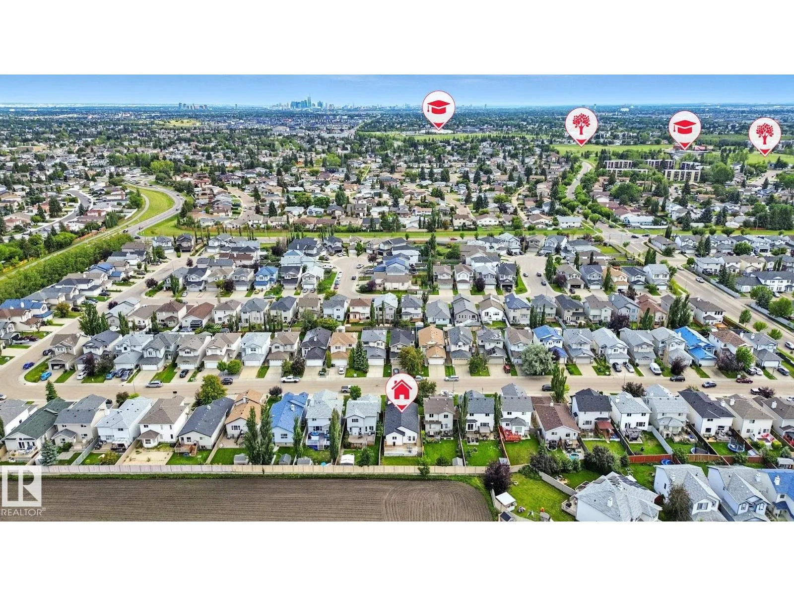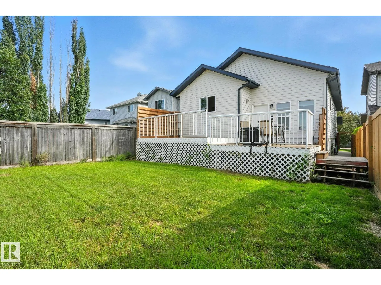 This home offers a rare and functional layout, featuring a secondary in-law suite split vertically rather than the typical top-and-bottom design, giving both units their own upper and lower floors filled with natural light. Located in the quiet NW community of Canossa, this spacious property offers over 2,800 sq. ft. of developed living space with 5 bedrooms and 3 full bathrooms. The main unit includes 3 bedrooms, 2 baths, and an upgraded kitchen, while the second unit offers 2 bedrooms, 1 bath, and a private rear entrance. Updates include new vinyl plank flooring, carpet in the bedrooms, and newer shingles. The fully fenced backyard backs onto no neighbours and features a two-tier deck, plus a large driveway and double attached garage for ample parking. With schools, parks, shopping and the Henday just minutes away, this home offers everyday convenience in a family friendly location. (id:27476)