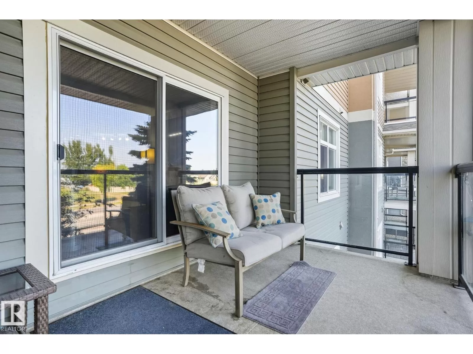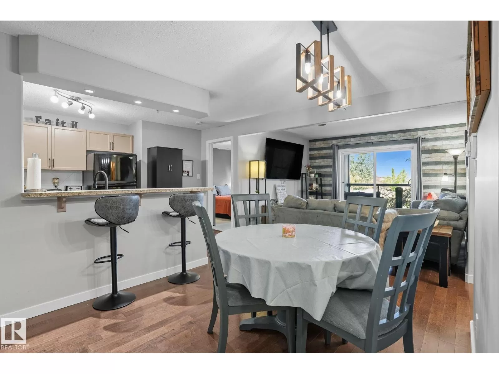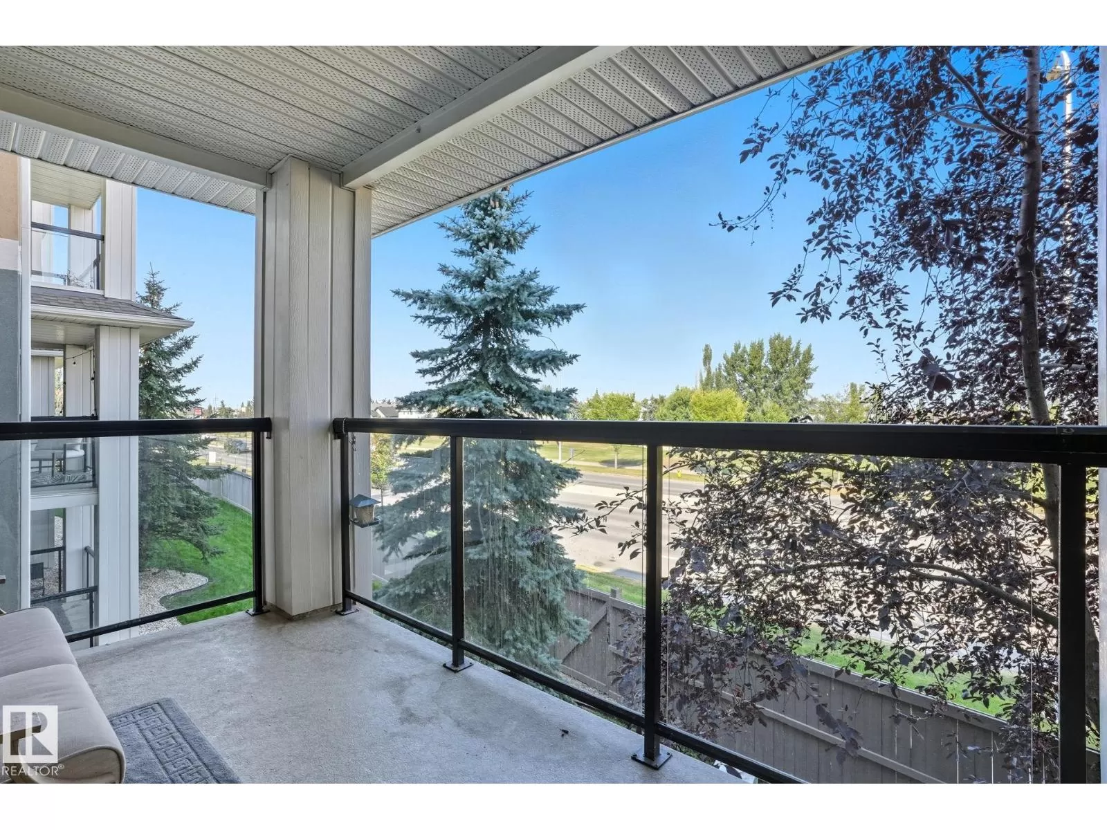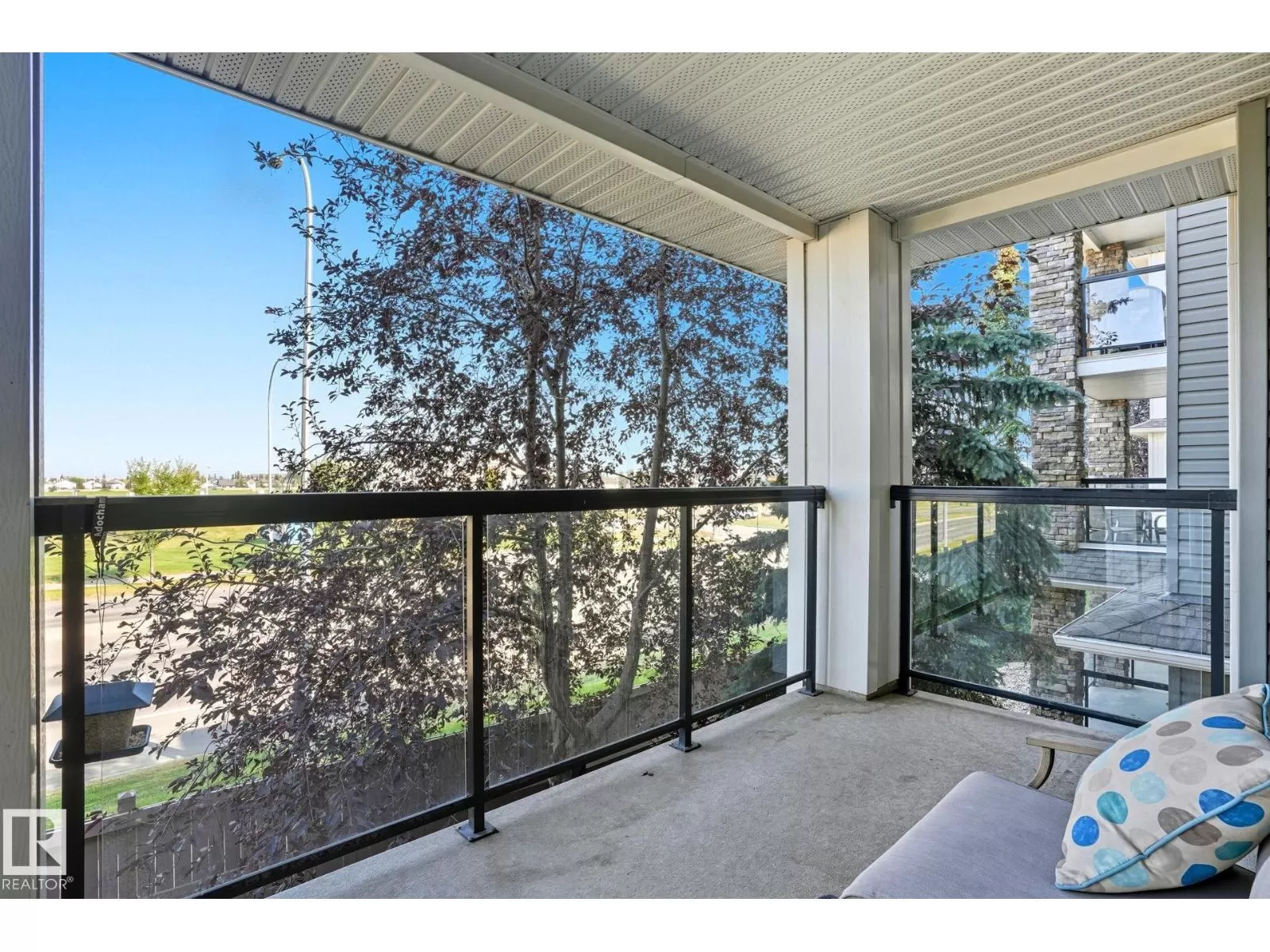 Modern 2-bed, 2-bath condo on the 2nd floor of Rutherford Gate! This open-concept unit features hardwood & tile flooring, a sleek kitchen with ample cabinetry & counter space, and a spacious dining area. Step out to your private balcony with gas hookupâperfect for BBQs. The primary suite includes a walk-through closet & 3pc ensuite, while the second bedroom & 4pc bath are on the opposite side for added privacy. Enjoy the convenience of in-suite laundry with storage, plus 2 titled underground parking stalls near the elevator/stairs. Building amenities include a main-floor fitness room, 2nd-floor social room with kitchenette, and a guest suite. Fantastic locationâjust minutes to parks, schools, shopping, walking paths, basketball courts, and all daily essentials. Quick access to Anthony Henday & the airport! (id:27476)