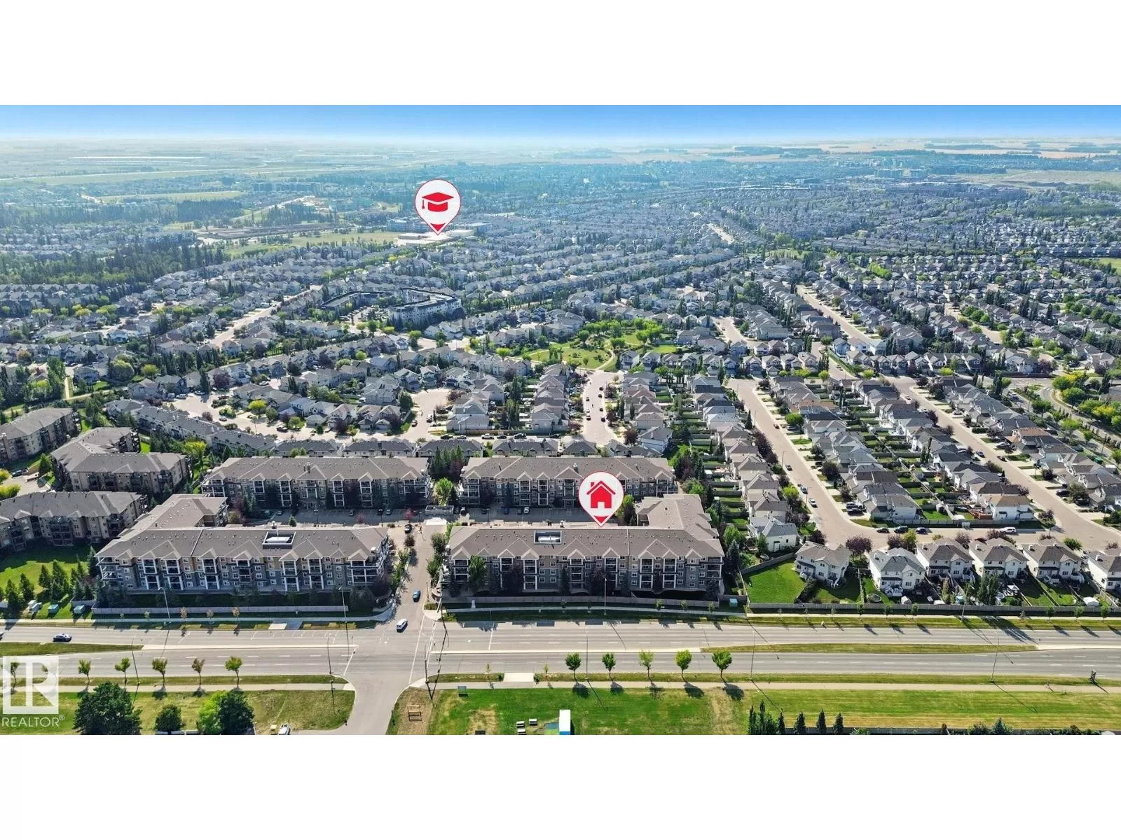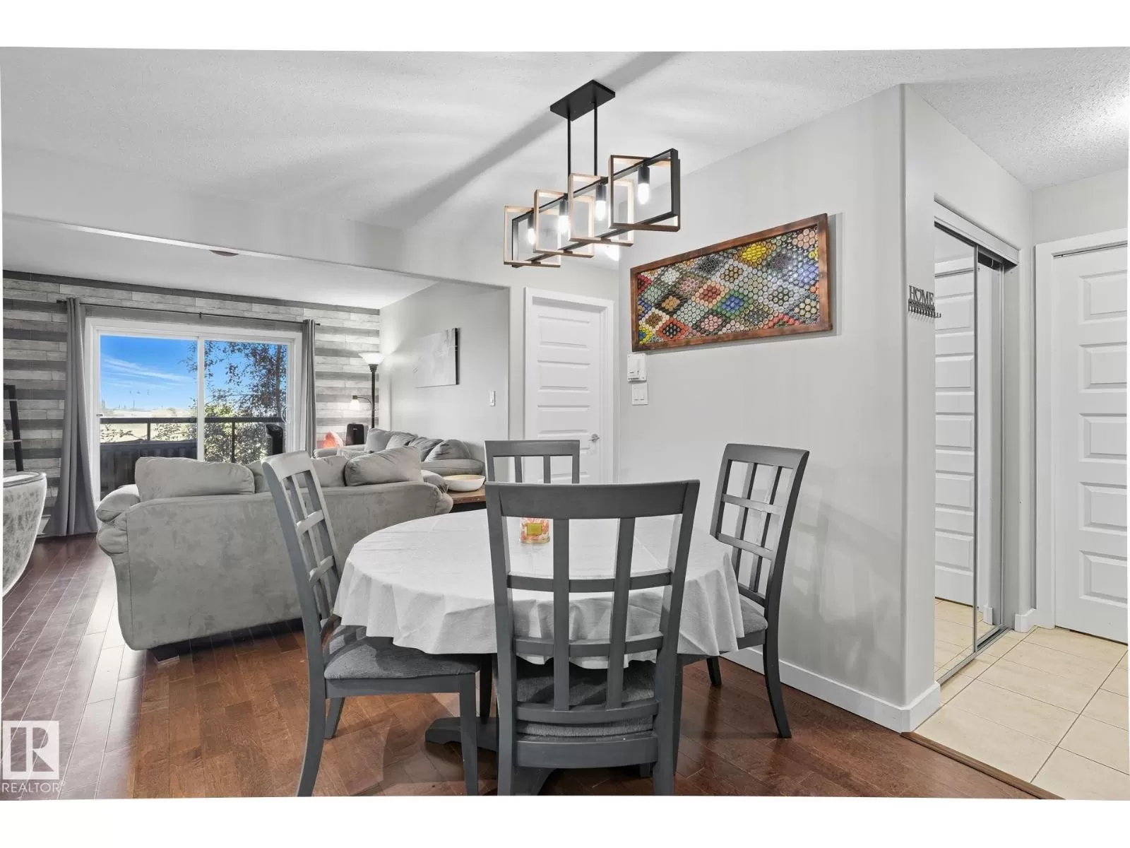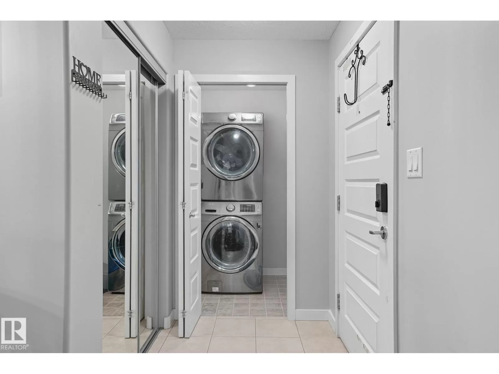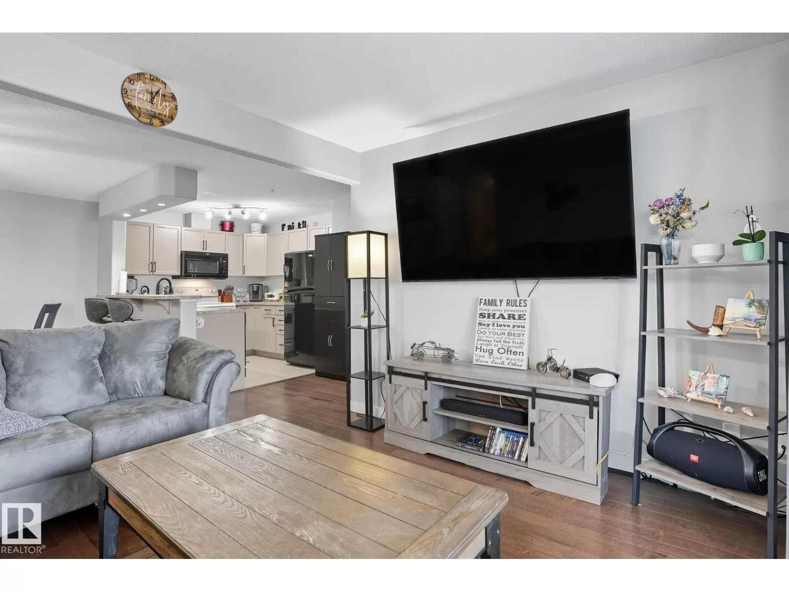 Modern 2-bed, 2-bath condo on the 2nd floor of Rutherford Gate! This open-concept unit features hardwood & tile flooring, a sleek kitchen with ample cabinetry & counter space, and a spacious dining area. Step out to your private balcony with gas hookupâperfect for BBQs. The primary suite includes a walk-through closet & 3pc ensuite, while the second bedroom & 4pc bath are on the opposite side for added privacy. Enjoy the convenience of in-suite laundry with storage, plus 2 titled underground parking stalls near the elevator/stairs. Building amenities include a main-floor fitness room, 2nd-floor social room with kitchenette, and a guest suite. Fantastic locationâjust minutes to parks, schools, shopping, walking paths, basketball courts, and all daily essentials. Quick access to Anthony Henday & the airport! (id:27476)