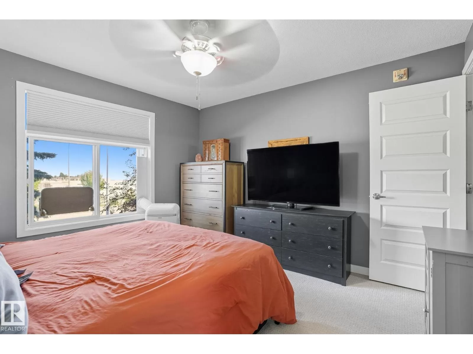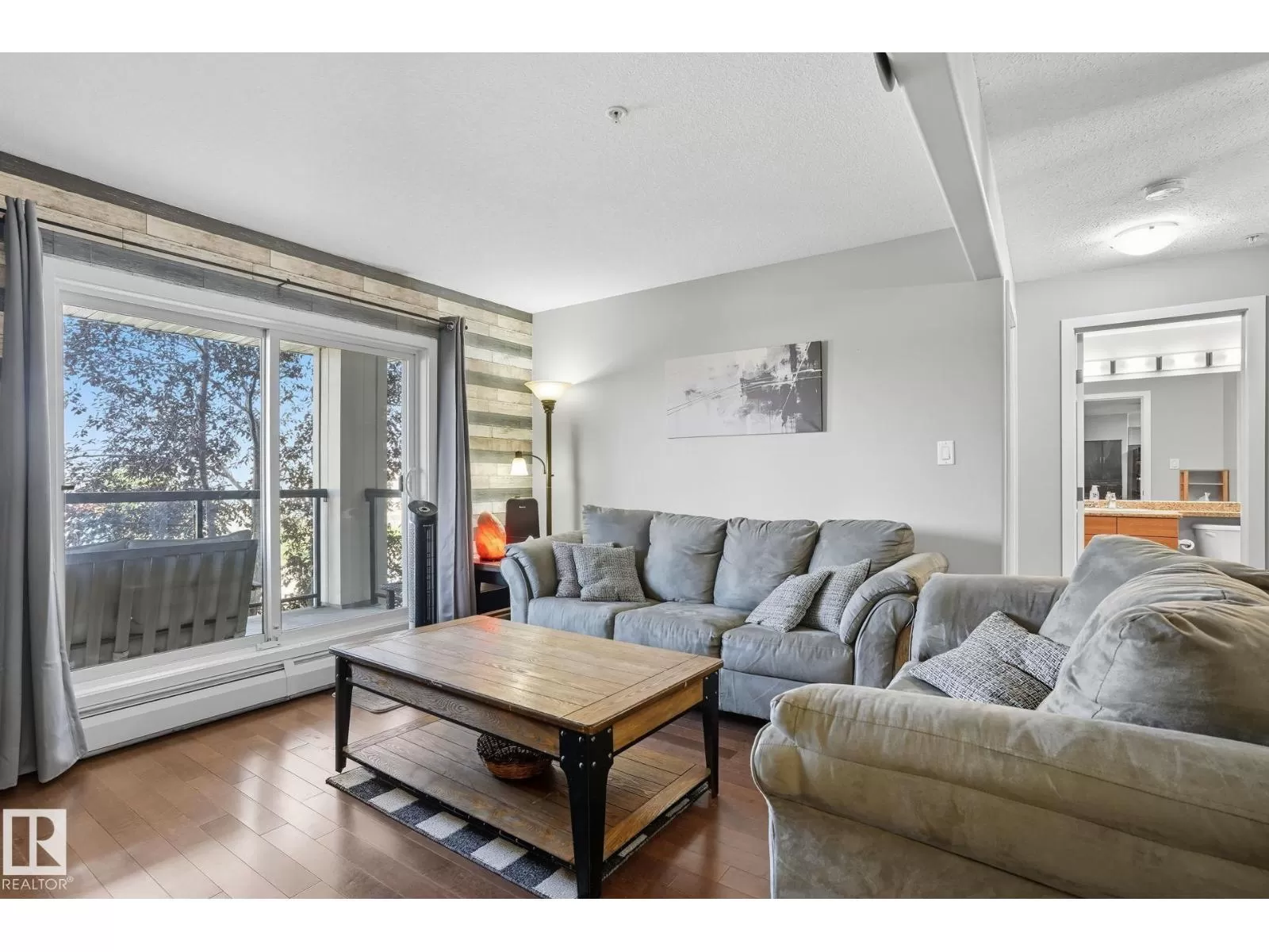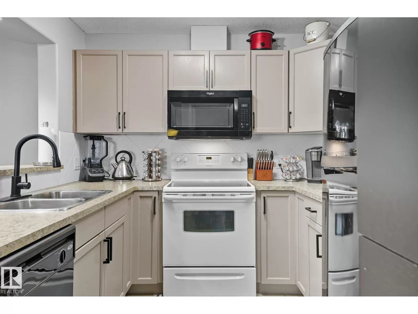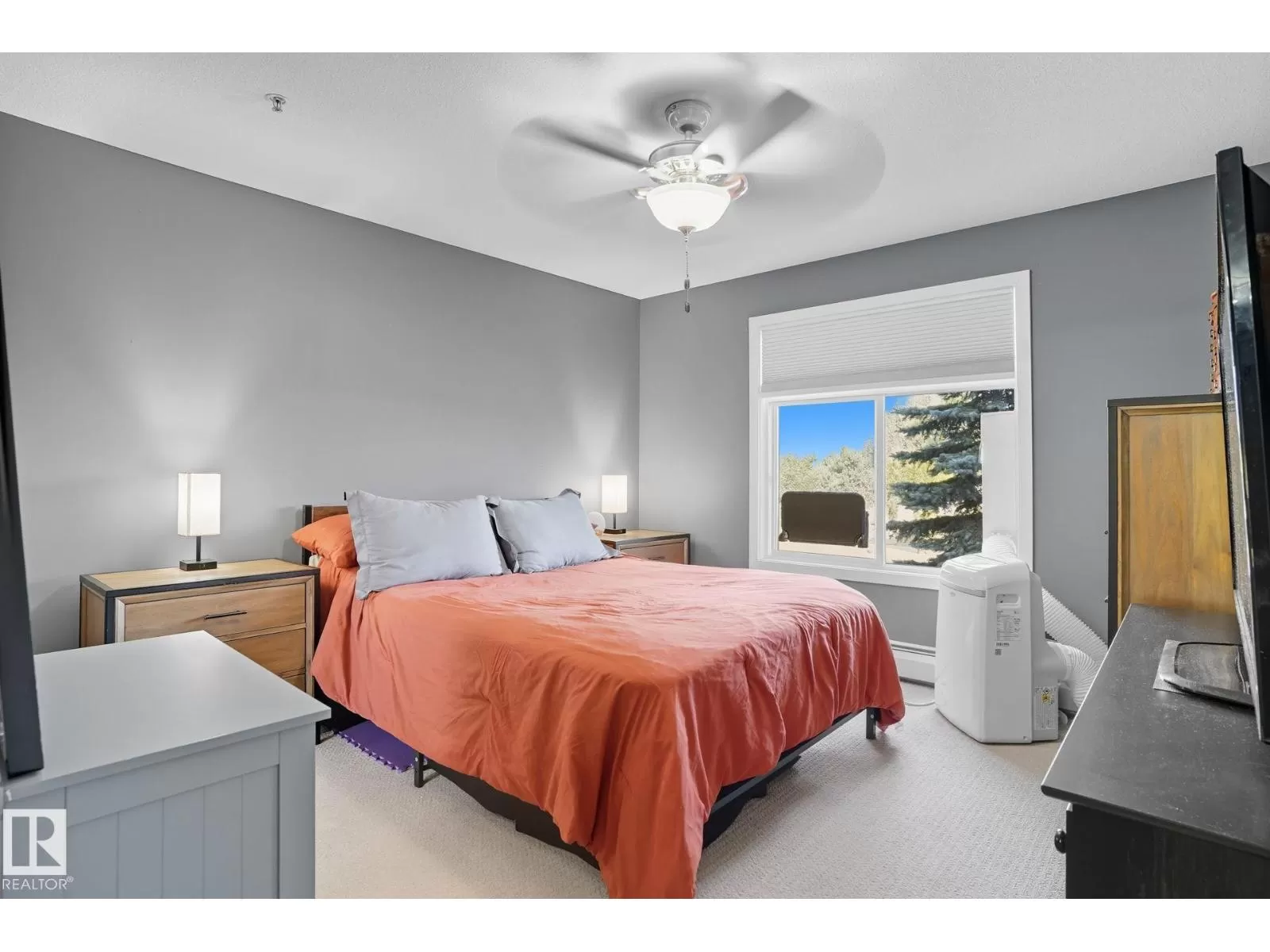 Modern 2-bed, 2-bath condo on the 2nd floor of Rutherford Gate! This open-concept unit features hardwood & tile flooring, a sleek kitchen with ample cabinetry & counter space, and a spacious dining area. Step out to your private balcony with gas hookupâperfect for BBQs. The primary suite includes a walk-through closet & 3pc ensuite, while the second bedroom & 4pc bath are on the opposite side for added privacy. Enjoy the convenience of in-suite laundry with storage, plus 2 titled underground parking stalls near the elevator/stairs. Building amenities include a main-floor fitness room, 2nd-floor social room with kitchenette, and a guest suite. Fantastic locationâjust minutes to parks, schools, shopping, walking paths, basketball courts, and all daily essentials. Quick access to Anthony Henday & the airport! (id:27476)