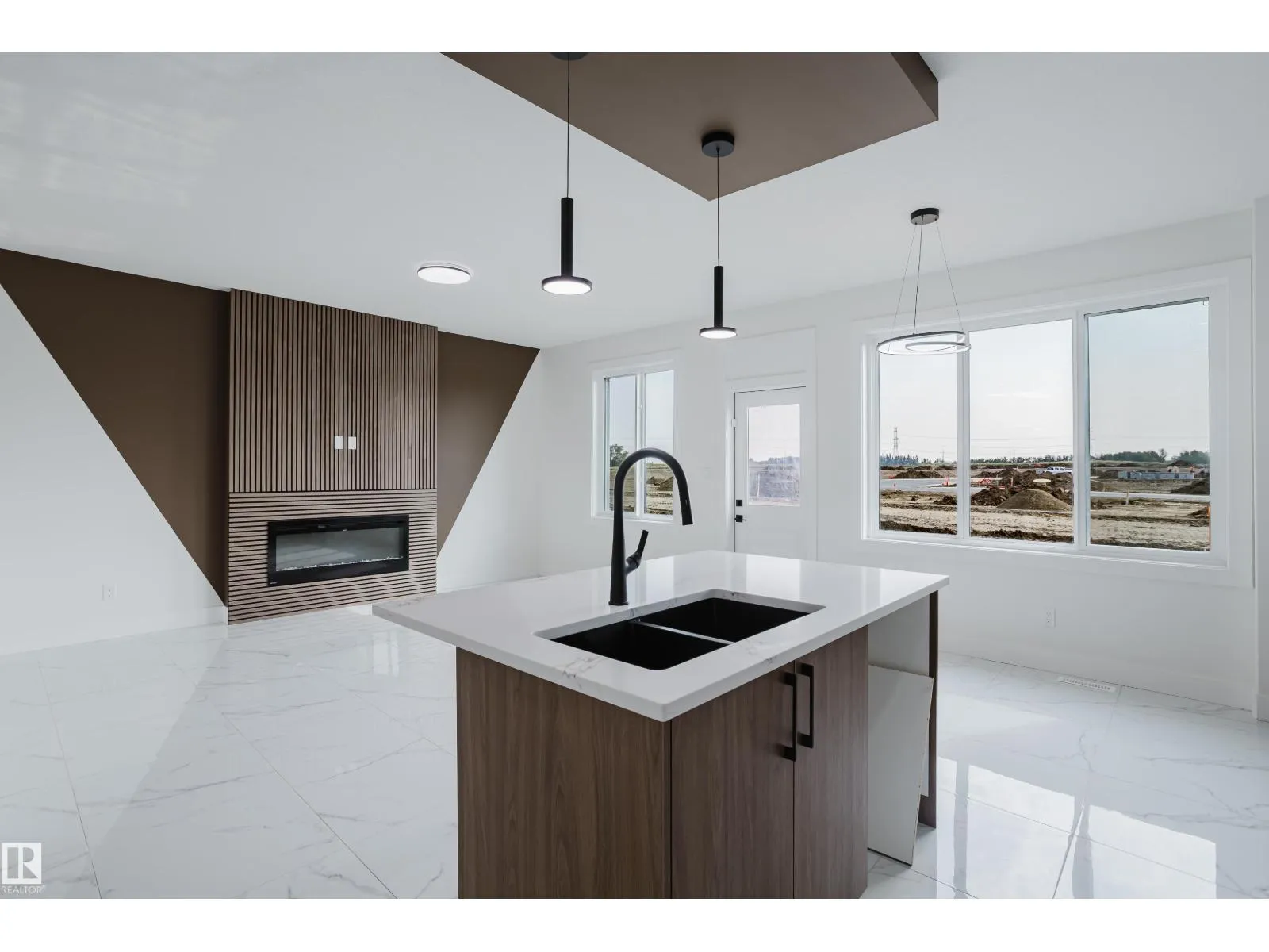 Located in the desirable family-friendly Aster community, this Ferris 3 model offers a spacious and functional layout with thoughtful upgrades throughout. You are welcomed by a grand open-to-above foyer and sleek tile flooring that enhances the modern aesthetic of the main level. The main floor includes a bright den with a large window, ideal for a home office, study, or flex space, along with a full bathroom featuring a standing shower. The chef-inspired kitchen extends into the dining area and includes a spice kitchen with added storage and prep space. The great room boasts a built-in fireplace, creating a warm setting for everyday living and entertaining. Upstairs, youâll find three spacious bedrooms, including a primary suite with a five-piece ensuite offering dual sinks, a soaker tub, tiled shower, and walk-in closet. A custom accent wall adds character, while a bonus room and upper-level laundry enhance functionality. A side entrance to the basement provides potential for future development. (id:27476)