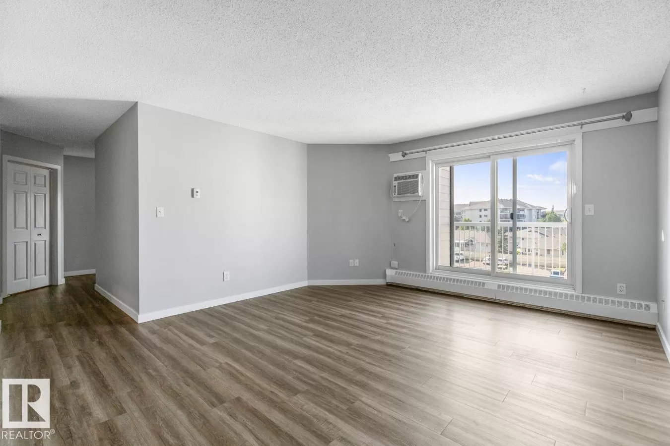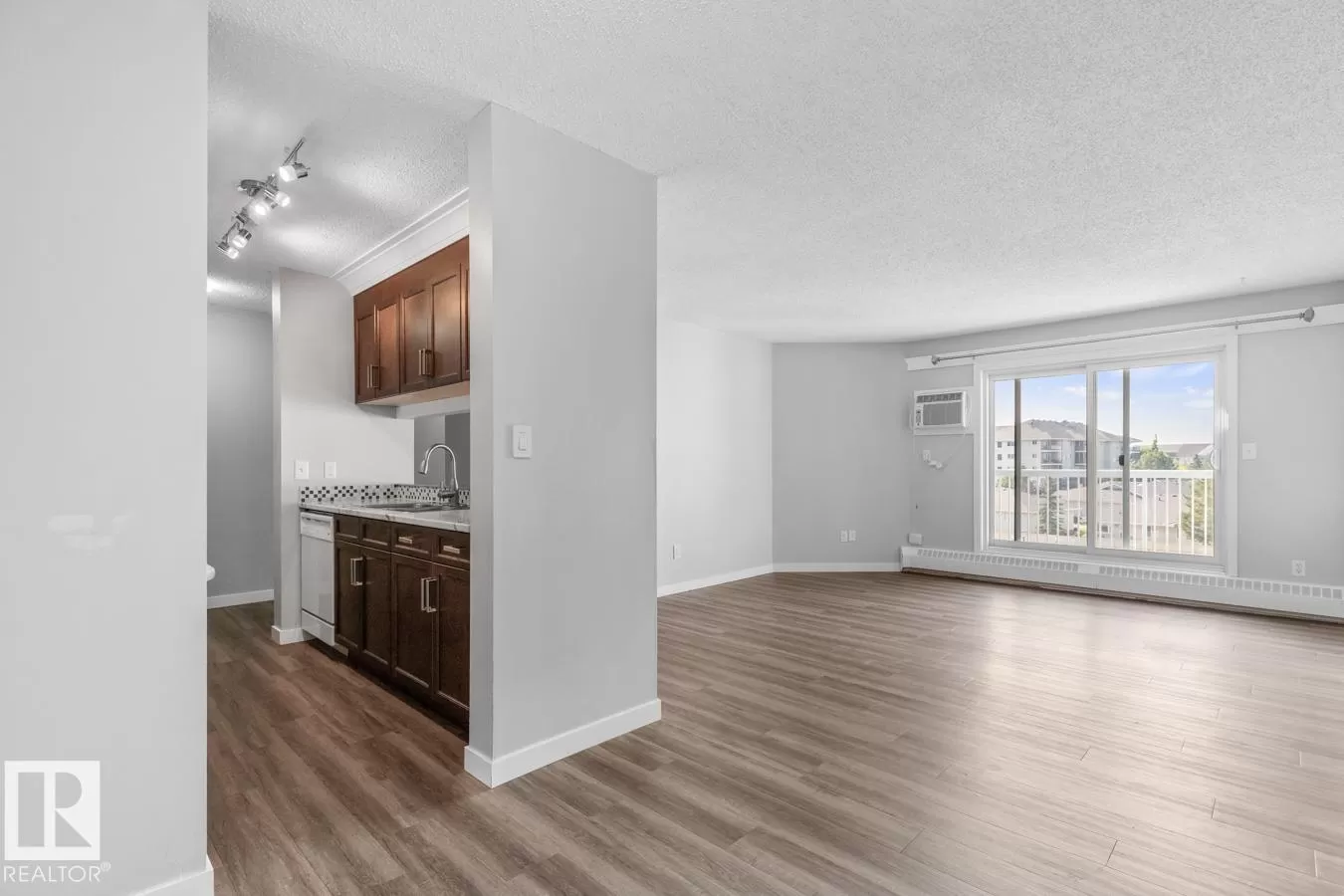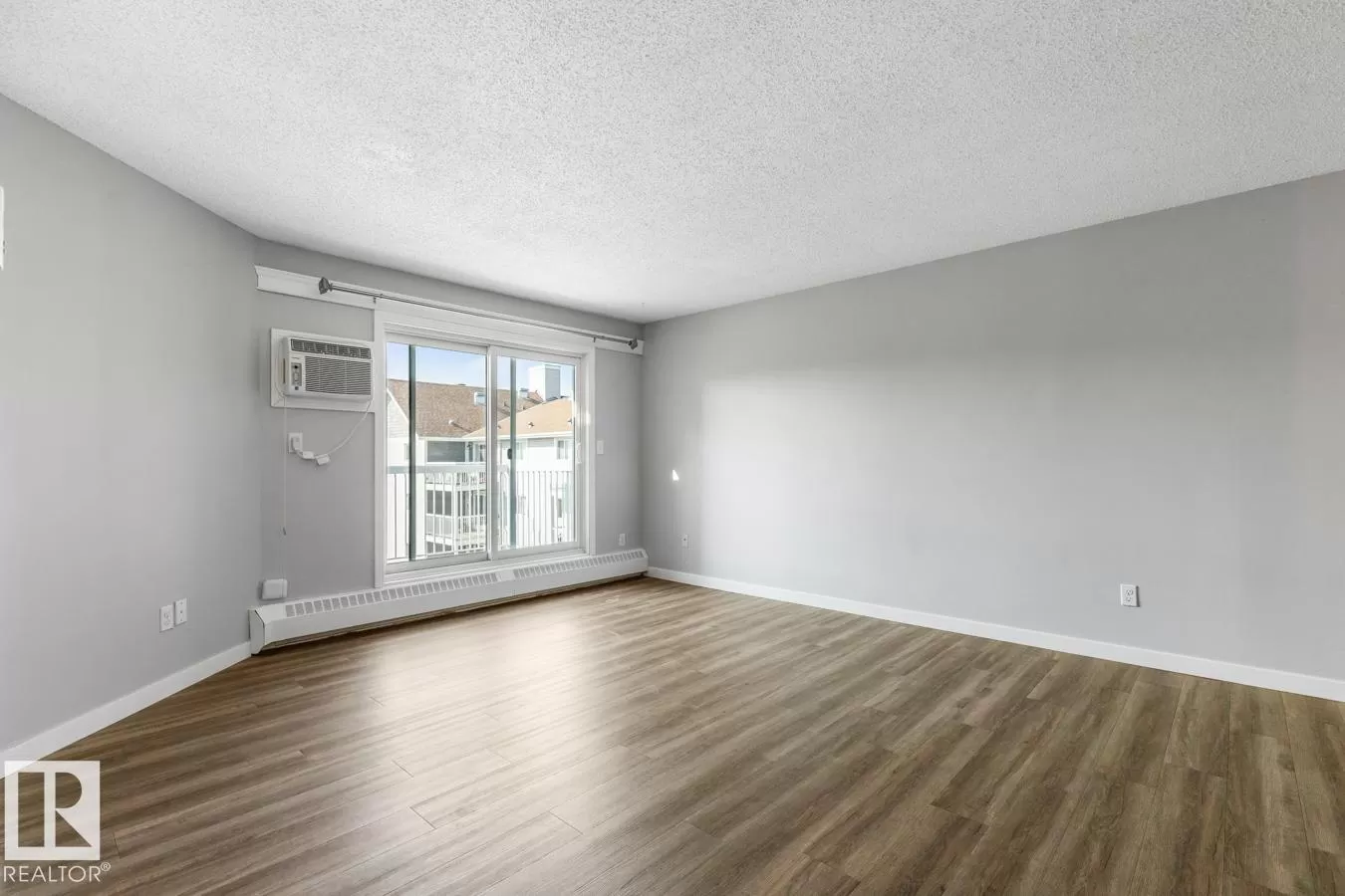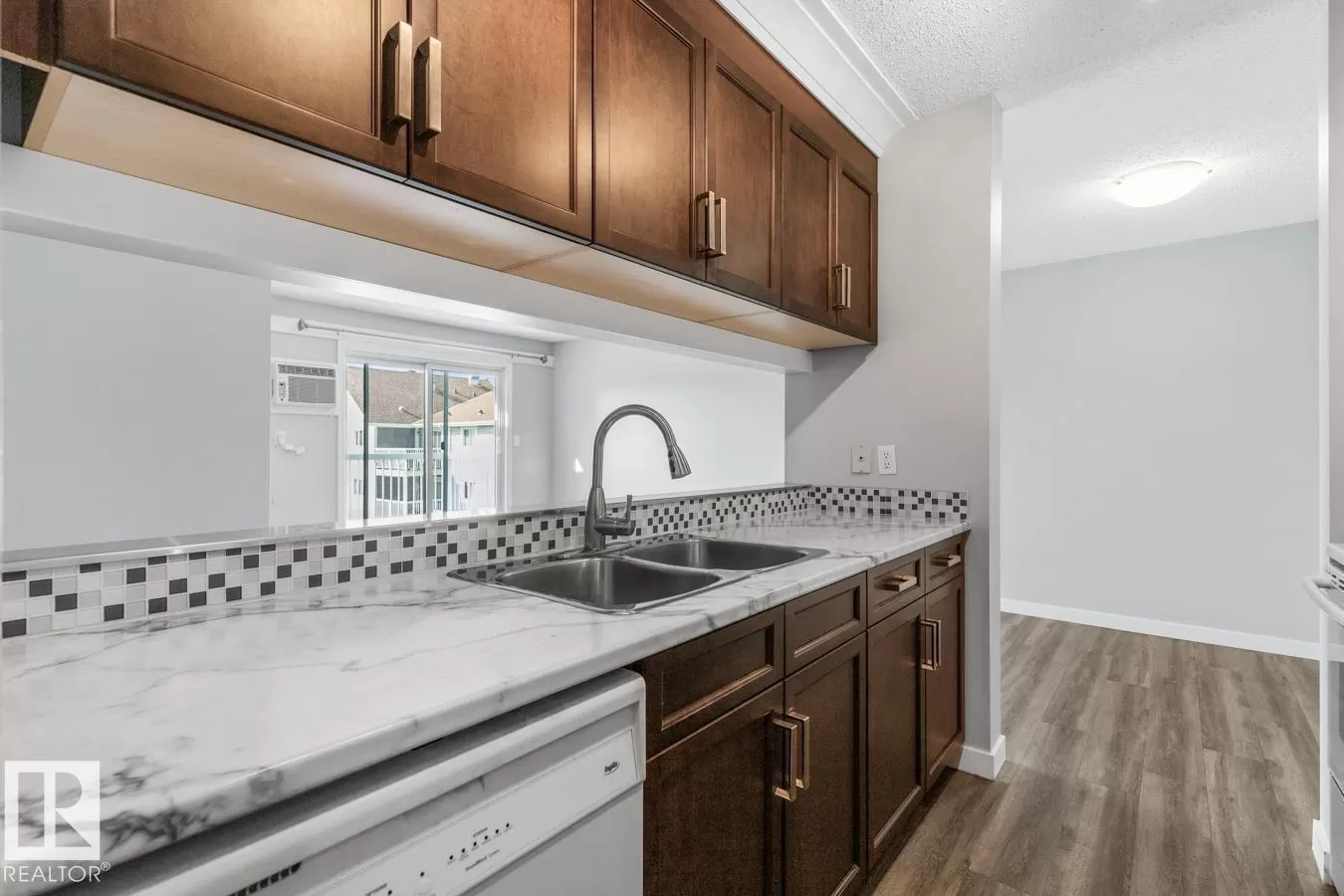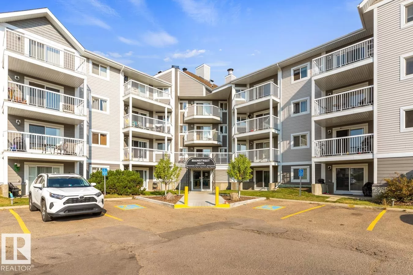 This top-floor 2 bedroom, 1 bath condo in Mainstreet South is sure to impress! Ideally located just minutes from all amenities, this home features vinyl plank flooring throughout a bright and spacious layout. The kitchen offers ample cabinetry, white appliances, and overlooks the dining area and living room, complete with AC and access to the sunny southwest-facing patio. Two king-sized bedrooms, a 4pc bath, in-suite laundry, and extra storage complete the space. Enjoy low condo fees that include heat & water in this well-managed, pet-friendly complex. Move-in ready, welcome to your new Home Sweet Home! (id:27476)