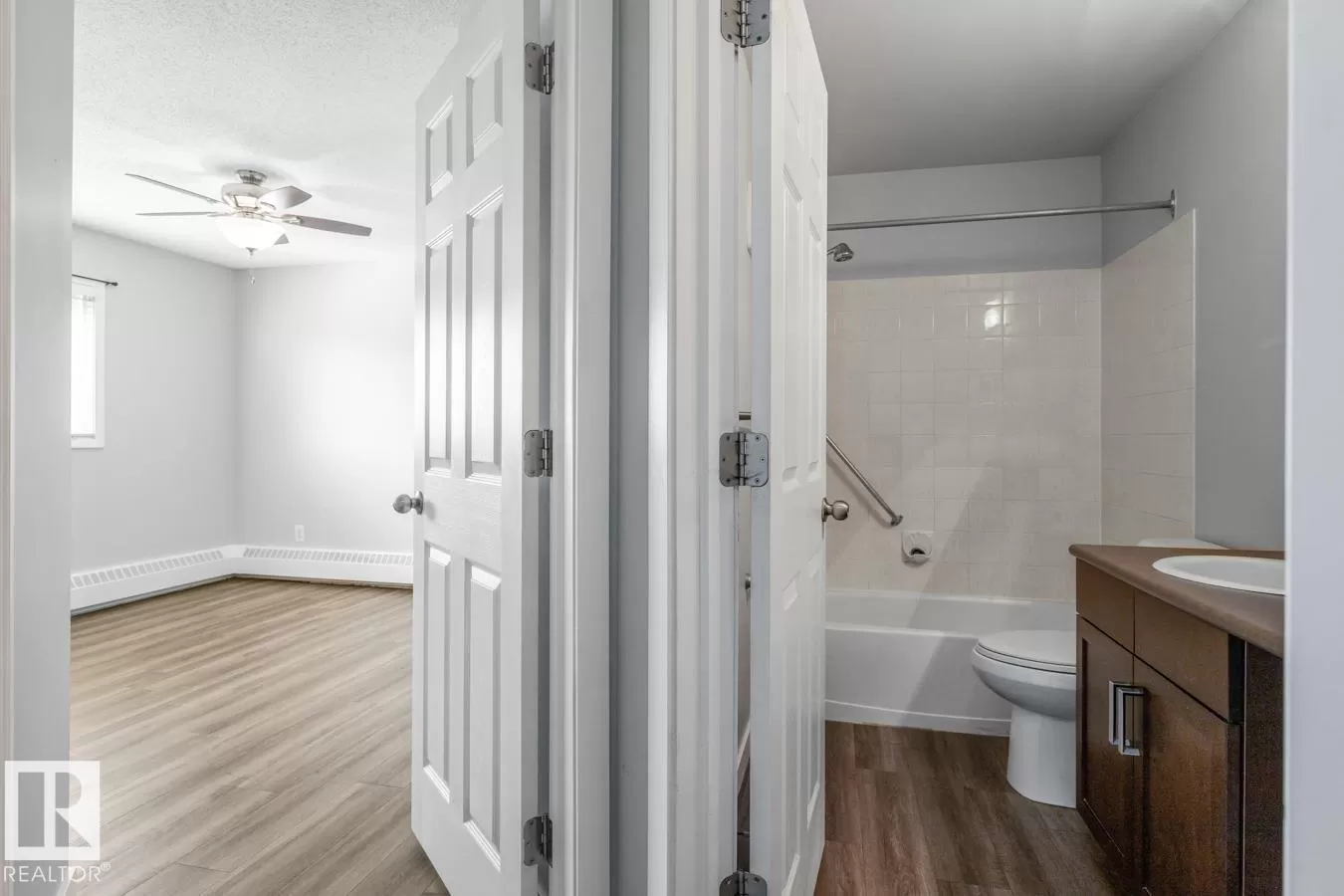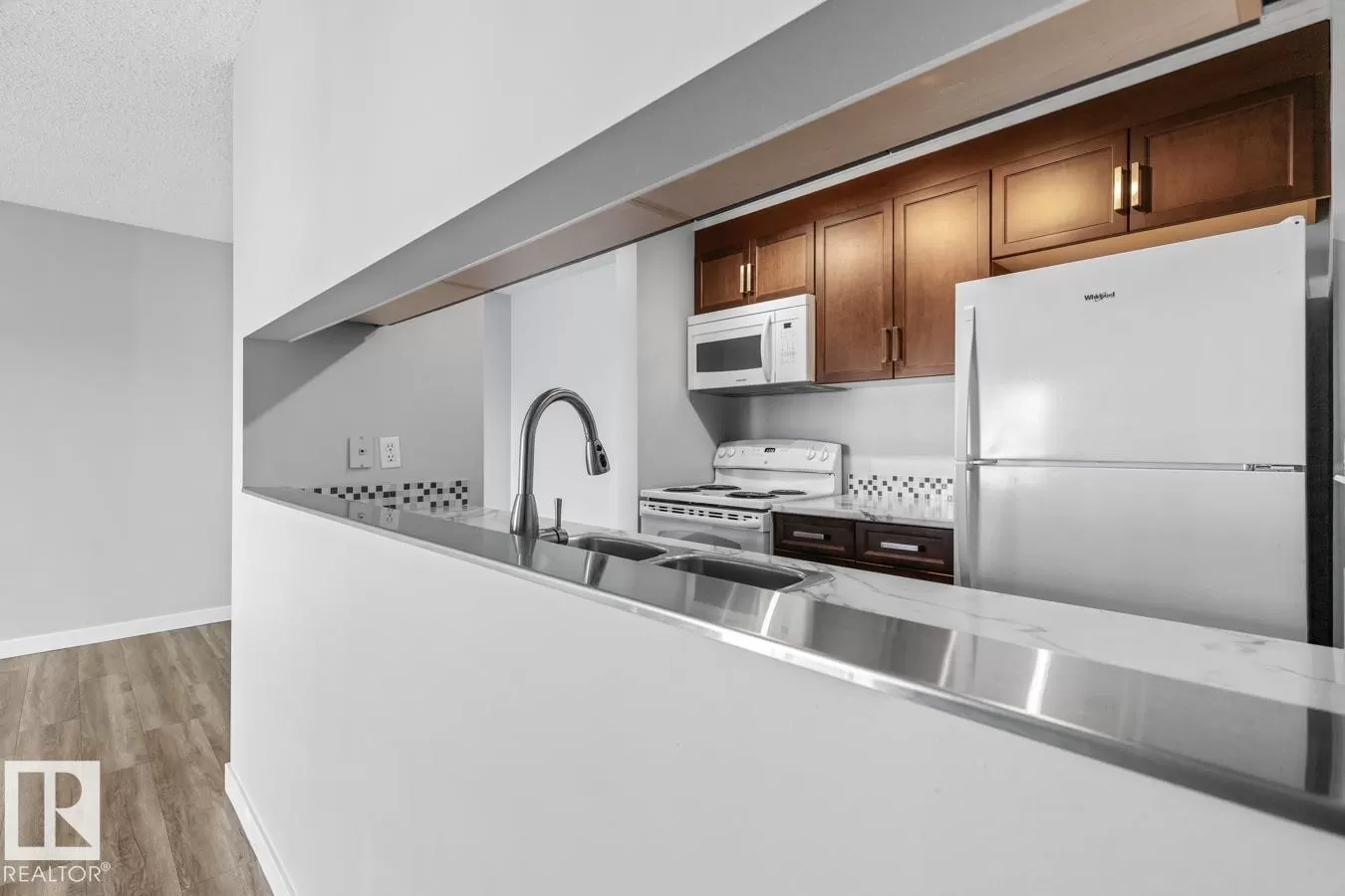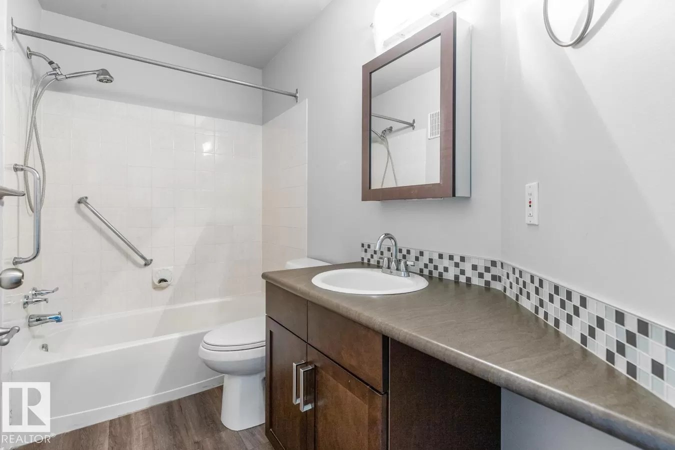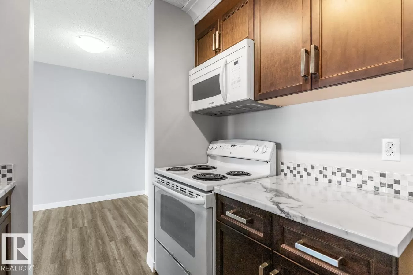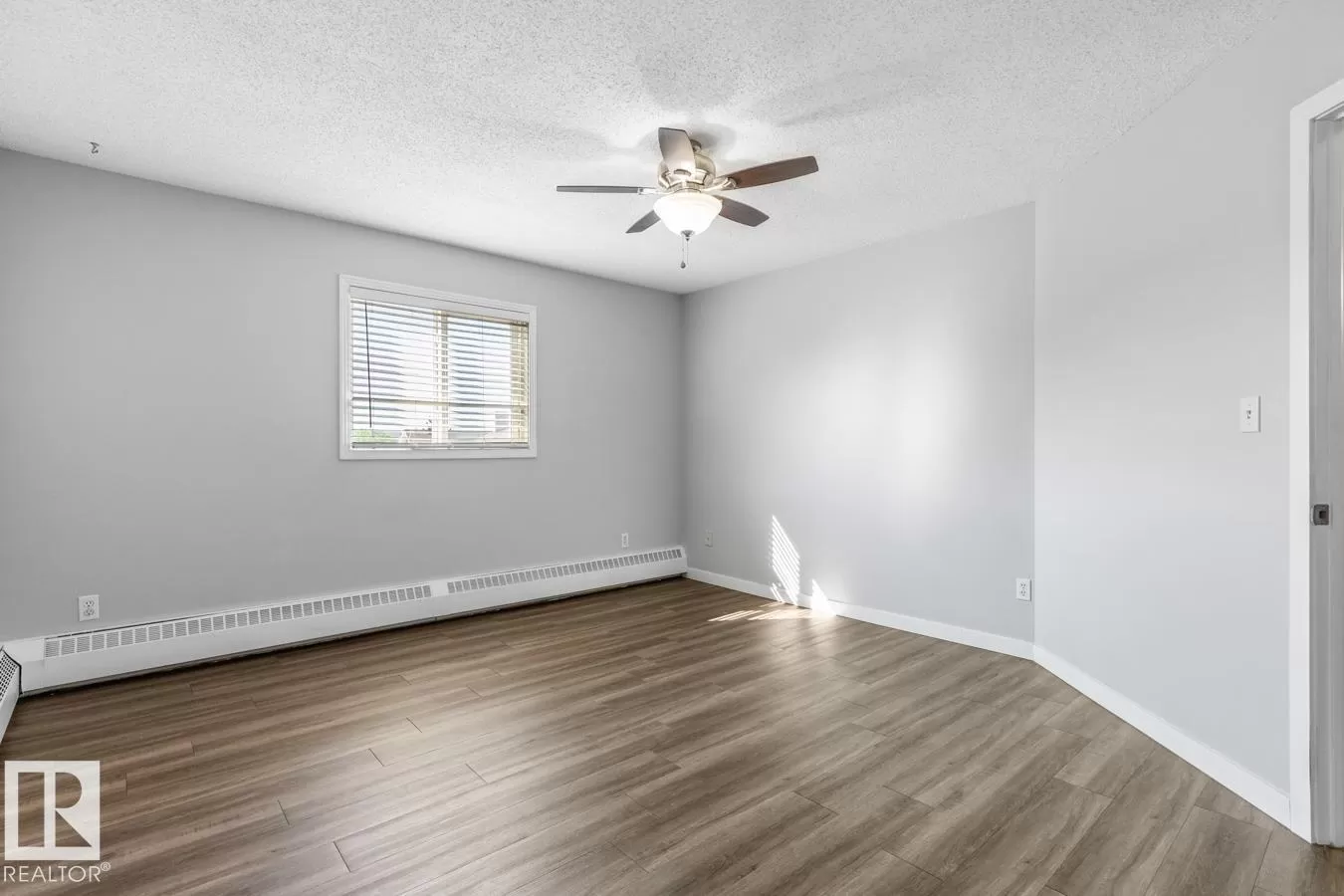 This top-floor 2 bedroom, 1 bath condo in Mainstreet South is sure to impress! Ideally located just minutes from all amenities, this home features vinyl plank flooring throughout a bright and spacious layout. The kitchen offers ample cabinetry, white appliances, and overlooks the dining area and living room, complete with AC and access to the sunny southwest-facing patio. Two king-sized bedrooms, a 4pc bath, in-suite laundry, and extra storage complete the space. Enjoy low condo fees that include heat & water in this well-managed, pet-friendly complex. Move-in ready, welcome to your new Home Sweet Home! (id:27476)
