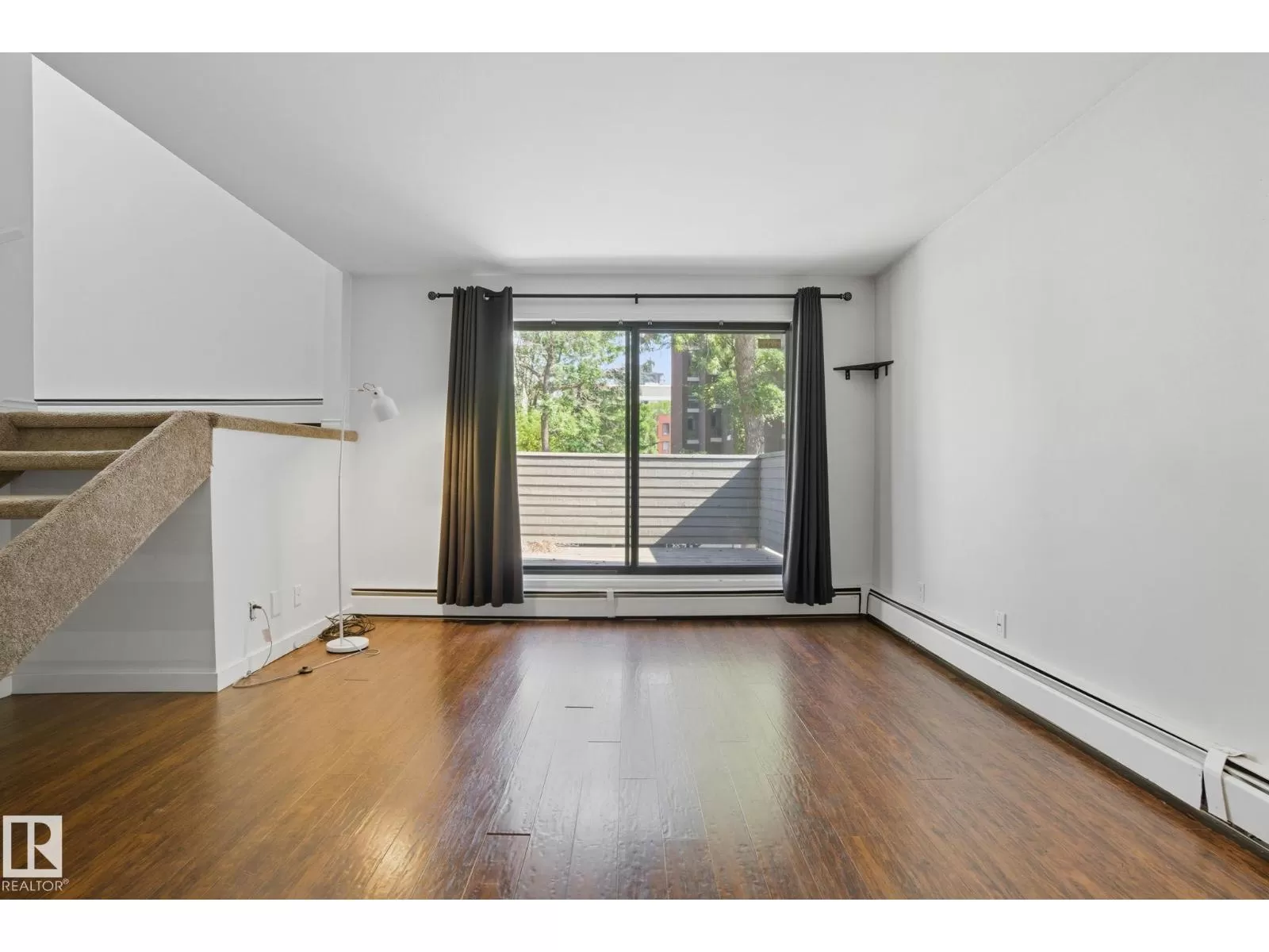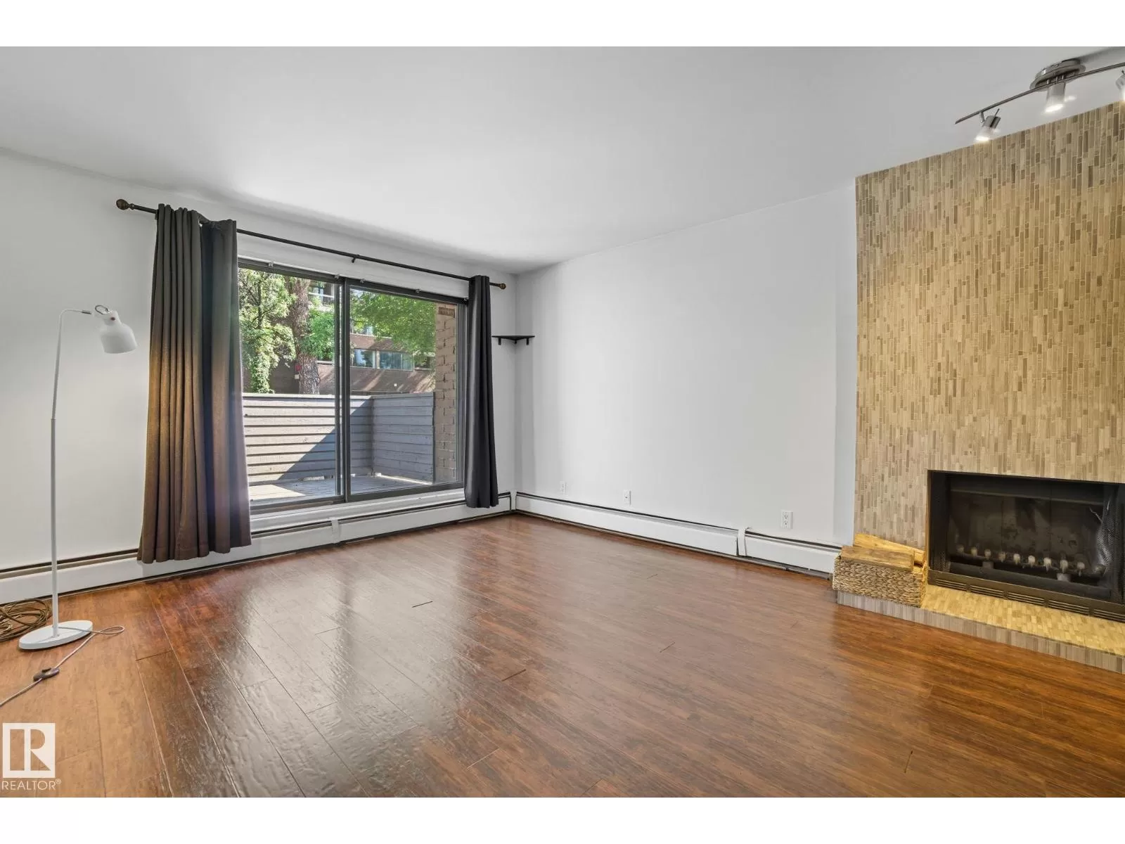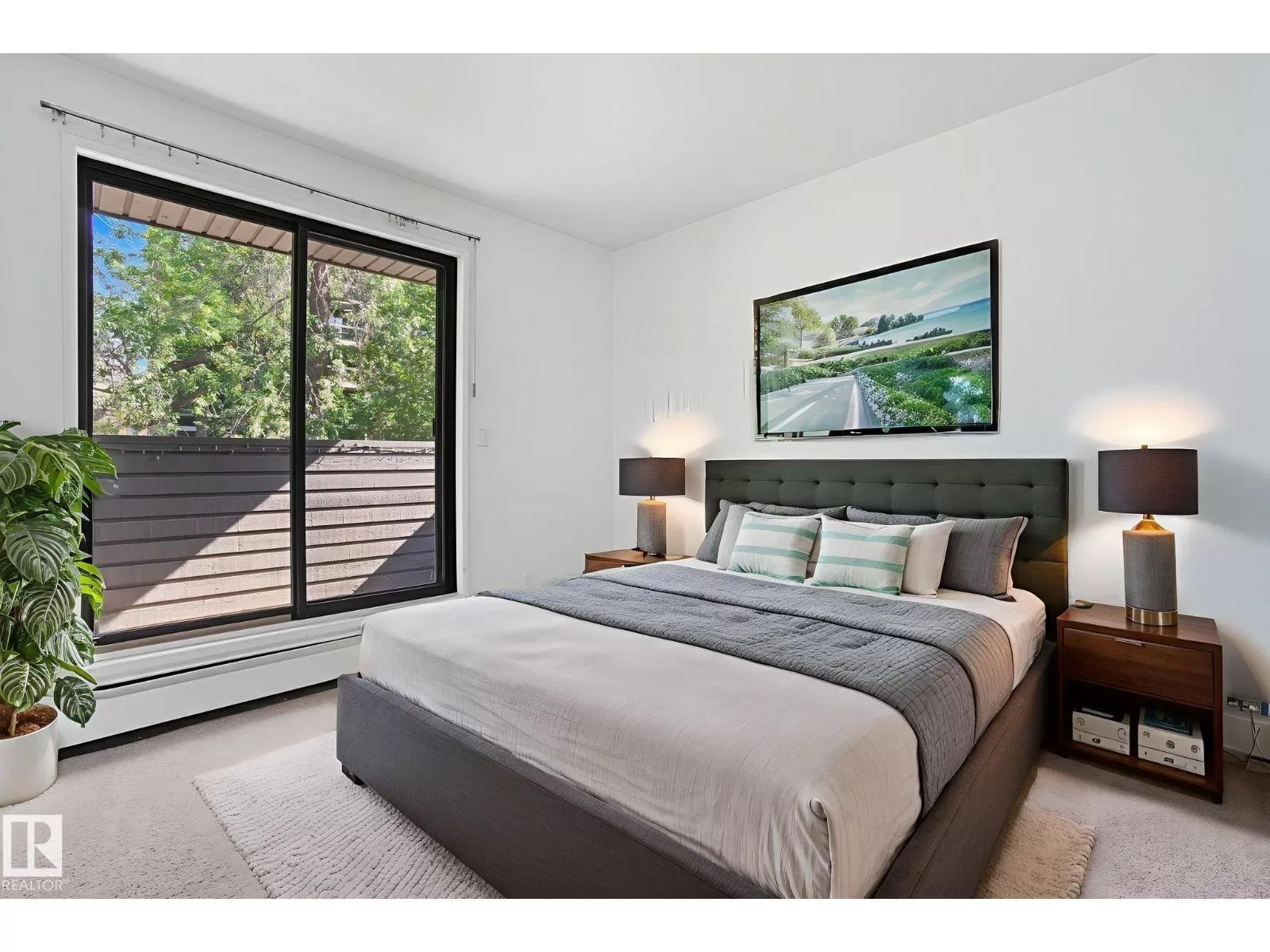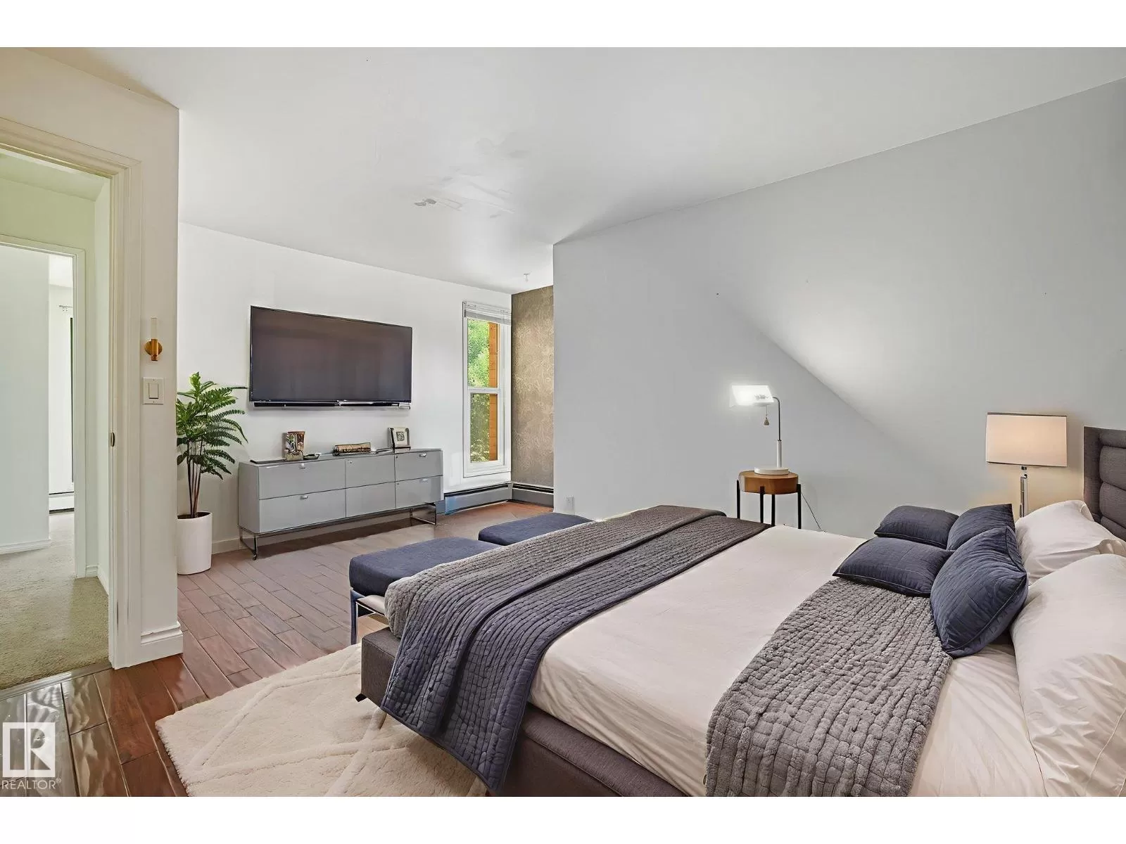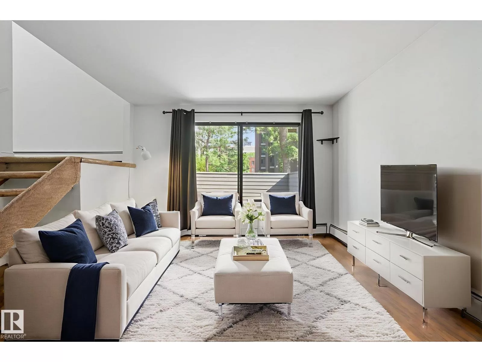 Downtown Lifestyle Awaits! This modern 2 bed, 2.5 bath condo offers nearly 1,400 sq ft of stylish living just steps from Jasper Ave, the River Valley, restaurants, cafés, and nightlife. Bright open-concept layout with stainless steel appliances, dining area, spacious living room, and cozy wood-burning fireplace. Enjoy both a patio and balcony with city views! Upstairs features a huge primary suite with walk-in closet & spa-style ensuite, plus a second bedroom, full bath, and flex nookâperfect for a study or workspace. In-suite laundry, storage, and titled underground parking included. With shopping, gyms, transit, and amenities at your doorstep, this is downtown living at its best! (Some photos virtually staged) (id:27476)