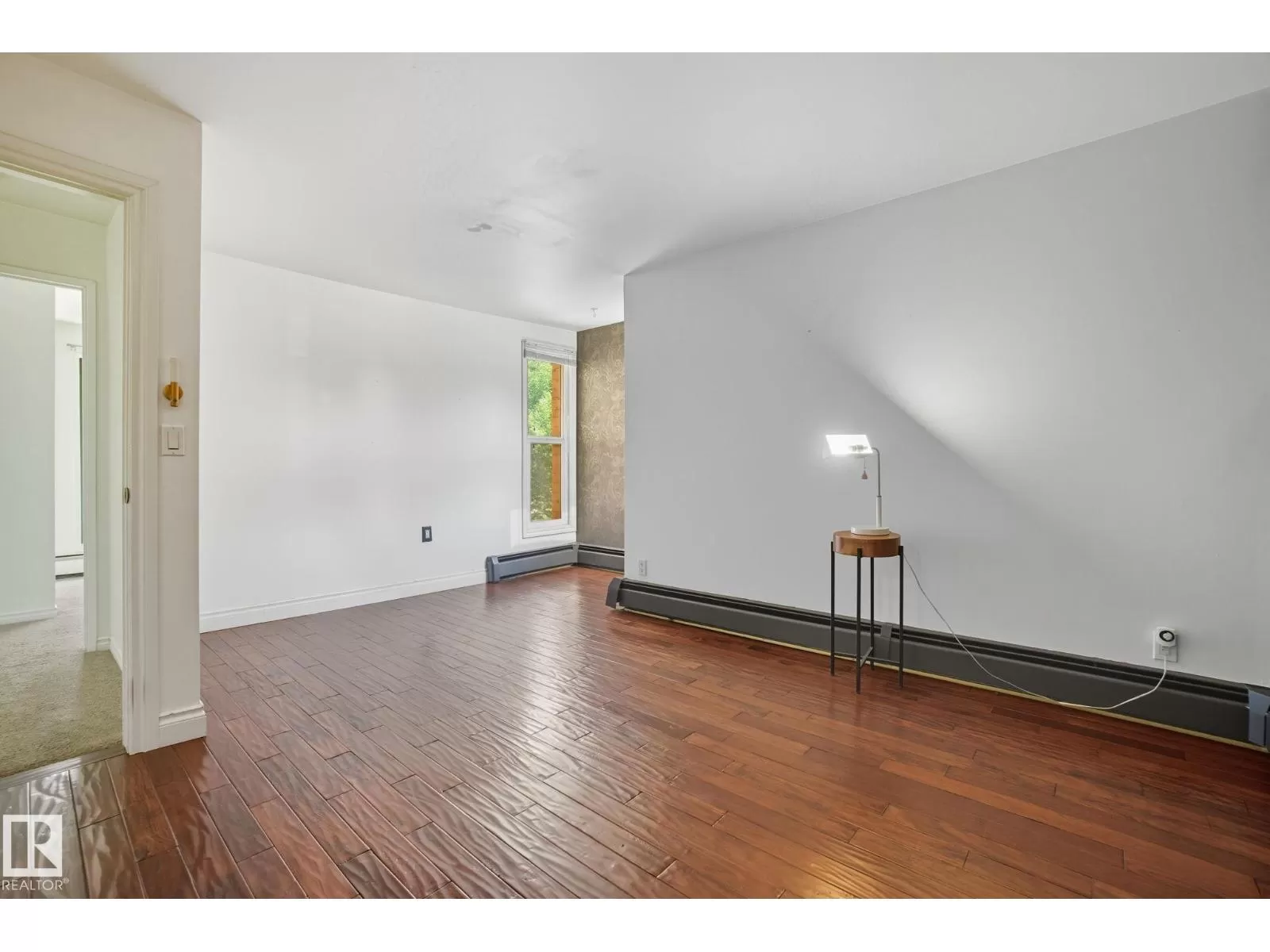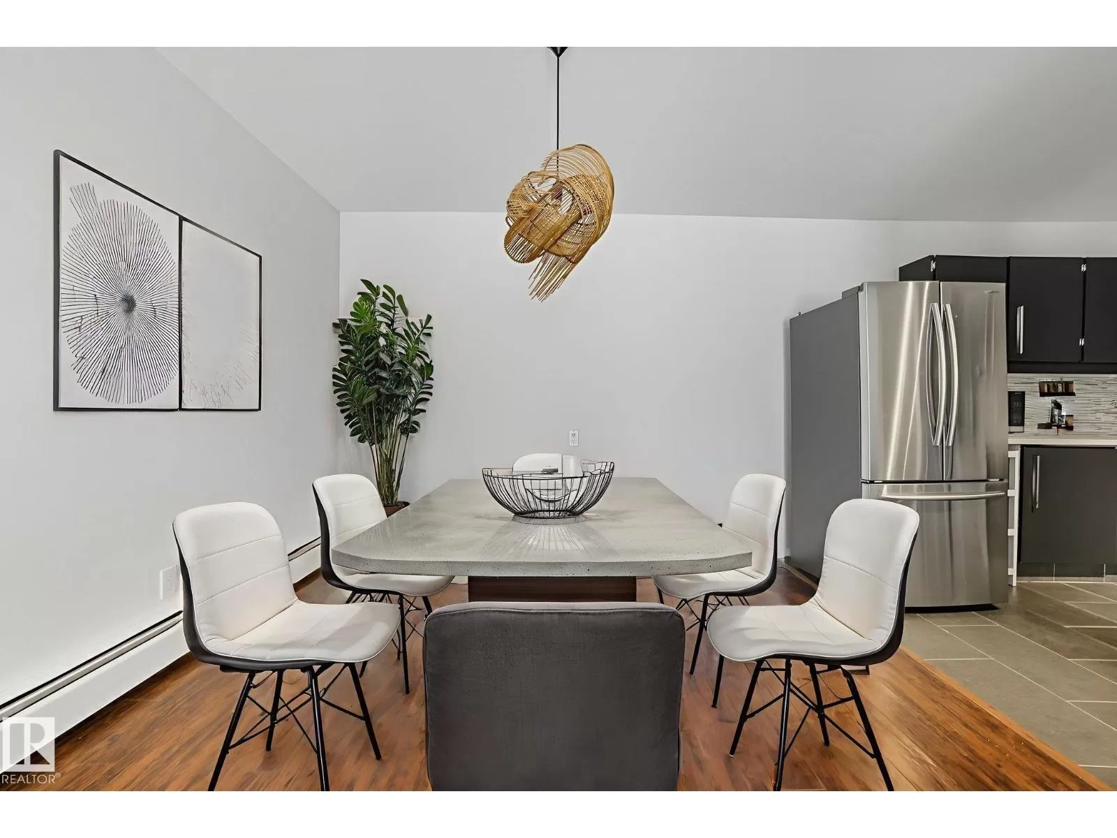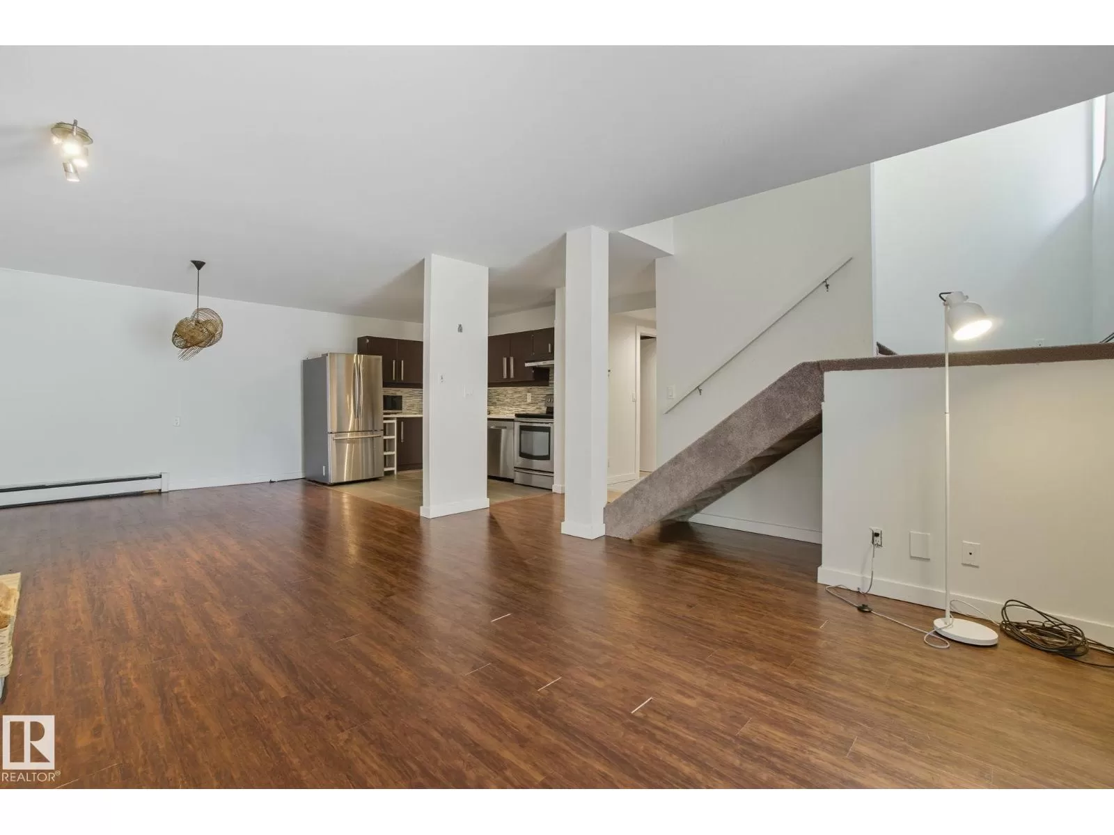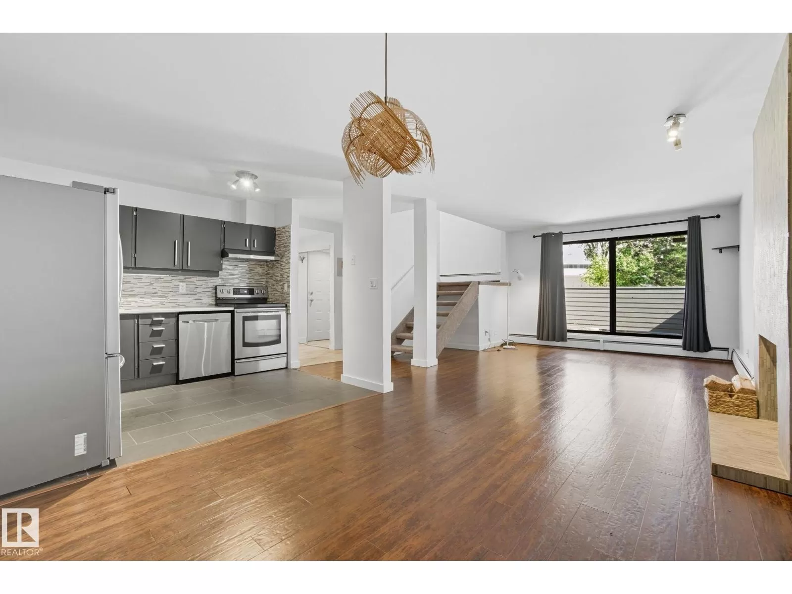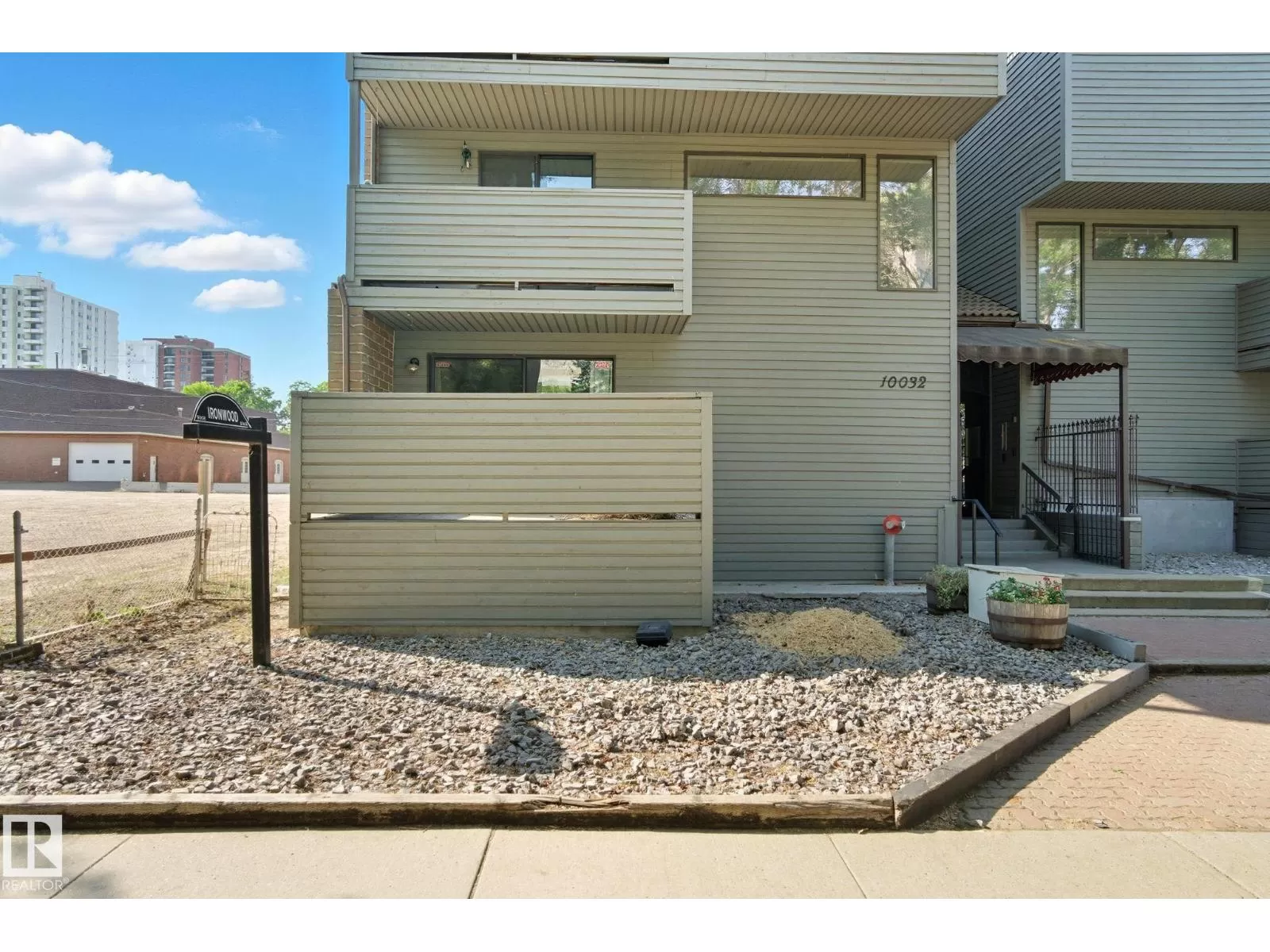 Downtown Lifestyle Awaits! This modern 2 bed, 2.5 bath condo offers nearly 1,400 sq ft of stylish living just steps from Jasper Ave, the River Valley, restaurants, cafés, and nightlife. Bright open-concept layout with stainless steel appliances, dining area, spacious living room, and cozy wood-burning fireplace. Enjoy both a patio and balcony with city views! Upstairs features a huge primary suite with walk-in closet & spa-style ensuite, plus a second bedroom, full bath, and flex nookâperfect for a study or workspace. In-suite laundry, storage, and titled underground parking included. With shopping, gyms, transit, and amenities at your doorstep, this is downtown living at its best! (Some photos virtually staged) (id:27476)