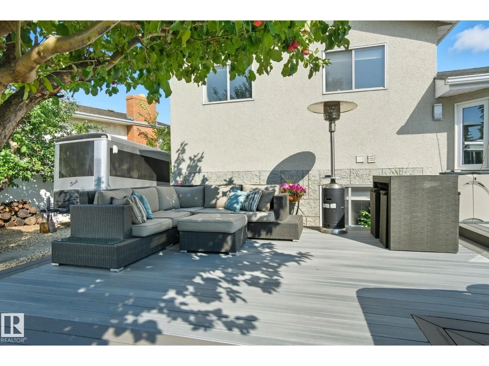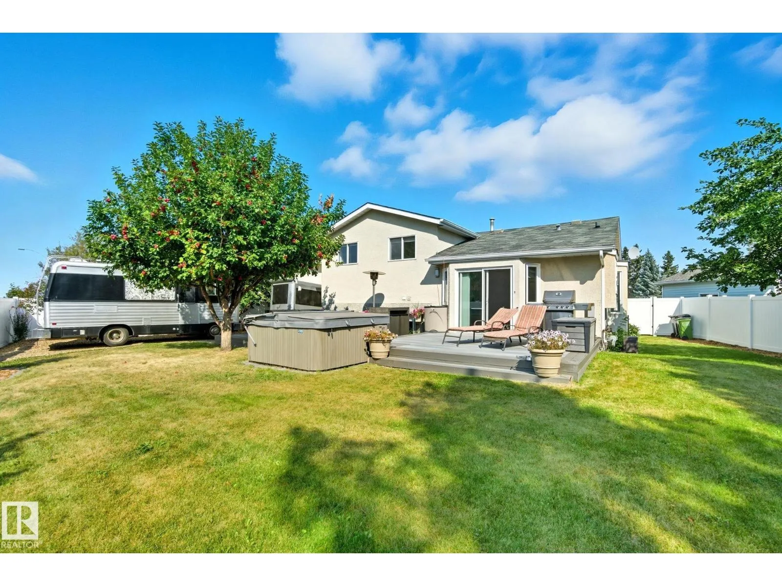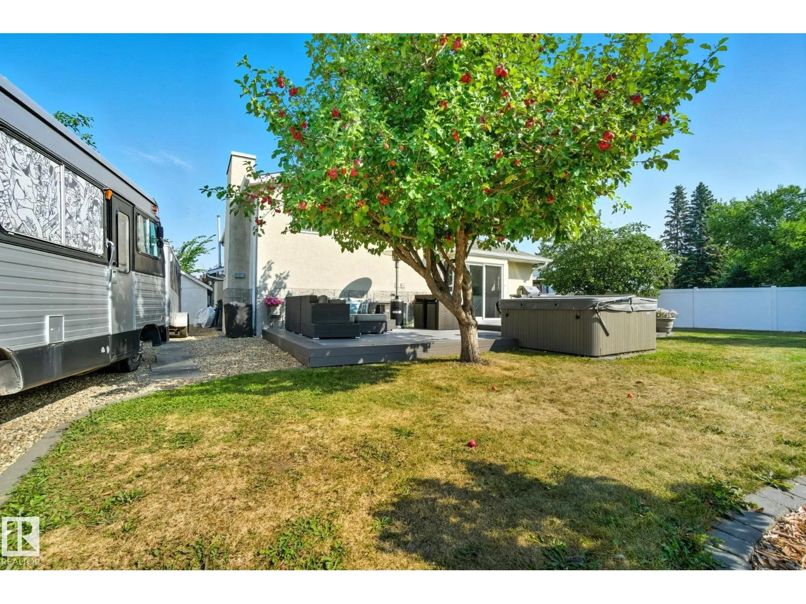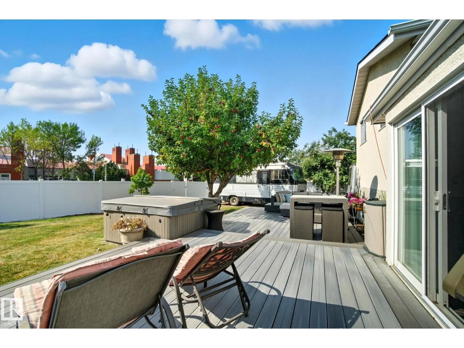 Situated on one of the largest lots, this home combines comfort, function, numerous upgrades, and a fantastic layout located steps from schools, parks and greenspace. Inside, the home has been freshly painted and features engineered hardwood flooring and new windows on the main level. The bright kitchen offers modern white cabinetry, granite overlay countertops, tile flooring, and opens onto a stunning two-tier, no-maintenance deck. Relax in the hot tub, gather around the fire pit, or enjoy the beautifully landscaped yard complete with RV storage, a shed, and maintenance-free fencing. Upstairs youâll find two spacious bedrooms, including a primary suite with an ensuite with a luxurious steam shower. The lower level is bright with two large windows, a cozy gas fireplace, bedroom, full bath, laundry. And if that isn't enough space, the basement features a den/potential bedroom and rec room and there is an attached heated double garage. Located across from T.D. Baker, this is a true gem in Daly Grove. (id:27476)