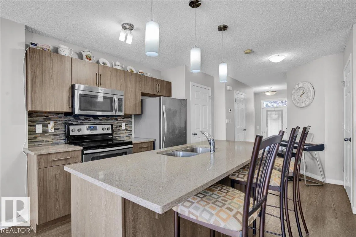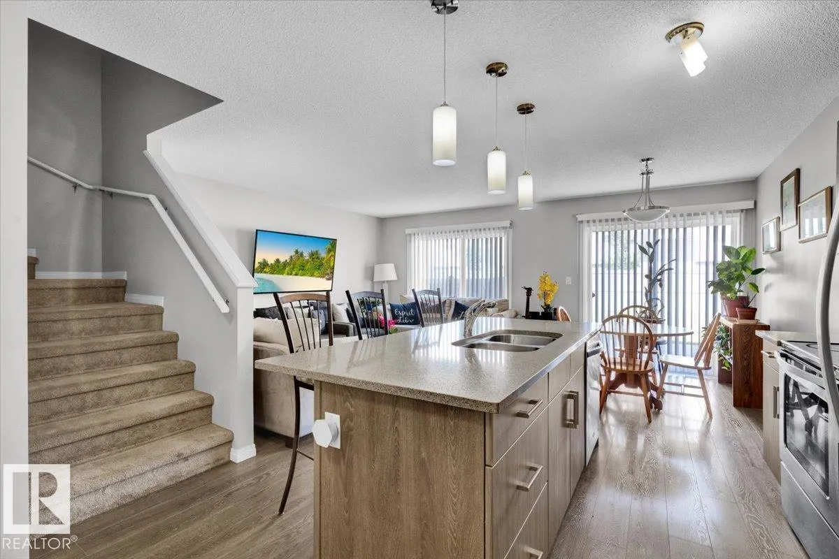 Welcome to this stylish half duplex in the desirable community of Edgemont. Offering 1400 sq ft above grade, this home features a bright open layout designed for both comfort and functionality. The kitchen impresses with quartz countertops, stainless steel appliances, and plenty of space for cooking and gathering. The living and dining areas flow seamlessly, creating a warm atmosphere for everyday living. Upstairs youâll find 3 spacious bedrooms, including a primary suite with ensuite bath, plus the convenience of upper floor laundry. With 2.5 baths in total, thereâs room for everyone. The unfinished basement awaits your personal touch. Enjoy the single attached garage, driveway parking for 2 cars, and a location that makes life easy! Quick access to Anthony Henday and Lessard Road, and just steps to walking trails and green spaces. Whether youâre starting out, growing, or downsizing, this property offers a wonderful opportunity to call Edgemont home. (id:27476)