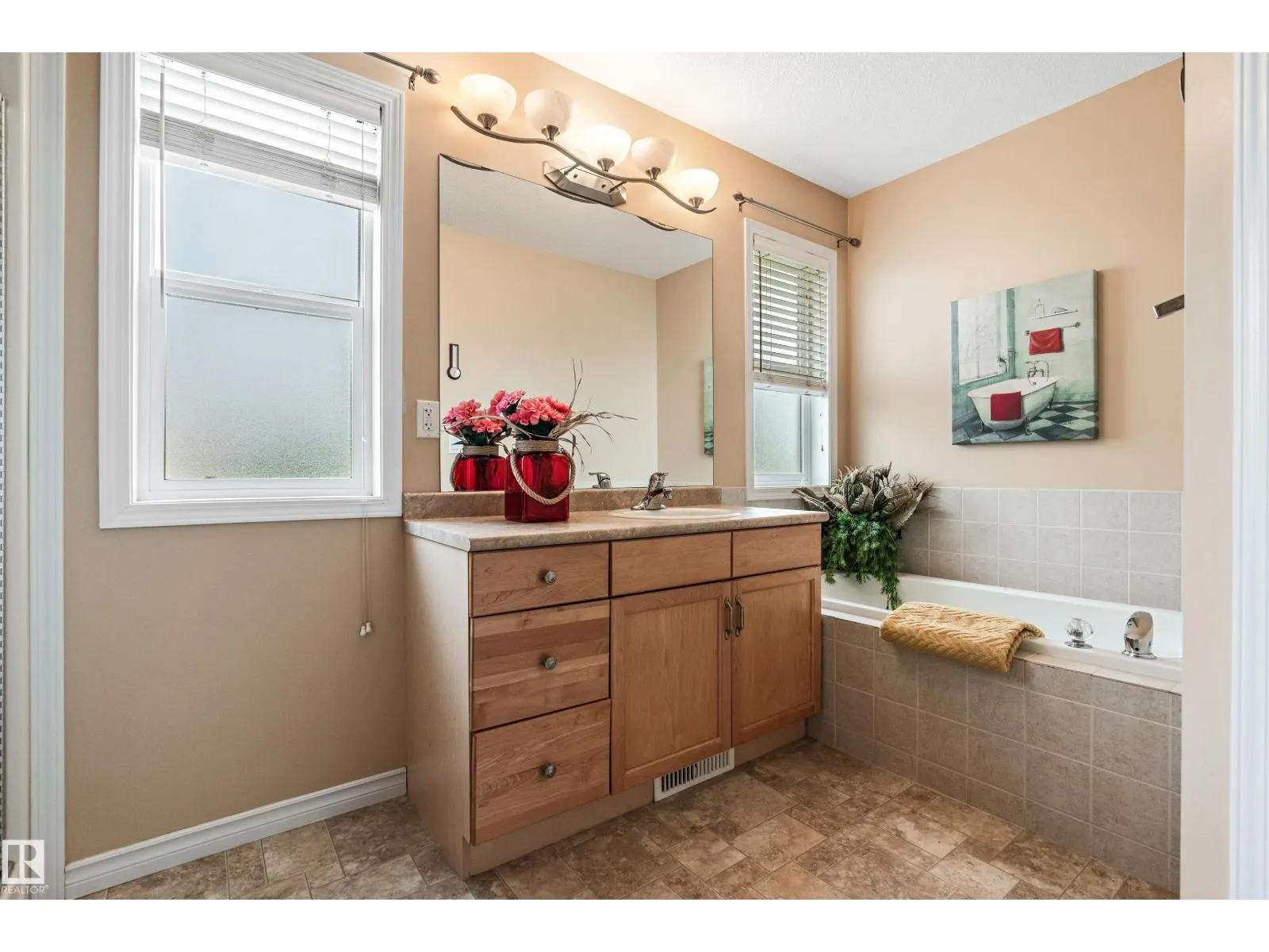 Spacious 5-Bedroom Home with Finished Basement in The Hamptons! Welcome to this beautiful two-storey home with a front attached garage, located in the family-friendly Hamptons community. Featuring maple hardwood floors, the main level offers a den, laundry area, powder room, and an open-concept kitchen, dining, and living space with a gas fireplace and access to a private deck. Upstairs includes a bright bonus room, 3 bedrooms, and 2 full baths, including a spacious primary suite with jacuzzi tub and separate shower. The fully finished basement adds 2 more bedrooms, a full bath, and a large family room. Enjoy a private yard and easy access to Anthony Henday, Whitemud Freeway, schools, parks, trails, and shopping. Perfect for a growing family! (id:27476)