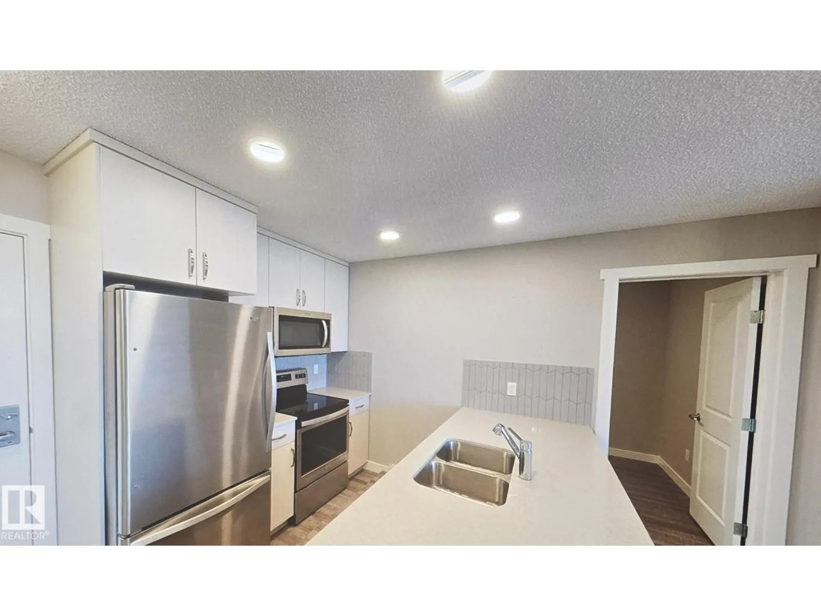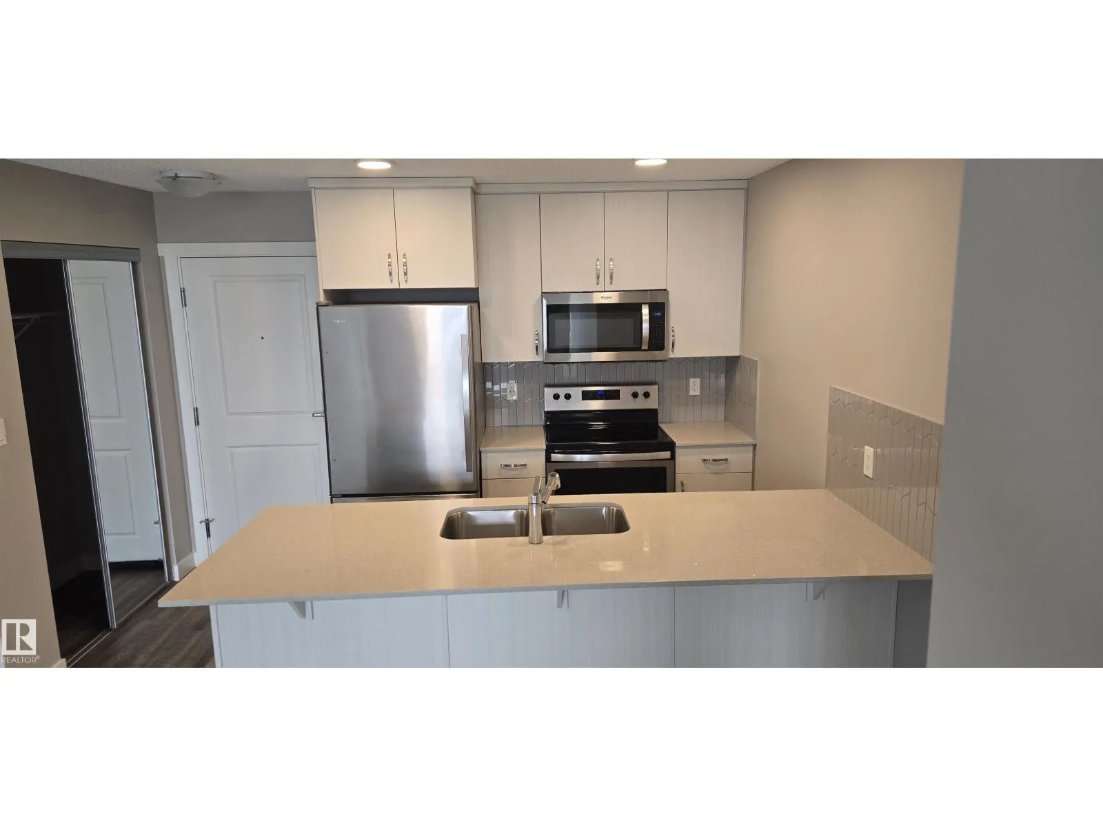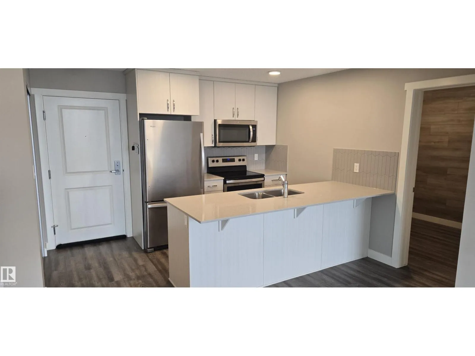 Welcome to this beautiful 1 bedroom, 1 bathroom condo offering approximately 700 sq. ft. of stylish living space. Located on the 4th floor in the desirable community of Tamarack, this home is perfect for first-time buyers, downsizers, or investors. Step inside to find a bright, open-concept layout featuring laminate flooring throughout and a gorgeous white kitchen complete with top-of-the-line appliances. The spacious bedroom offers comfort and privacy, while the full bathroom is sleek and modern. Enjoy the convenience of a prime location close to shopping, dining, schools, parks, and easy access to major roadways and transit. Donât miss the opportunity to own this modern, move-in-ready condo in one of Southeast Edmontonâs most sought-after neighborhoods! (id:27476)