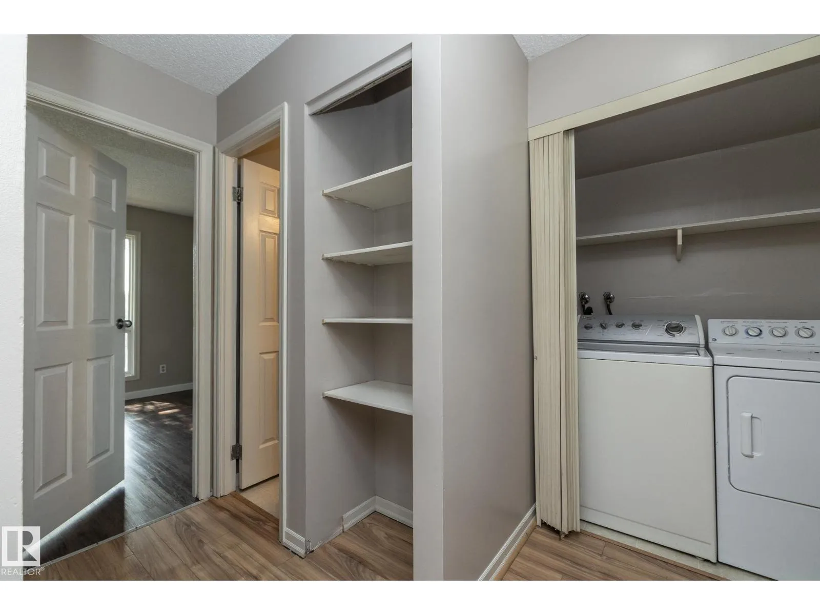 ? Top-Floor Corner Unit â Move-In Ready! ? Looking for your first home or a smart investment? This bright east-facing condo in a mature, tranquil setting delivers both value & comfort. Offering 2 spacious bdrms (each w/WIC), a versatile den/office (easily a 3rd bdrm), a 4-pc bath & in-suite laundry, it checks all the boxes. Fresh paint & laminate flrs create a modern feel, while the large kitchen w/pantry & dinette makes everyday living easy. The living rm is warmed by a cozy corner wood fireplace and the primary suite offers private access to the bath. Step outside to a private balconied patio w/storage & utility roomsâperfect for extra space. Enjoy an assigned parking stall right out front plus visitor parking nearby. Reasonable condo fees keep ownership affordable, while the well-maintained complex features quaint landscaping. The excellent location w/easy access to the Henday, schools, shopping & transit. A rare opportunity for buyers who want space, convenience & affordability all in one! (id:27476)