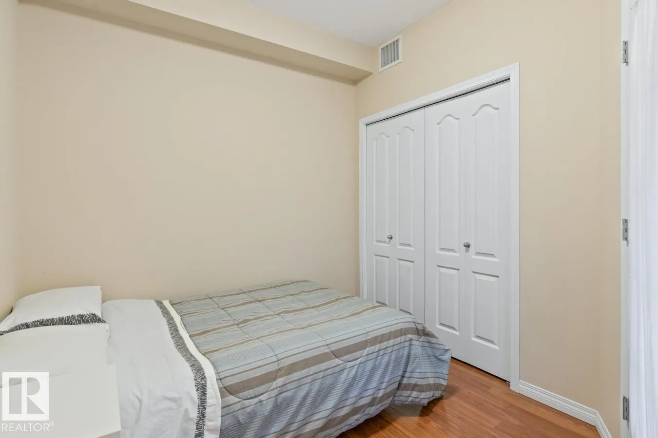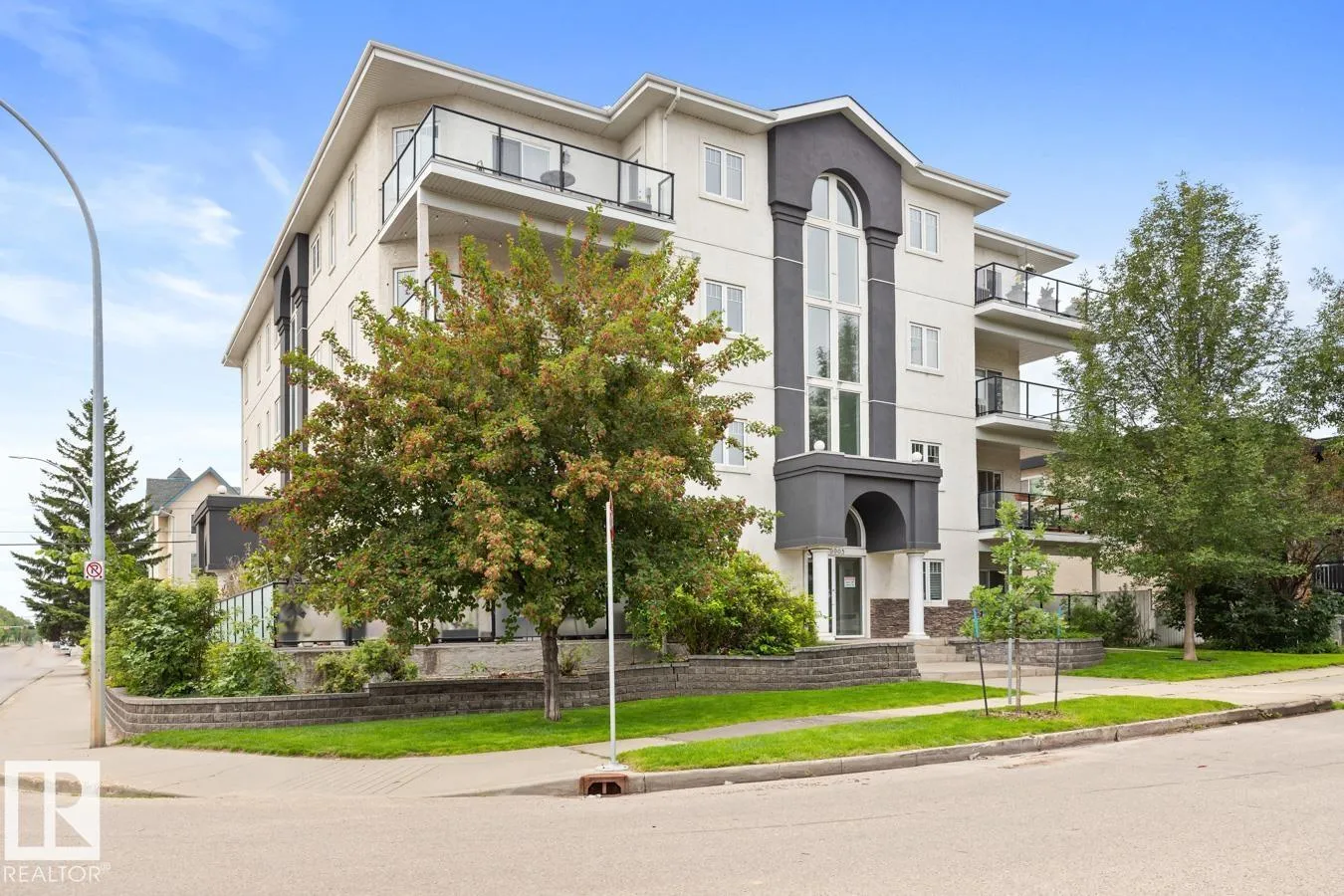 Welcome to Strathcona Haven a quiet building, where youâll find this gorgeous, air-conditioned condo featuring, 1 bedroom, den and 2 baths. Located just steps from Whyte Ave with easy access to the University of Alberta. This bright and inviting corner unit, has no neighbours on either side. Original owner & pet free this unit shows pride of ownership with functional layout. The kitchen offers ample cabinetry, brand new stainless steel appliances, a corner pantry, and opens to the spacious dining area. The cozy living room features a corner fireplace and access to a private patio. The king-sized primary suite includes dual closets and a 3pc ensuite. French doors open to the den with a closet, perfect for a home office or guest space. A 4pc bath, in-suite laundry plus storage complete the unit. You'll also enjoy heated underground parking and secured storage unit, in this pet-friendly building, complete with soundproofing. Close to transportation, boutique shopping, festivals, and the Farmers Market. (id:27476)