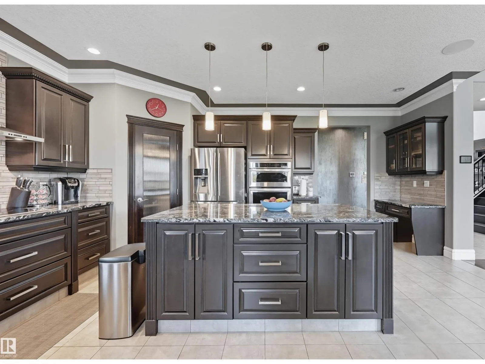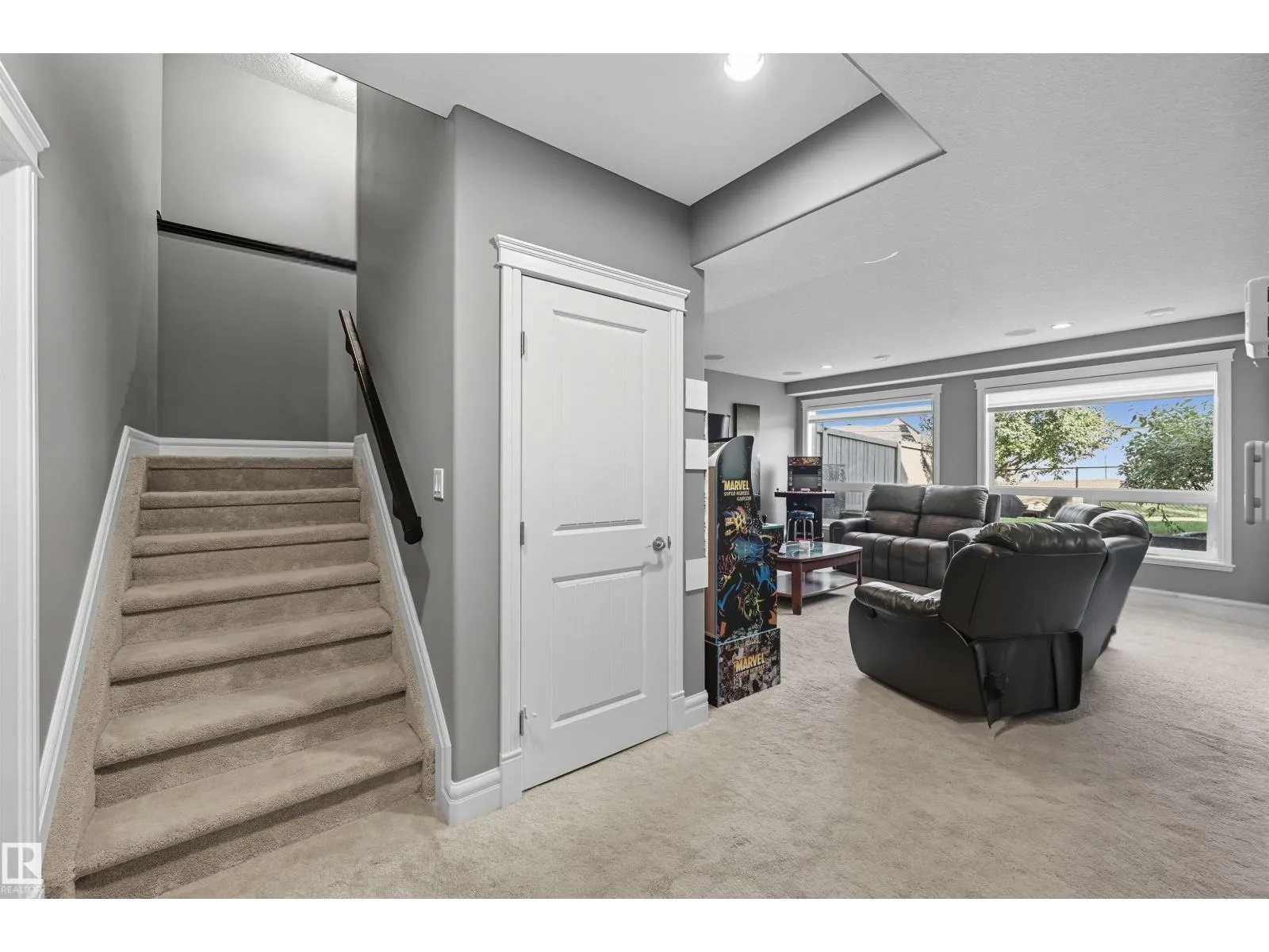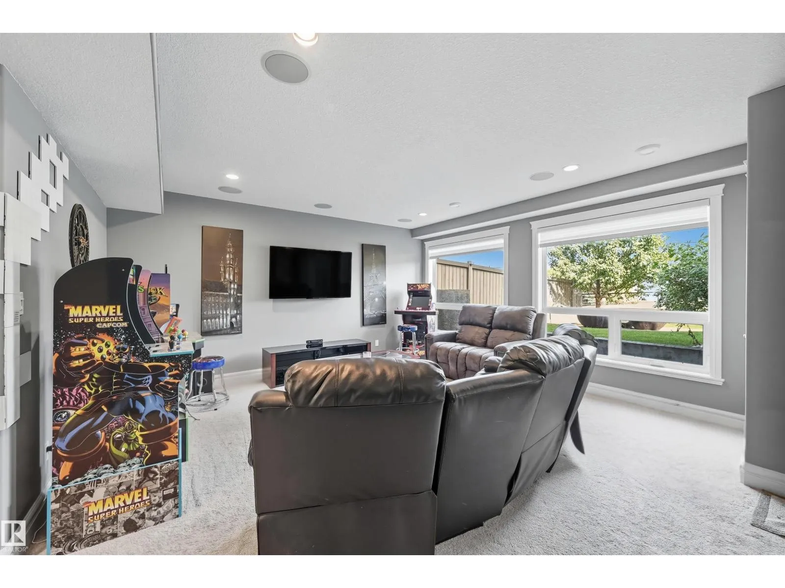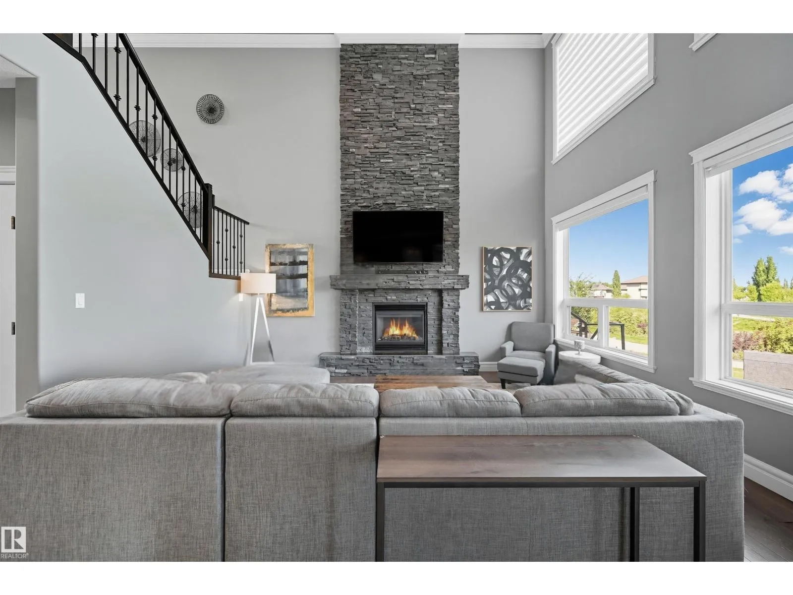 Spectacular custom WALKOUT 2 sty built by award winning White Eagle Homes. Incredible attention to detail & workmanship. 2612 sf of luxury + the fin bsmt, over 3800 sf. Soaring vaults in the foyer, flex rm & Great rm. Floor to ceiling windows allows the natural light to fill the home. Stunning stone fireplace, extensive use of recessed pot lighting, Control 4, crown moldings, pot drawers & hardwood. Chefâs kitchen features lots of cabinetry, upgraded granite counters, B/I S/S appliances & a massive island. Huge pantry leads to the spacious mudrm laundry area. Main flr den can be a 5th bedrm. Upstairs are 3 large bedrms incl a massive primary bedrm w/balcony w/a view of the pond. Spa like 5 pc ensuite w/a jetted tub & an O/S tiled shower. F/Fin bsmt offers in floor heating, wet bar, bedrm, games rm & a gorgeous 7.1 home theatre. Backs onto a green space/walkway leading to the pond. Keyhole location for the kids to play street hockey. Deck & patio firepit area. Oversized 23Wx22 garage w/drain & cabinetry (id:27476)