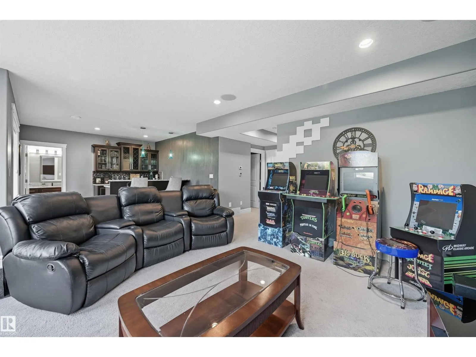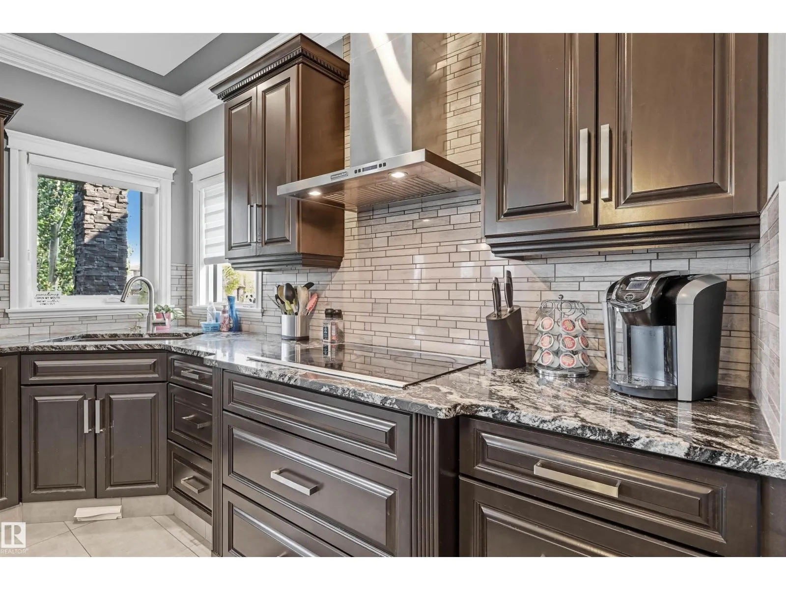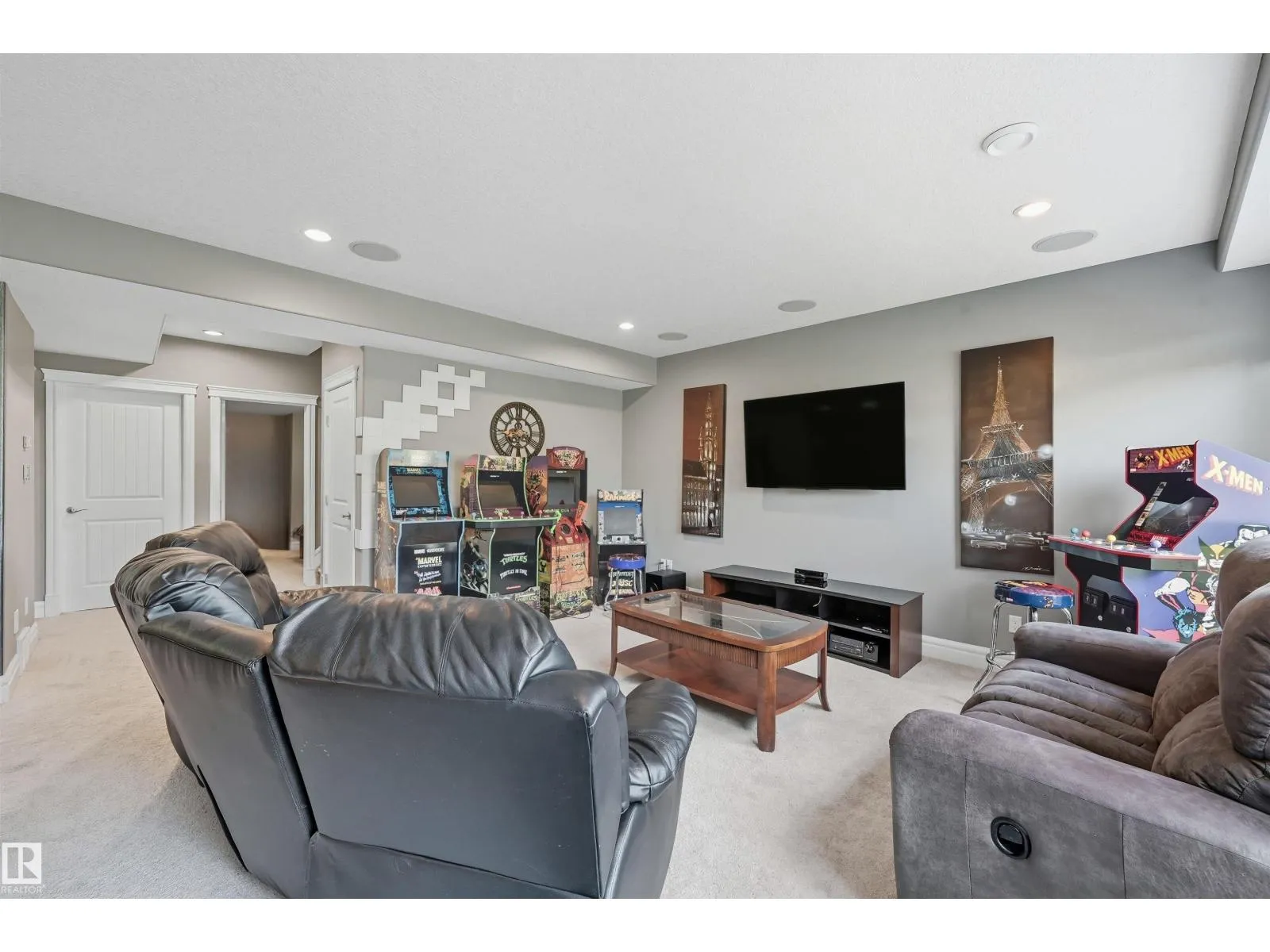 Spectacular custom WALKOUT 2 sty built by award winning White Eagle Homes. Incredible attention to detail & workmanship. 2612 sf of luxury + the fin bsmt, over 3800 sf. Soaring vaults in the foyer, flex rm & Great rm. Floor to ceiling windows allows the natural light to fill the home. Stunning stone fireplace, extensive use of recessed pot lighting, Control 4, crown moldings, pot drawers & hardwood. Chefâs kitchen features lots of cabinetry, upgraded granite counters, B/I S/S appliances & a massive island. Huge pantry leads to the spacious mudrm laundry area. Main flr den can be a 5th bedrm. Upstairs are 3 large bedrms incl a massive primary bedrm w/balcony w/a view of the pond. Spa like 5 pc ensuite w/a jetted tub & an O/S tiled shower. F/Fin bsmt offers in floor heating, wet bar, bedrm, games rm & a gorgeous 7.1 home theatre. Backs onto a green space/walkway leading to the pond. Keyhole location for the kids to play street hockey. Deck & patio firepit area. Oversized 23Wx22 garage w/drain & cabinetry (id:27476)