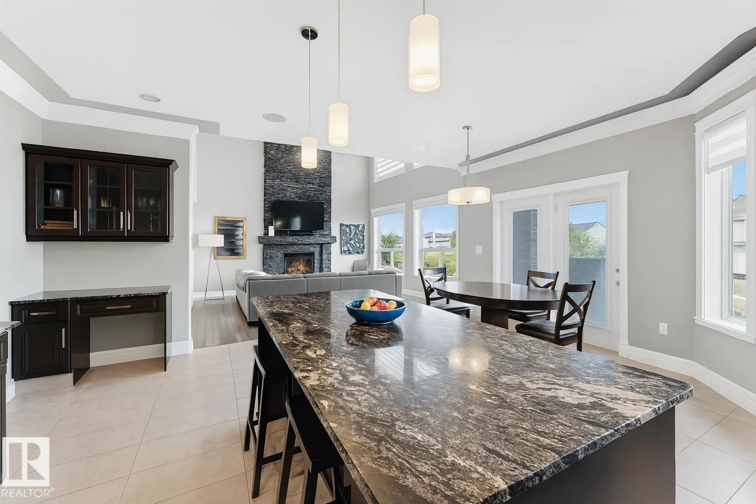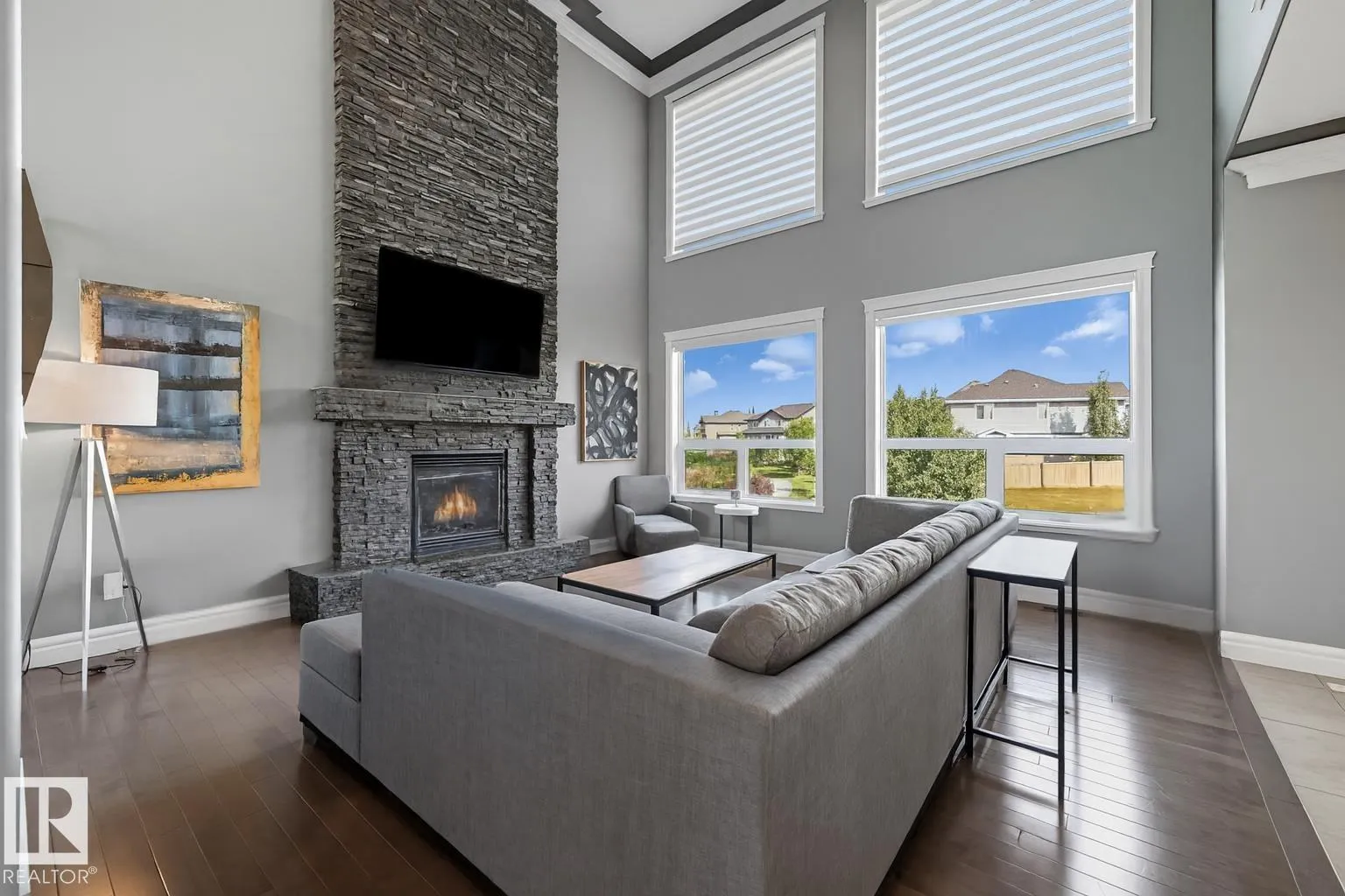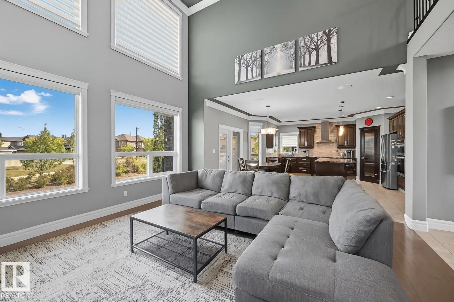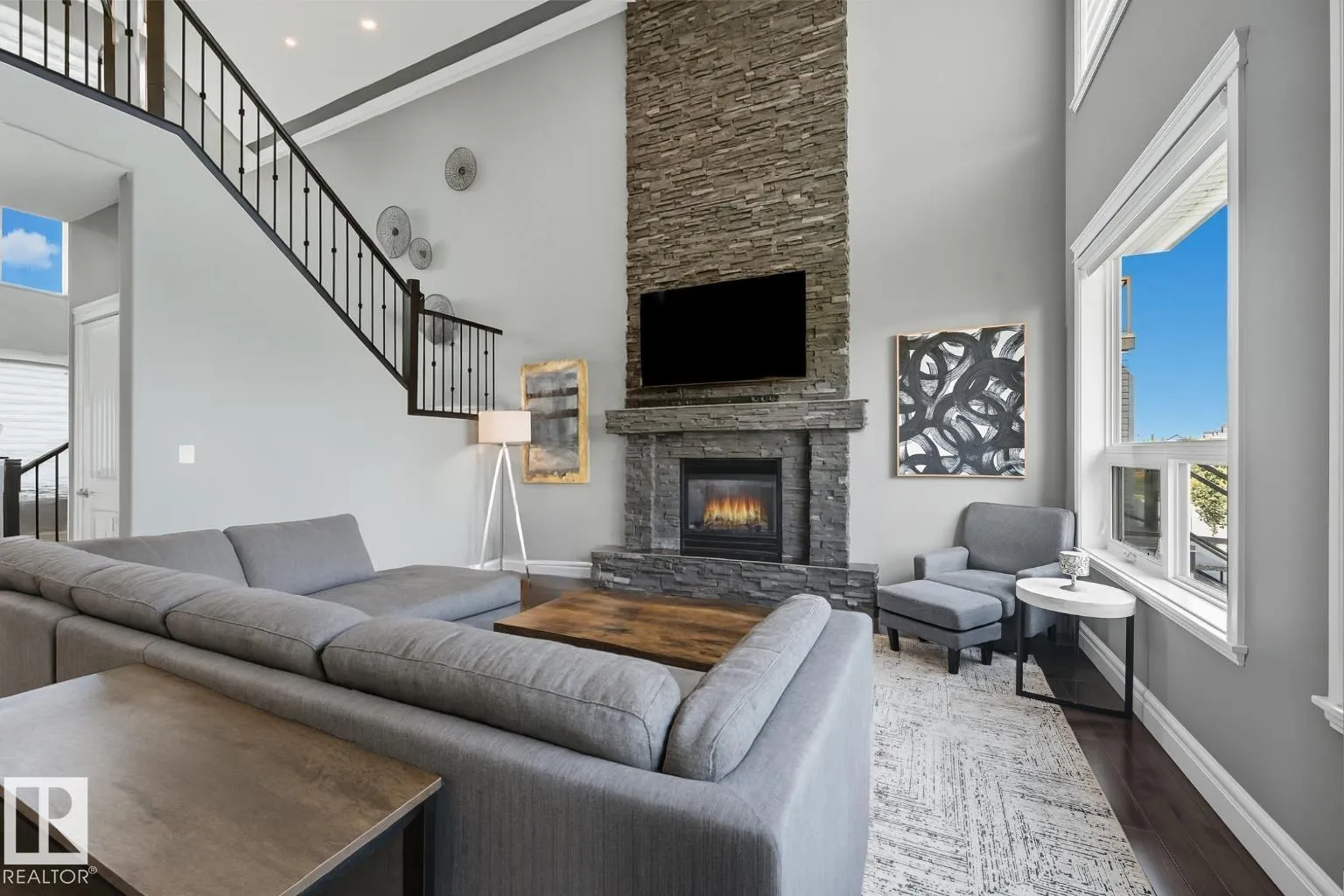 Spectacular custom WALKOUT 2 sty built by award winning White Eagle Homes. Incredible attention to detail & workmanship. 2612 sf of luxury + the fin bsmt, over 3800 sf. Soaring vaults in the foyer, flex rm & Great rm. Floor to ceiling windows allows the natural light to fill the home. Stunning stone fireplace, extensive use of recessed pot lighting, Control 4, crown moldings, pot drawers & hardwood. Chefâs kitchen features lots of cabinetry, upgraded granite counters, B/I S/S appliances & a massive island. Huge pantry leads to the spacious mudrm laundry area. Main flr den can be a 5th bedrm. Upstairs are 3 large bedrms incl a massive primary bedrm w/balcony w/a view of the pond. Spa like 5 pc ensuite w/a jetted tub & an O/S tiled shower. F/Fin bsmt offers in floor heating, wet bar, bedrm, games rm & a gorgeous 7.1 home theatre. Backs onto a green space/walkway leading to the pond. Keyhole location for the kids to play street hockey. Deck & patio firepit area. Oversized 23Wx22 garage w/drain & cabinetry (id:27476)