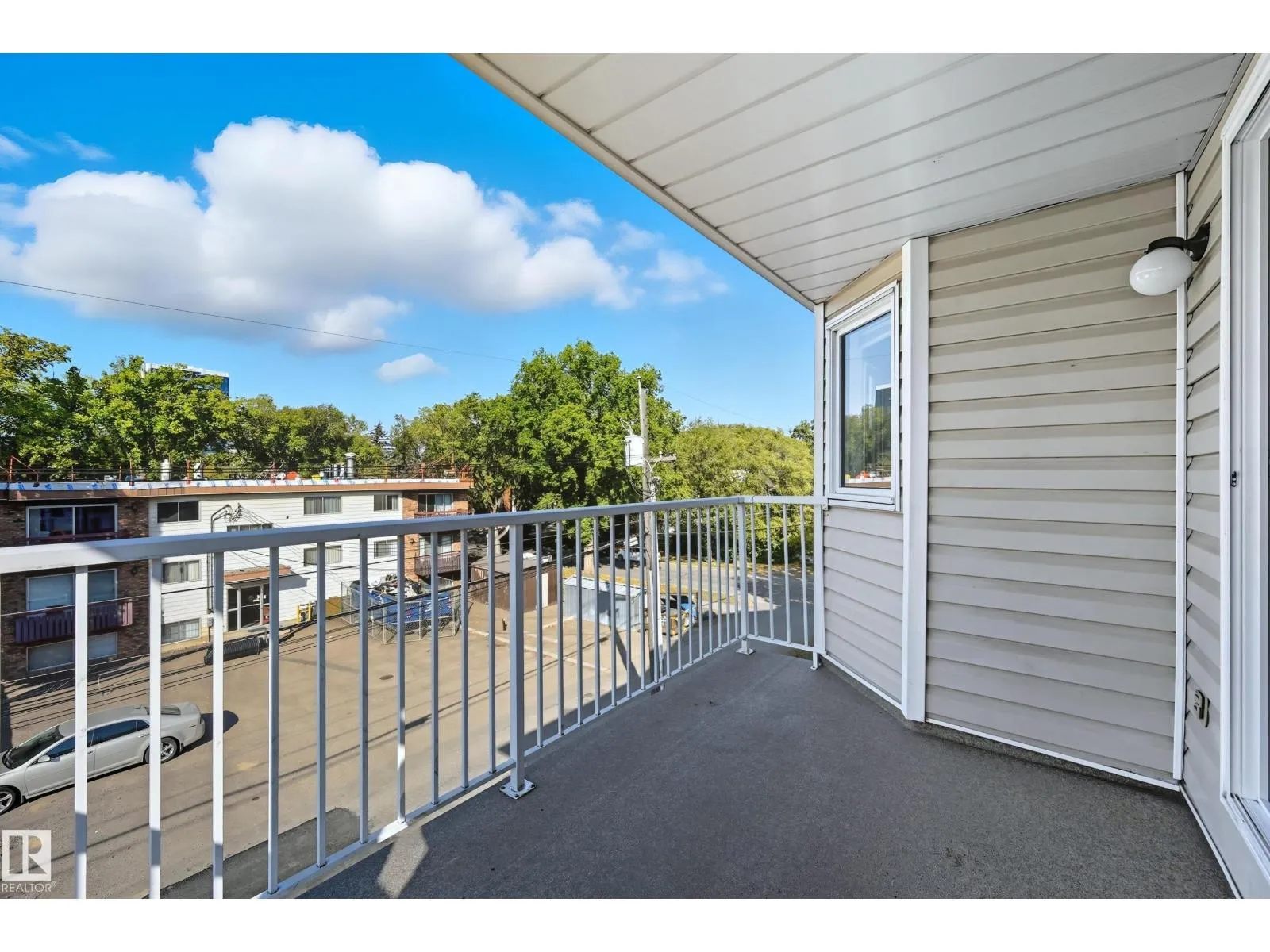 Welcome home to this spacious, top floor, corner unit located in the heart of the Queen Alexandra neighbourhood. Terrific location, close to the U of A, Scona high school and the old Strahcona area including Whyte Ave. 2 beds, 2 baths thoughtfully designed over 816 sq ft. In suite laundry, large patio and a wood burning fireplace are just some of this unit's unique features. The complex has new windows and decks and railings. Great area for a first time buyer or investor. Bike storage shed is another feature of this property. A can't miss property at under 200k. A must see. (id:27476)