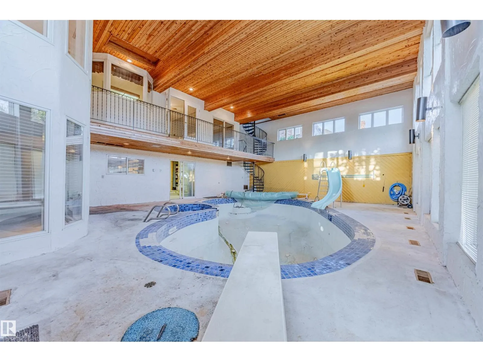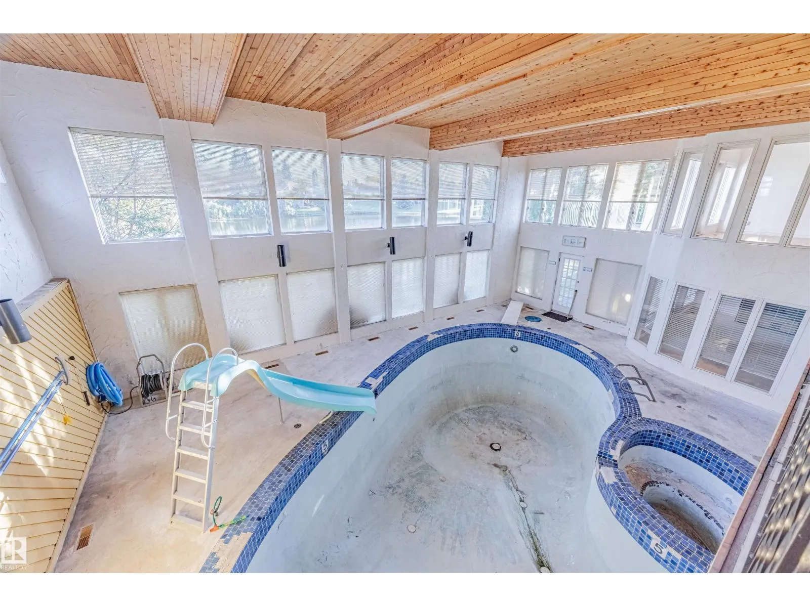 Location is unbeatable! Over 6000 sqft of living space in this unique 2 story walkout in the respected & admired community of Bearspaw. This spectacular home as a total of 5 fireplaces, 4 being double sided, in the dining & living areas on the main floor & lower level.The main floor has a bedroom/den at the front entrance, 1.2 bath, large laundry room with a sink & cabinets. 2 Access points to the basement, Access to the triple insulated garage, kitchen with a dinette area , family room with a gas fireplace & access that overlooks the pool/jacuzzi level. The upper level has 3 very large bedrooms & a 4 pc bath. The primary suite has 2 closets, 5 pc ensuite, access door that leads down to the pool & double patio doors that lead to the patio which is the full length of the house.There is also a den with access to the patio as well.The walkout lower level has a bar, dining & living area, lots of storage & access to the pool area. The backyard is incredible, lots of space. This property is a real gem. (id:27476)
