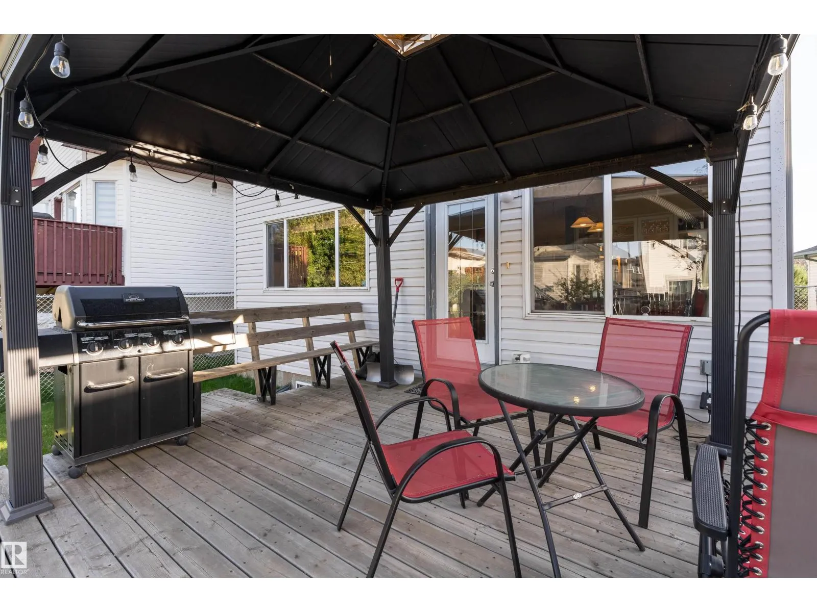 Welcome to this well-maintained home in the heart of Wild Rose, Millwoods! Offering over 2,300 sq. ft. of total living space, this property features 4 bedroomsâ3 upstairs and 1 in the partially finished basement. The main floor boasts an open-concept layout with a bright living room, dining area, kitchen, and convenient main floor laundry. Upstairs includes 3 spacious bedrooms and 2 full baths, including a primary suite with walk-in closet and 4-piece ensuite. The basement offers a large rec room, bedroom, and a rough-in for a future bathroomâready for your finishing touch. Situated on a large pie-shaped lot, the backyard includes a charming gazebo, perfect for relaxing or entertaining. Recent upgrades include a new roof, furnace, and central A/C (2022), offering peace of mind for years to come. Located close to schools, parks, shopping, and transit. This is a fantastic opportunity to own in a family-friendly community! (id:27476)