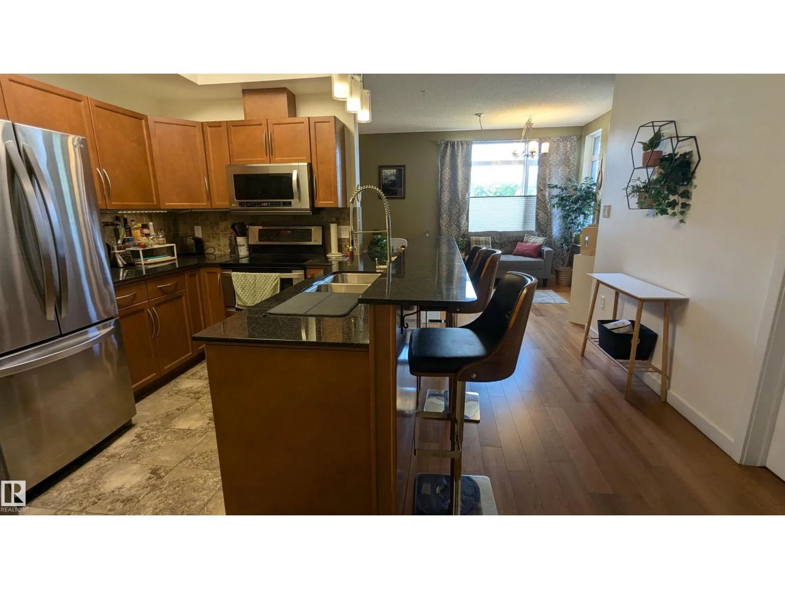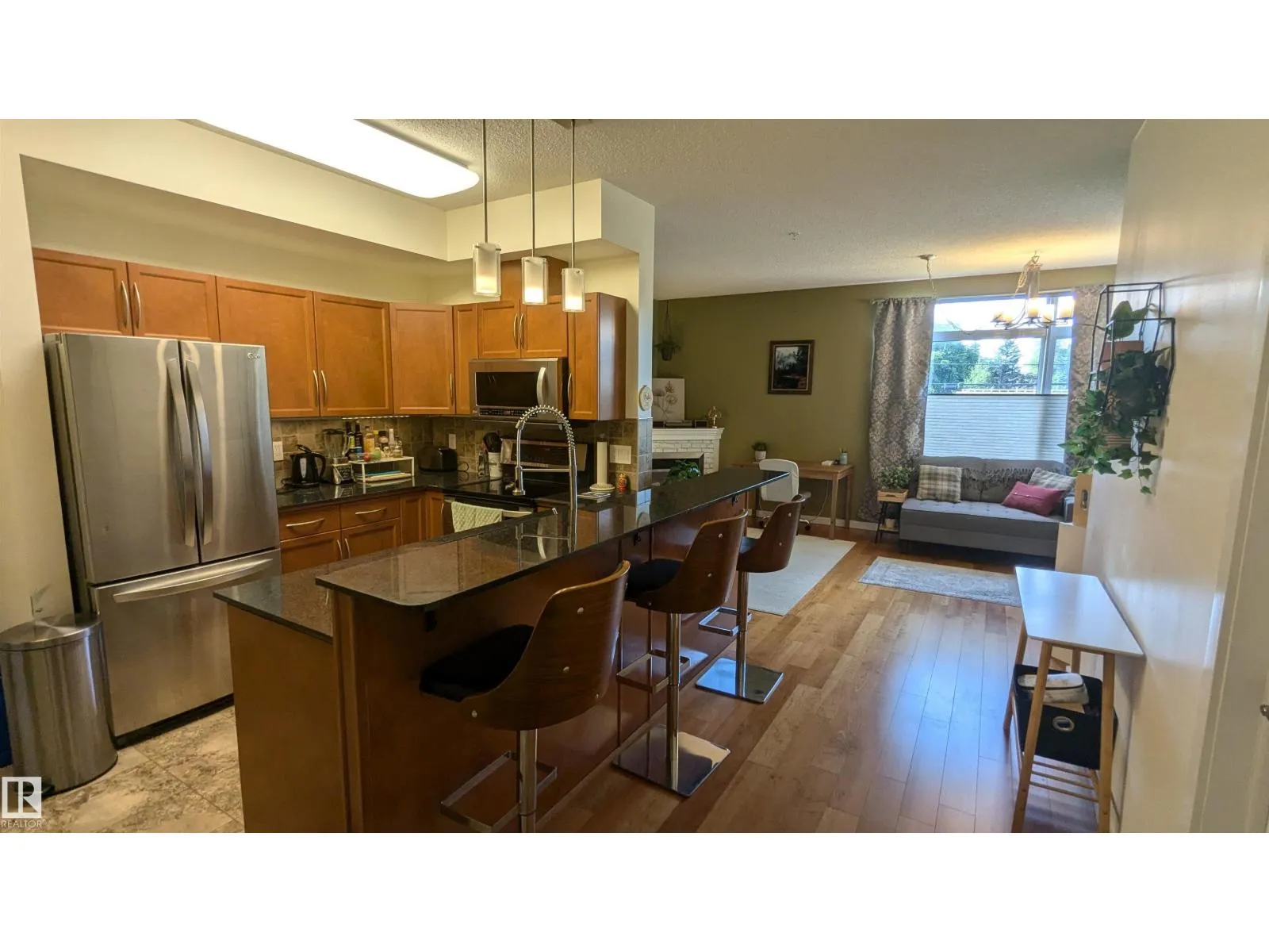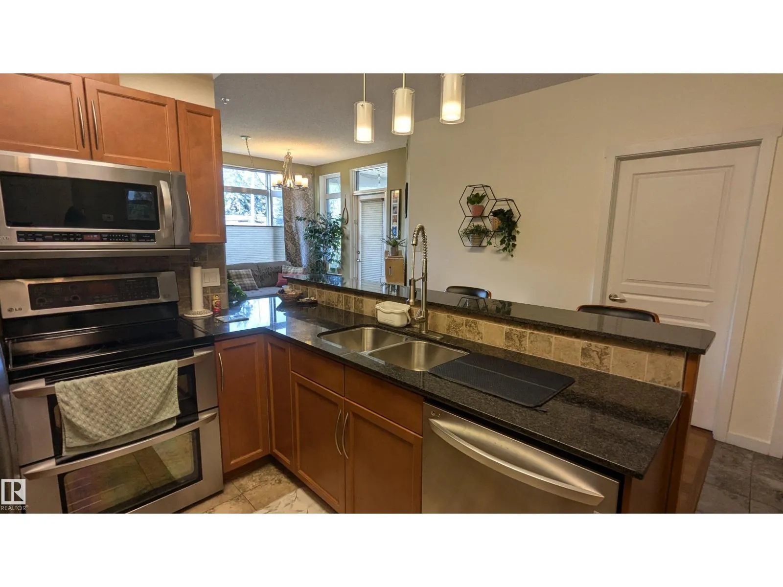Executive Parkallen residence hits the market! Finally, a fully upgraded 1-bedroom property is being resold in the prestigious Park One West building. Enjoy a sought-after location next to a large park, community garden, boutique shops, a cafe, and even an ice cream shop! Plus, youâll have quick access to transit and Whyte Avenue. This CORNER suite has been upgraded with a chef-worthy kitchen boasting granite countertops, newer high-end stainless steel appliances, fresh paint, and a premium lighting package. Entertain in style outdoors with a large veranda featuring gas hookups, or snuggle indoors by the fireplace. Additional features include custom closet built-ins, laminate flooring, Hunter Douglas shades, 9-foot ceilings, and concrete and steel construction. TITLED Underground Parking & Storage Locker. This property must be seen to be appreciated! (id:27476)