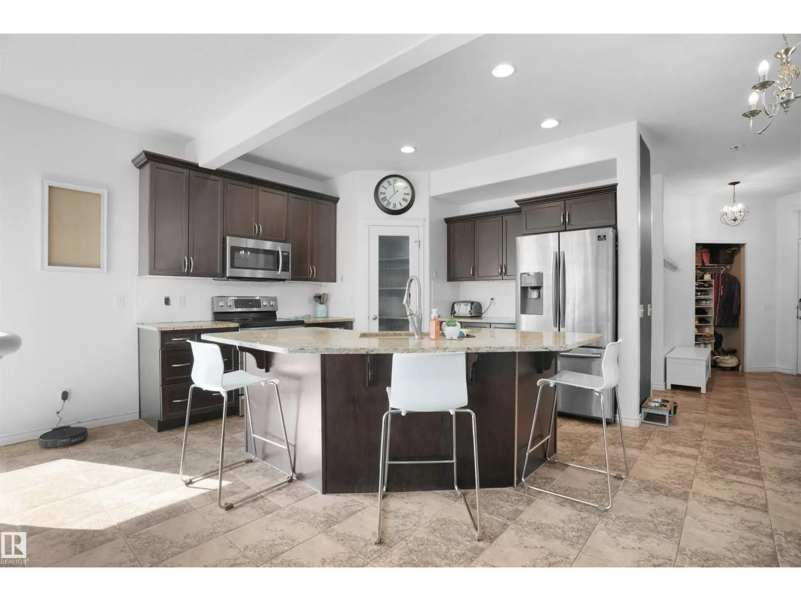 Welcome to this beautiful family home located in the prestigious community of The Hamptons. Perfectly situated just steps from a large community park and playground, and within walking distance to a Kâ9 school, this property combines comfort, space, and convenience. Inside, youâll find 5 bedrooms upstairs, including a spacious master retreat with vaulted ceilings, room for a king bed plus a sitting area, and a spa-like ensuite youâll never want to leave. The main floor features a bright living room with a unique feature-wall fireplace framed by windows, a large formal dining room, and a spacious kitchen with ample cabinetry, a walk-in pantry, and access to the deck for casual dining. The walkout basement is perfect for entertaining, complete with a granite-topped bar, home theater area with fireplace, an additional bedroom, and full bathroom. Sitting on a pie-shaped lot in a safe, tucked-away cul-de-sac, this property offers incredible curb appeal and plenty of space for the whole family. (id:27476)