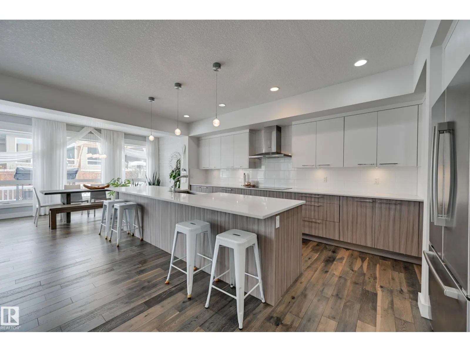Stunning Kanvi contemporary 2 sty home located in prestigious Jagare Ridge. Beautifully designed & decorated w/loads of upgrades. Open concept plan w/an abundance of natural lighting- perfect for those who love to entertain large or small gatherings. Over 4000 sf ttl. High ceilings, open tread hardwood stairs w/metal cable railing. Chefâs kitchen w/BOSCH S/S appliances, a huge island w/eating bar, quartz counters & W/I pantry. Great rm/ linear FP. Large dining area can expand to accommodate large groups. Big mudrm for the growing family. Gorgeous H/W throughout much of the home. Upper level has a Bonus Rm, 3 large bedrms, laundry rm & 5 pc bathrm. Luxurious primary suite w/a spa like retreat. F/Fin bsmt w/Rec rm, Media rm, 3 pc & a 4/5th bedrm. Convert one to an exercise area. Beautifully landscaped yard w/a multi tiered deck w/a pergola. Add a couple of Choke Cherry trees & you have instant privacy. The home has A/C & an O/S heated garage. Close to eateries, shopping, golf, trails & transit (id:27476)