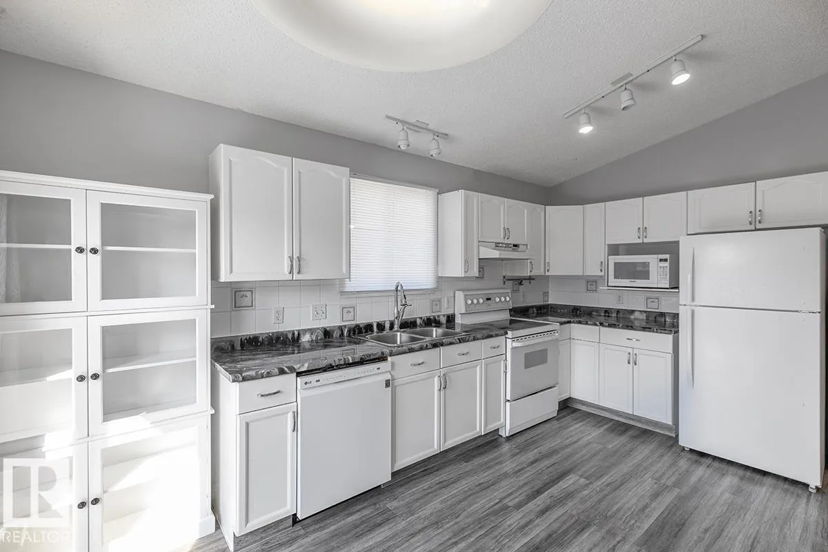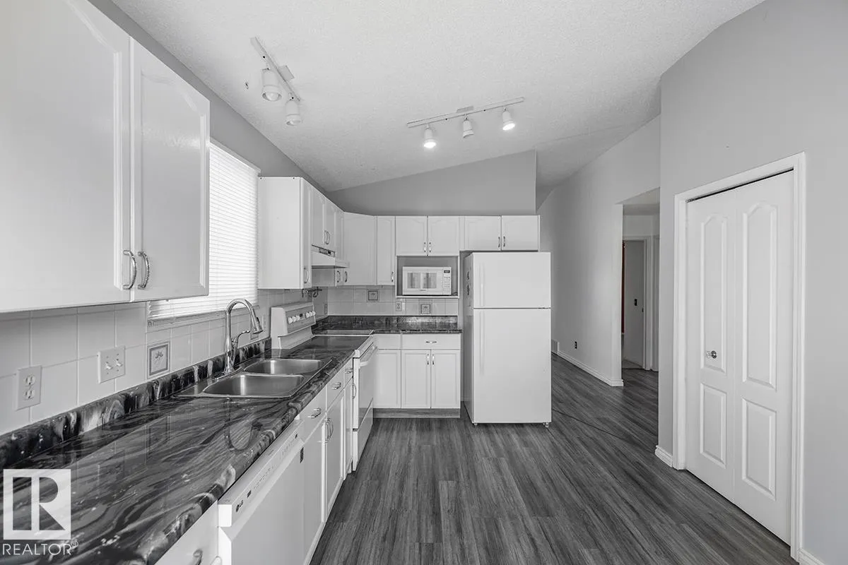 This CORNER LOT 5-BEDROOM bungalow is the perfect match for large or multi-generational families seeking space, and unbeatable convenience. Located just one minute from Belmont School, and moments from the Henday, Manning Drive, and Transit Centre. Inside, soaring VAULTED ceilings and an airy OPEN-CONCEPT layout welcome you with warmth and natural light. Premium laminate flooring with carpet in all bedrooms for added comfort. The FULLY FINISHED basement features a cozy family room with a gas FIREPLACE and two completed bedrooms (2025), ideal for teens, or extended family. Enjoy peace of mind with recent mechanical upgrades, including a HIGH-EFFICIENCY furnace, central AC (2025), shingles (2017). Outdoors, the CORNER LOT adds ample parking, the side of the home is lined with mature plants ready to thrive with care, and raspberry bushes in the backyard add a sweet summer bonus. A double attached garage, and fresh interior paint. Incredibly well-located, this gem is the definition of âfamily-ready.â (id:27476)