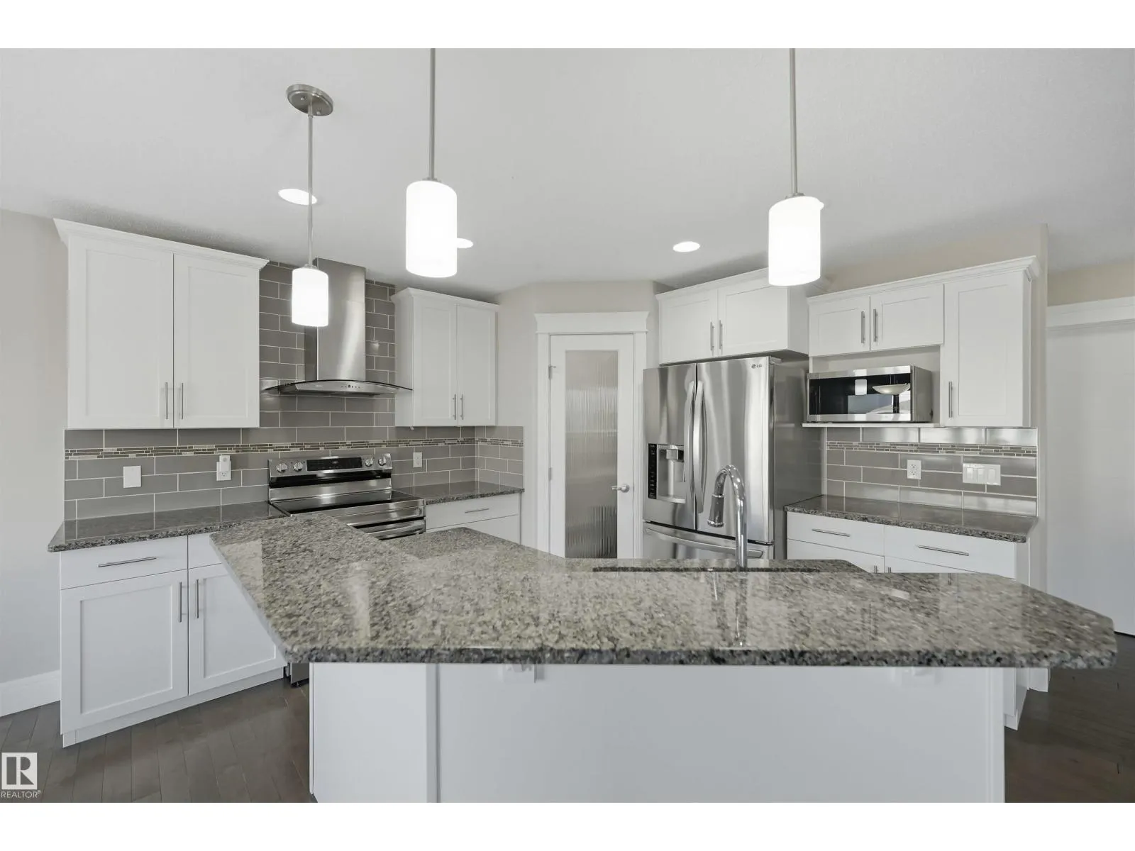 Thoughtfully designed with a flexible layout, ideal for single-family living or multi-generational lifestyles. Offering approx 2800sf of total living space on 3 levels. 3 living areas, 2 kitchens, 3 dining areas, 4 bedrooms & 4 bathrooms. Sunny South fronting, open layout features a cool toned neutral modern palette. Living room highlights a linear gas fireplace & views of private yard. Kitchen features white shaker profile cabinets, black granite, prep island & corner pantry. Spacious nook with direct access to deck. Upper level bonus room for family movie nights. Primary bedroom will house a king sized set & is complete with dual walk-in closets & 4pc ensuite. 2 additional bedrooms & 4pc bathroom for a growing family. Lower level offers an oversize recreation room which will accommodate most furniture arrangements. 2nd kitchen & 2nd dining area for inlaws, entertaining or extended guest stays. 4th bedroom & full bathroom complete this level. Steps to multiple parks/ponds & within catchment of 4 schools. (id:27476)