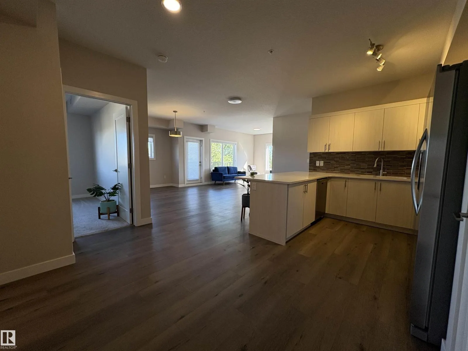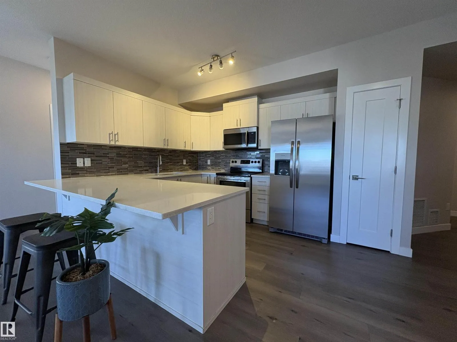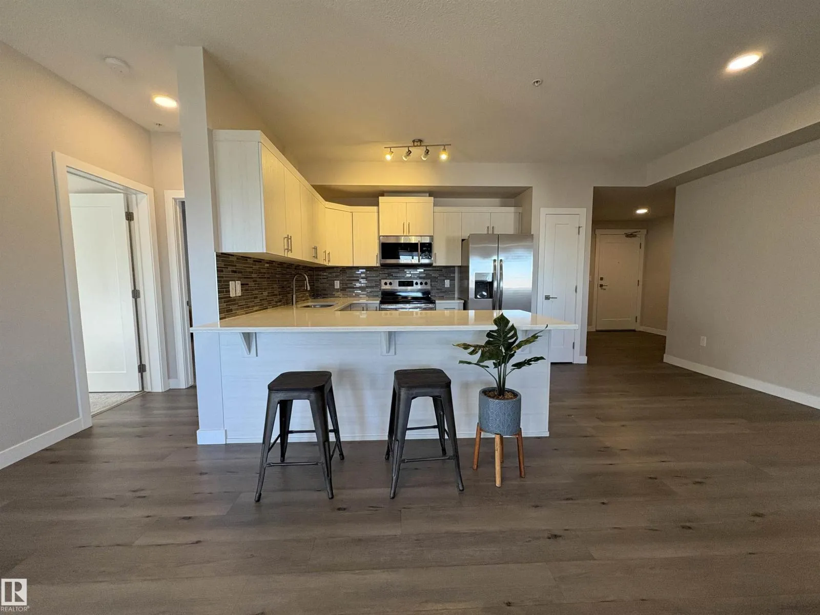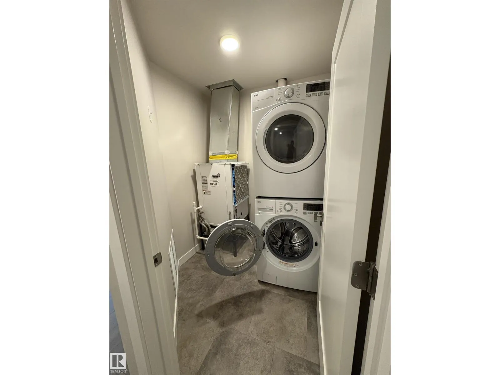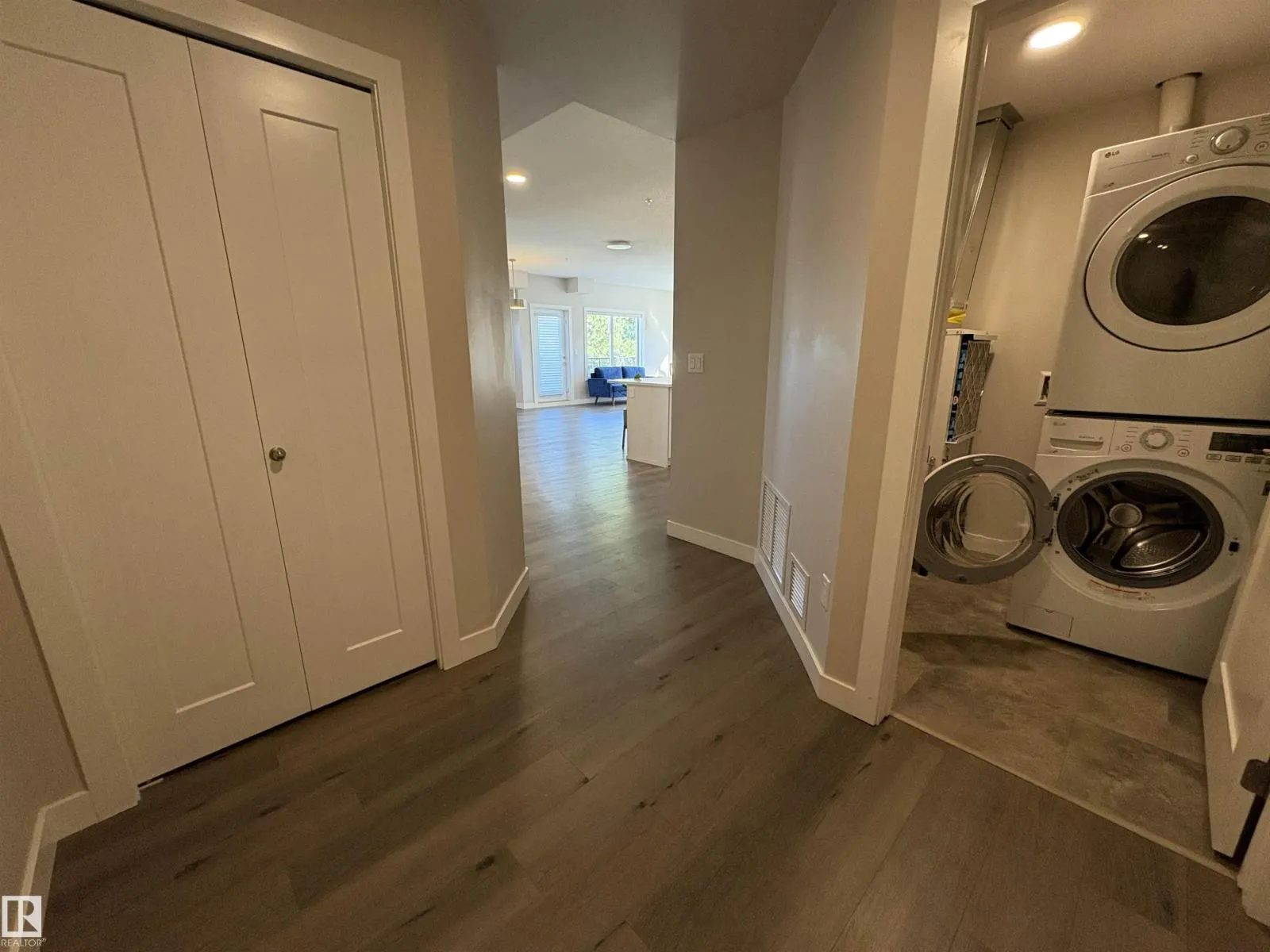 Spacious 1,333 sq. ft. (builder's size) top-floor condo in the highly desirable Griesbach community! This 3-bedroom, 2-bath home boasts modern finishes including a heat pump, quartz countertops, soft-close cabinets and drawers, and durable LVP/LVT flooring throughout the main living areas, with cozy carpet in the bedrooms. Enjoy a north-facing deck overlooking the quiet, tree-lined neighborhoodâperfect for relaxing or entertaining. Underground tandem parking for two vehicles adds convenience. Griesbach offers a vibrant, family-friendly lifestyle with parks, walking trails, local shops, cafes, and easy access to schools and public transit. Building amenities include a car wash bay, underground parking, library, games room, and exercise room. A stylish, functional home in a thriving, welcoming community! (id:27476)
