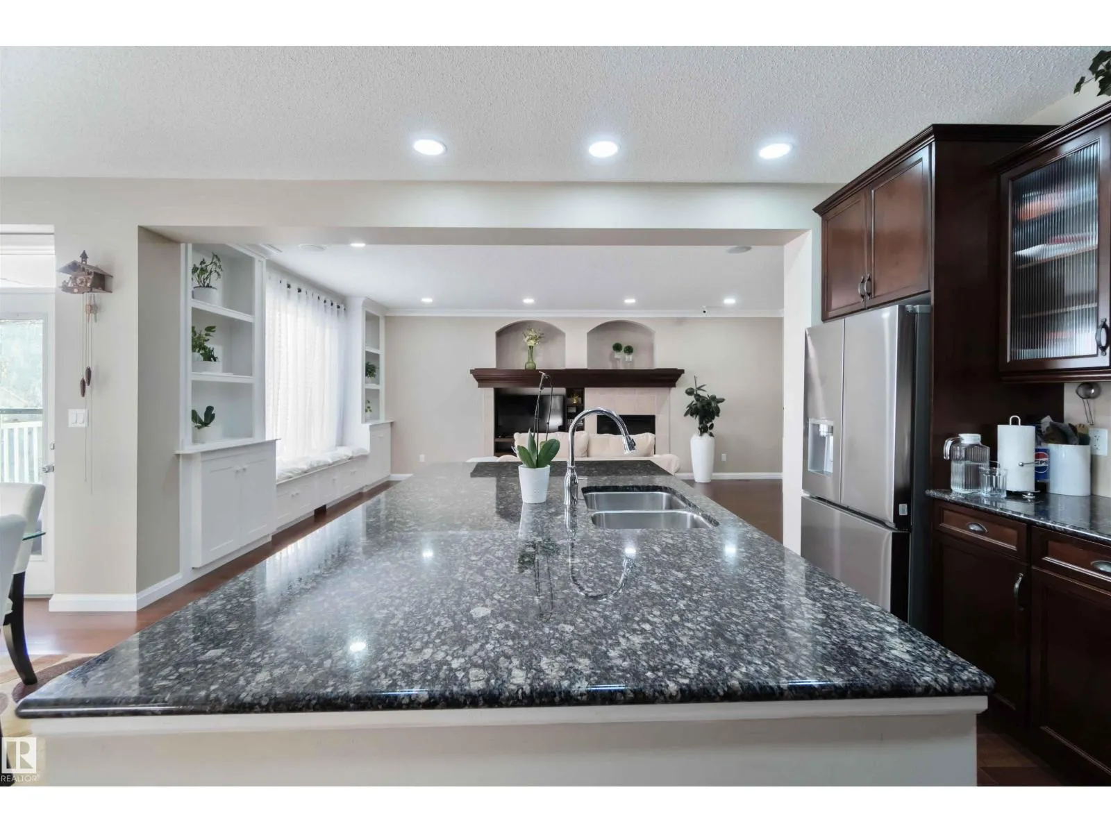 Freshly updated and beautifully maintained, this Ambleside 2-storey offers over 3,850 sq ft of well-designed living space. The open to below foyer welcomes you with natural light and warmth, leading to French doors that open to a versatile flex room, perfect for a home office or guest suite, with a full bath nearby for added convenience. The open concept living area features a stunning custom built-in feature wall with storage and seating, a cozy gas fireplace, and a kitchen with granite counters, rich cabinetry, and appliances that are practically new. Upstairs, four spacious bedrooms and a large bonus room provide comfort and flexibility for family living. The primary suite showcases a spa inspired ensuite with a steam shower and jet soaker tub. The finished basement adds a fifth bedroom, a full bath, and a generous recreation area. Complete with an oversized garage, mature landscaping, and a sunny deck, this home delivers exceptional style, space, and value. (id:27476)