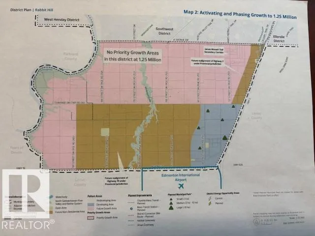 32 acres Prime Developable lands within City of Edmontonâs RABBIT HILL DISTRICT PLAN â this area also generally called Southwest area of City of Edmonton. The City of Edmonton has already started the SERVICING STUDIES of this Entire Area so that the owners and developer owners of the lands in this area can Plan their lands to respective Area Structure Plans for developments. This area where these 32 acres are located will most probably be FIRST Area to be developed for residential development in the NORTHEAST PART of Southwest Edmonton; South of 41 Ave SW & just west of QEII. These lands are well located on 127 street SW, just South of 41 AVE SW. Great Property to buy in this great Southwest Area of City of Edmonton (id:27476)
