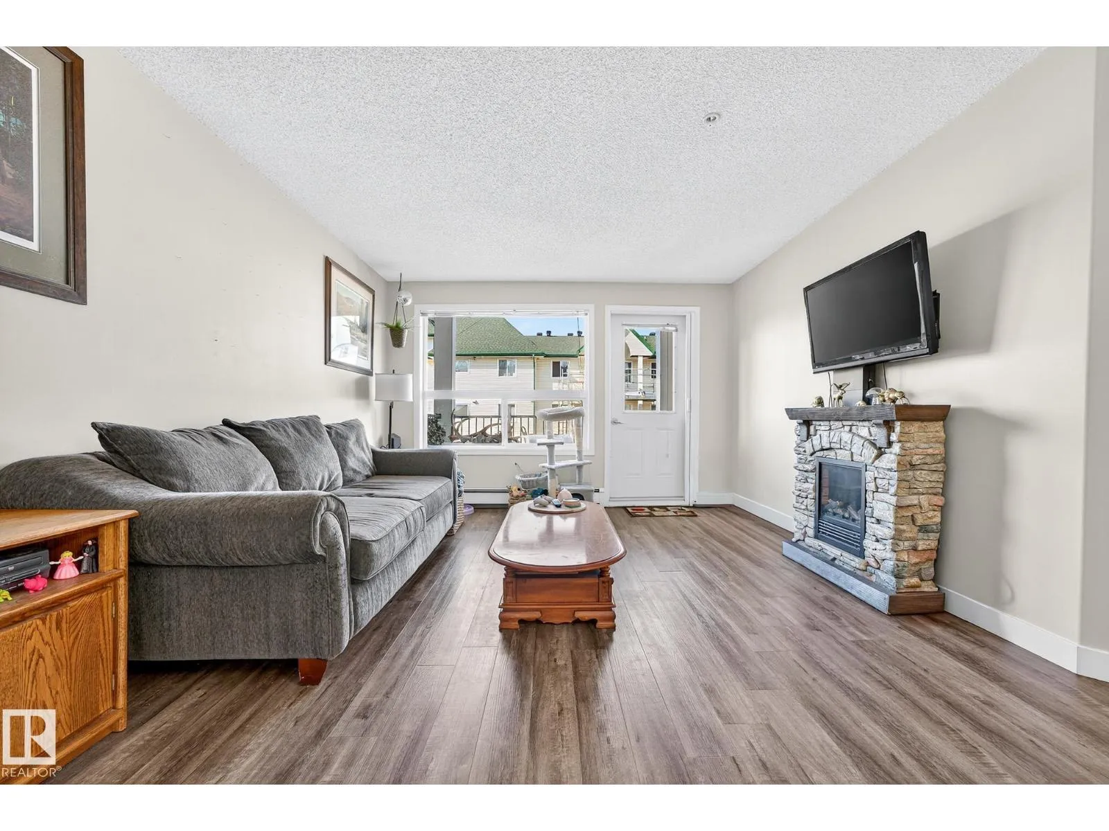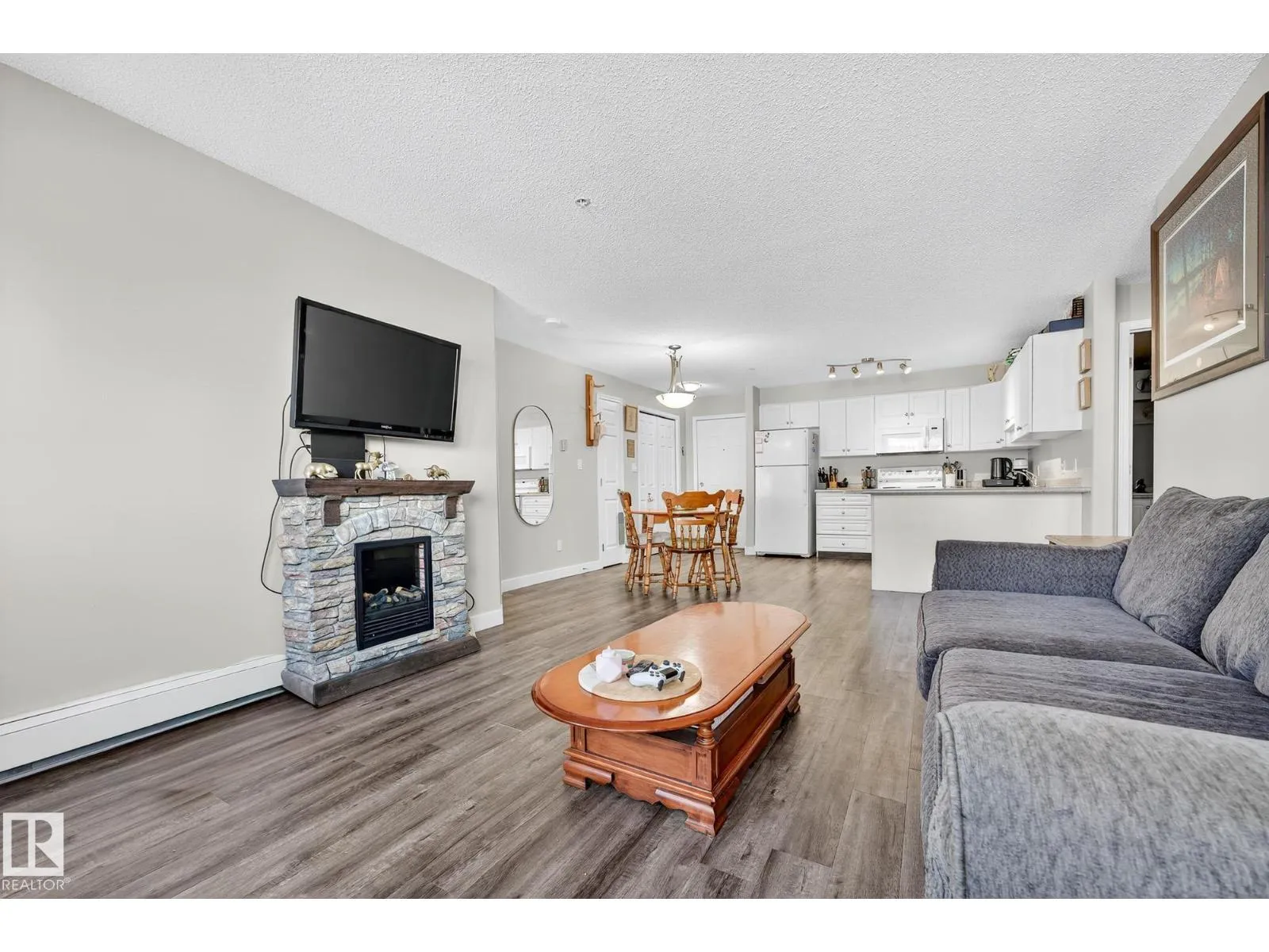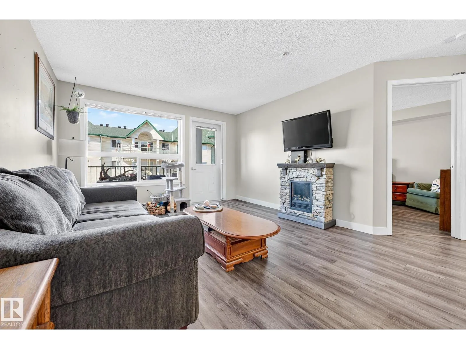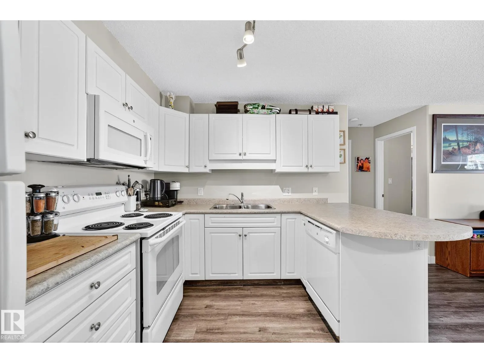 Beautifully kept 2 bedroom, 2 bathroom condo in Belmontâs desirable adult complex, Chelsea Greens. This 3rd floor, move-in ready unit comes with 2 parking stalls. One heated underground with storage cage and one surface. The well-maintained common areas set the tone before you step inside to new vinyl plank flooring throughout. Featuring a California split layout, each bedroom is separated by the living room for added privacy. The primary suite includes a walk-through closet and 3-piece ensuite, while the second bedroom is next to the main 4-piece bath and in-suite laundry with newer washer & dryer. Residents enjoy a fitness and social room on the main floor. Convenient location close to LRT, shopping, Clareview and more this home is ready for you! (id:27476)