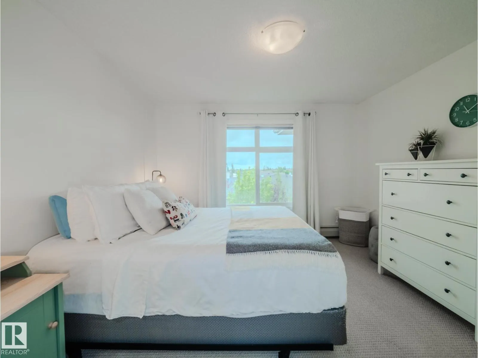 This is the one! TOP FLOOR...2 Bedroom, 2 Bathrooms, 2 TITLED UNDERGROUND, SIDE BY SIDE PARKING STALLS with one storage cage! This 936 sf open floor plan faces south with an abundance of natural light! The foyer has plenty of space which leads you into the kitchen with a sit up area and dining area! The living room is facing south and the balcony with a natural gas hook up is off of the living room. It has the perfect set up with both bedrooms being at opposite sides of your living space. The primary bedroom has a walk through closet with plenty of space on both sides as you go into the 3 piece ensuite. The second bedroom is perfect for another bedroom or a den/office. There is another 4 piece bathroom right beside this bedroom! Rutherford Gate has amenities which include a gym, social room and guest suite. All of this and it's in an amazing location with easy access to the Anthony Henday, shopping, public transportation and schools! THIS HOME SHOWS LIKE NEW! (id:27476)