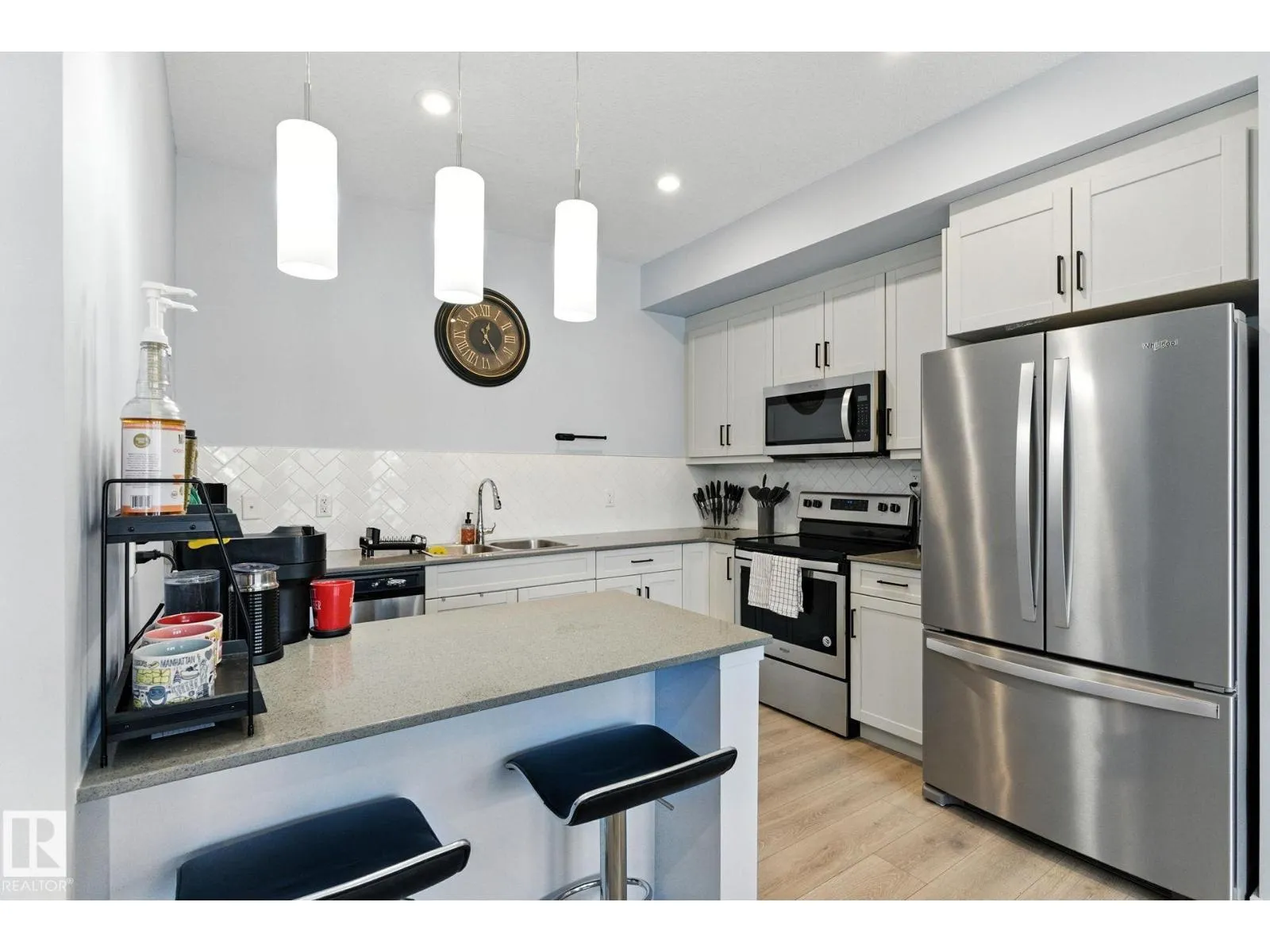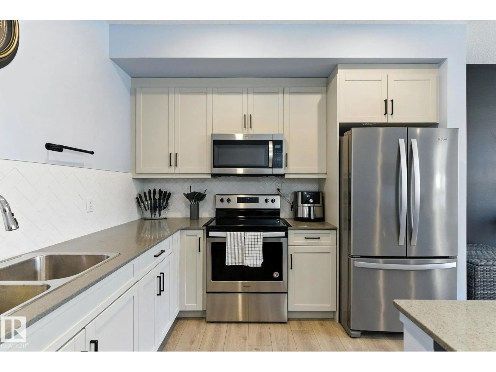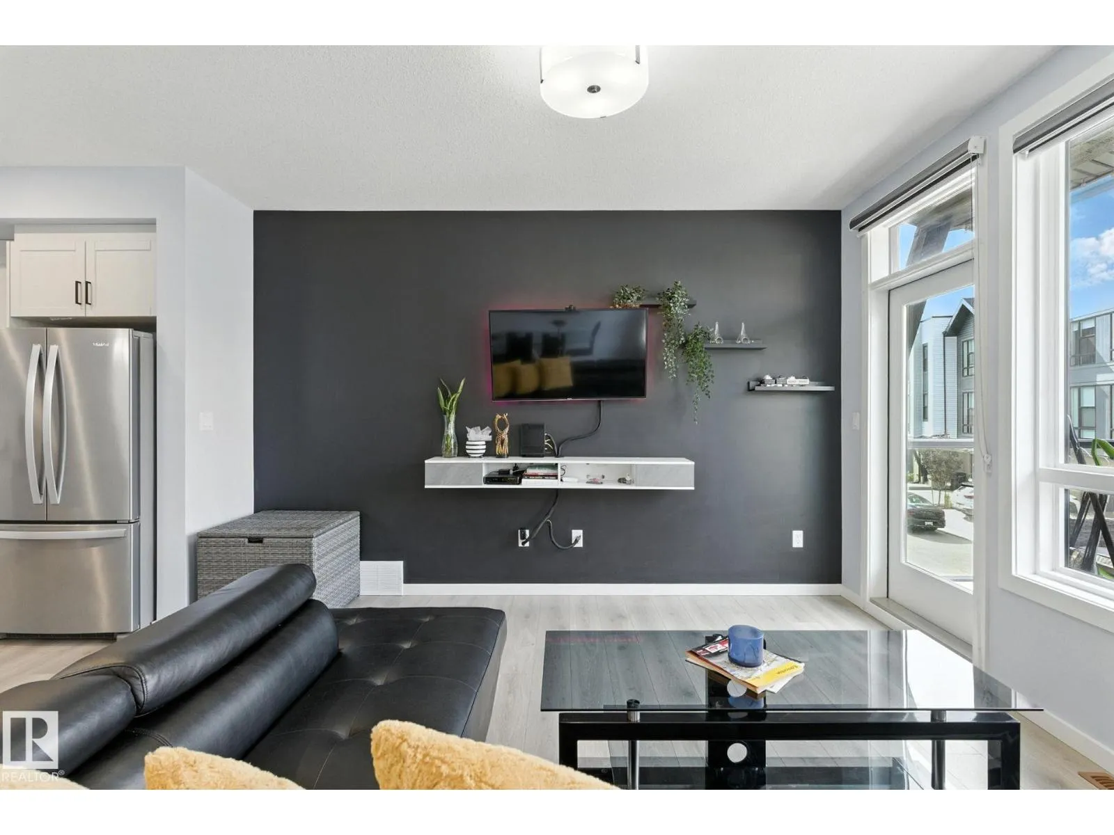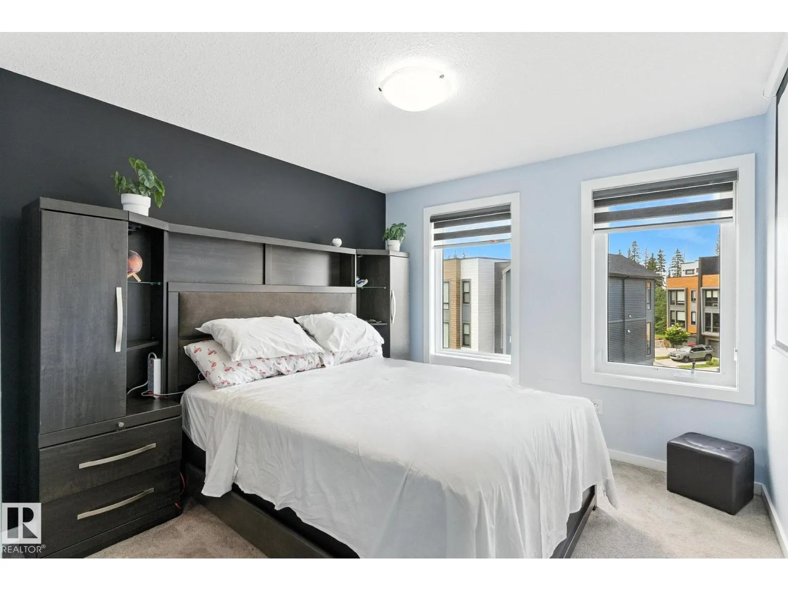 Modern living in Rutherford â Smart style, low fees! A great opportunity to own in South Edmonton. This well-appointed 3-storey townhome welcomes you with a warm foyer and convenient access to your fully finished attached garage. The bright main level features floor-to-ceiling windows, an open-concept kitchen with quartz countertops and stainless steel appliances, a dedicated dining space, and a stylish living area. Upstairs offers two generous bedrooms including a king-sized primary with walk-through closet and ensuite with oversized shower, a 4pc guest bath, and upper laundry. Additional extras - 2pc Guest Bath, Custom Storage solutions and Built-ins in the Garage & Convenient Guest parking (just a few steps away). Nestled in a park-like setting, this home is in the well-managed Pivot complex with the lowest condo fees in South Edmontonâclose to parks, trails, schools, shopping, and major commuting routes. What an amazing place to start. Welcome Home! (id:27476)