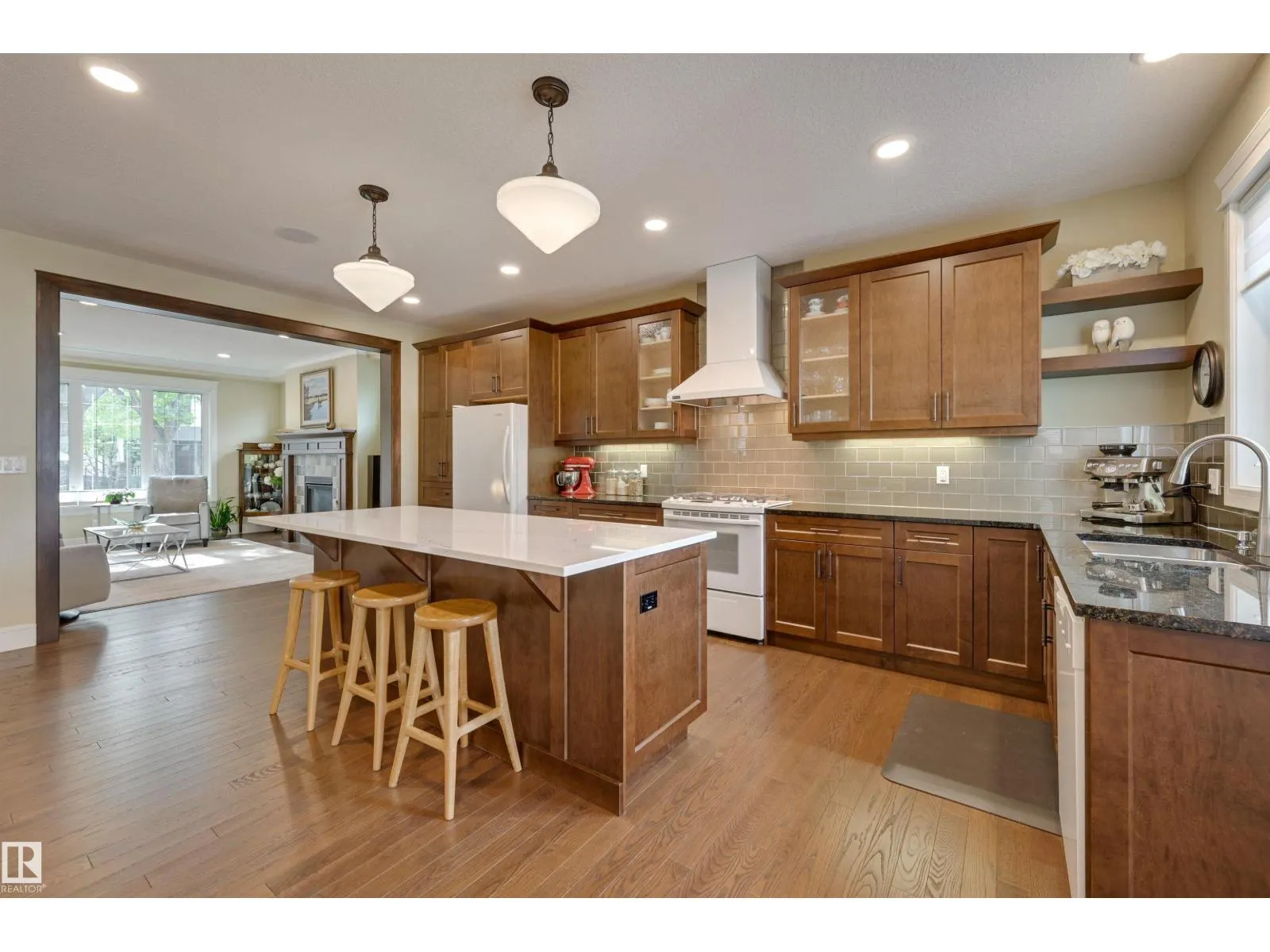 Welcome to this CUSTOM BUILT home! With aprox. 2,700 sq. ft.total living space, this property offers 3 bedrooms and 2.5 baths. The open floor plan is filled with natural light, featuring a modern kitchen,flowing effortlessly into the diningroom with views to the garden and living room enhanced by a cozy fireplace. Primary suite boasts a spa-inspired ensuite with STEAM SHOWER, bonus room w/ access to south balcony. Downstairs, find 2 additional bedrooms,full bath & family room with wet barâperfect for entertaining.Outdoors, enjoy a private yard enhanced with a bubbler water feature and perennial gardens and patios.A true highlight is the OVERSIZED HEATED DOUBLE GARAGE WITH LARGE LOFT,ideal for workshop, studio or man cave. Energy efficiency shines with SOLAR PANELS.Set on a 4,300+ sq. ft. lot and located minutes from the University of Alberta, Whyte Avenue, downtown, and the river valley, this home combines style, function, and convenience. A true Queen Alexandra gemâmove-in ready and designed to impress! (id:27476)