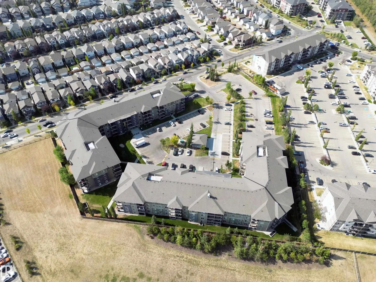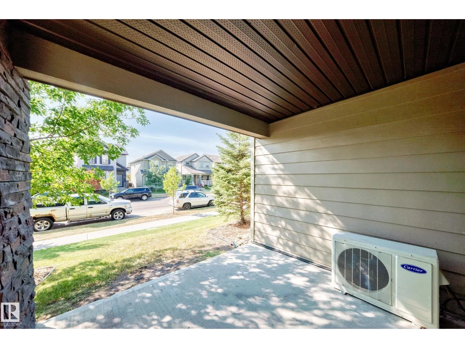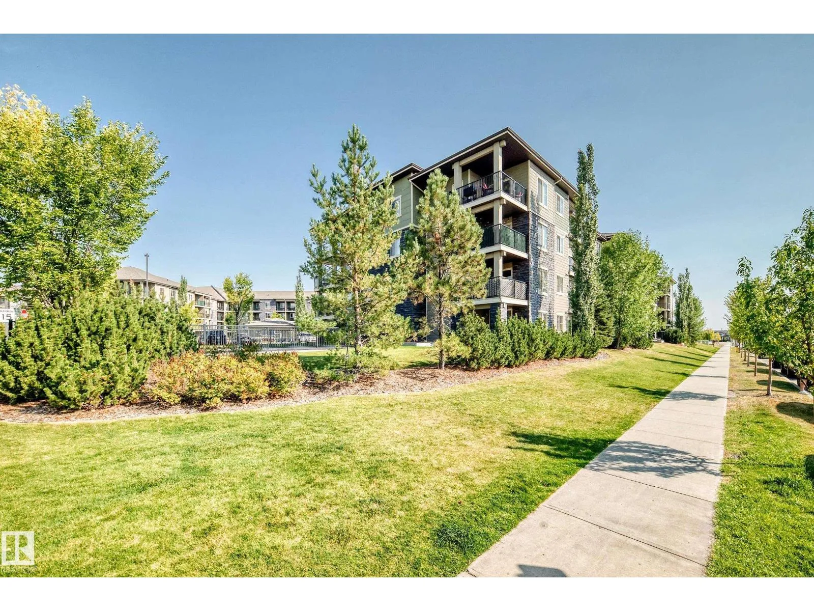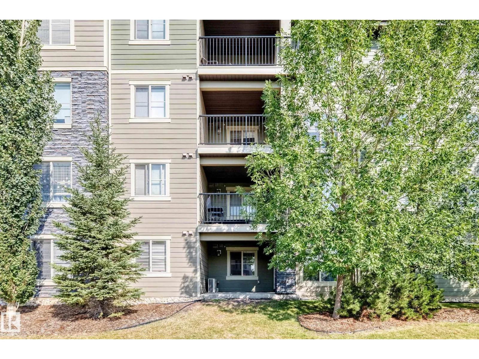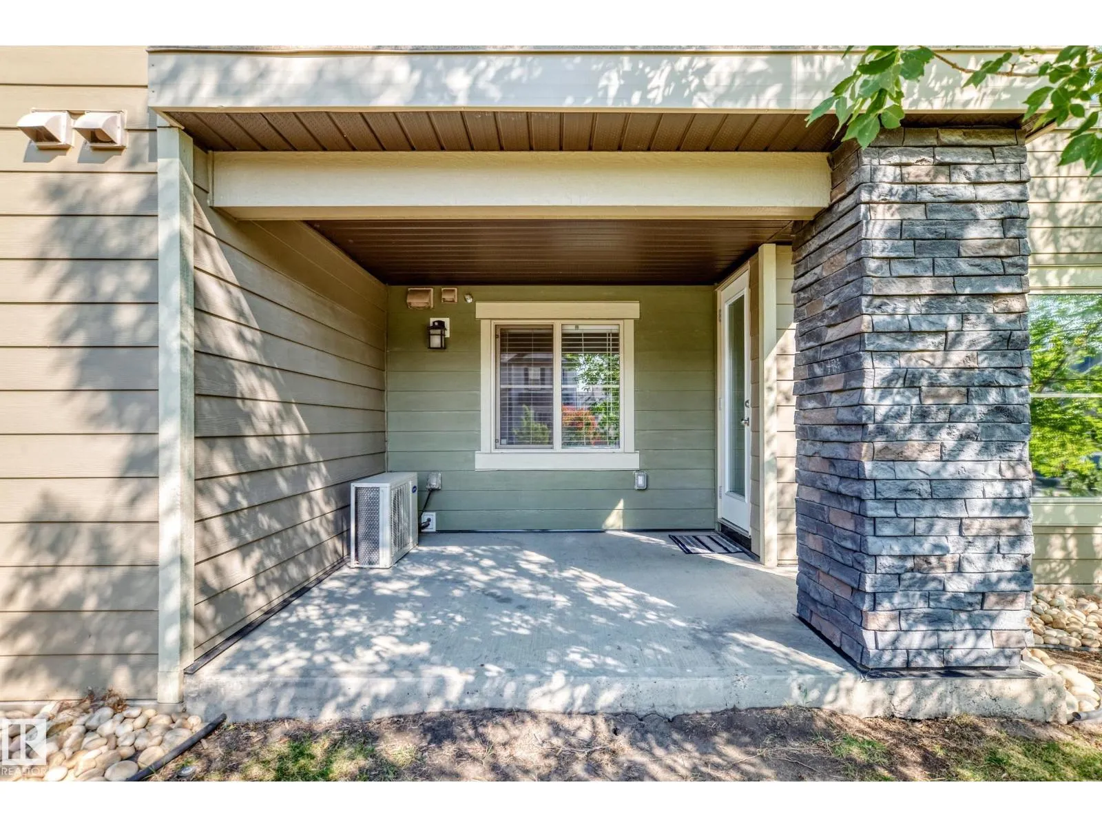 Welcome to McConachie - this is the one! Spacious 763 sq.ft main floor unit with 2 bedrooms, 2 bathrooms, den, 2 parking stalls, in-suite laundry and A/C, all in one stylish package! Enter this well-maintained unit and you are greeted with an open and bright floor plan, new flooring, and window view of mature trees. The kitchen boasts a peninsula style island with s/s appliances. The living and dining areas blend seamlessly together offering easy access to the south-facing covered patio. This unit faces McConachie Dr., providing the added benefit of convenient street parking and direct access to the unit perfect for you and your guests. The primary bedroom has a walk-through closet and private 4-piece ensuite with tiled shower. The second bedroom is also a good size able to fit a queen size bed. Complete the package with the heated underground and surface parking stalls. The complex is pet-friendly and within walking distance of schools, bus stops, & more amenities by vehicle including the Anthony Henday. (id:27476)