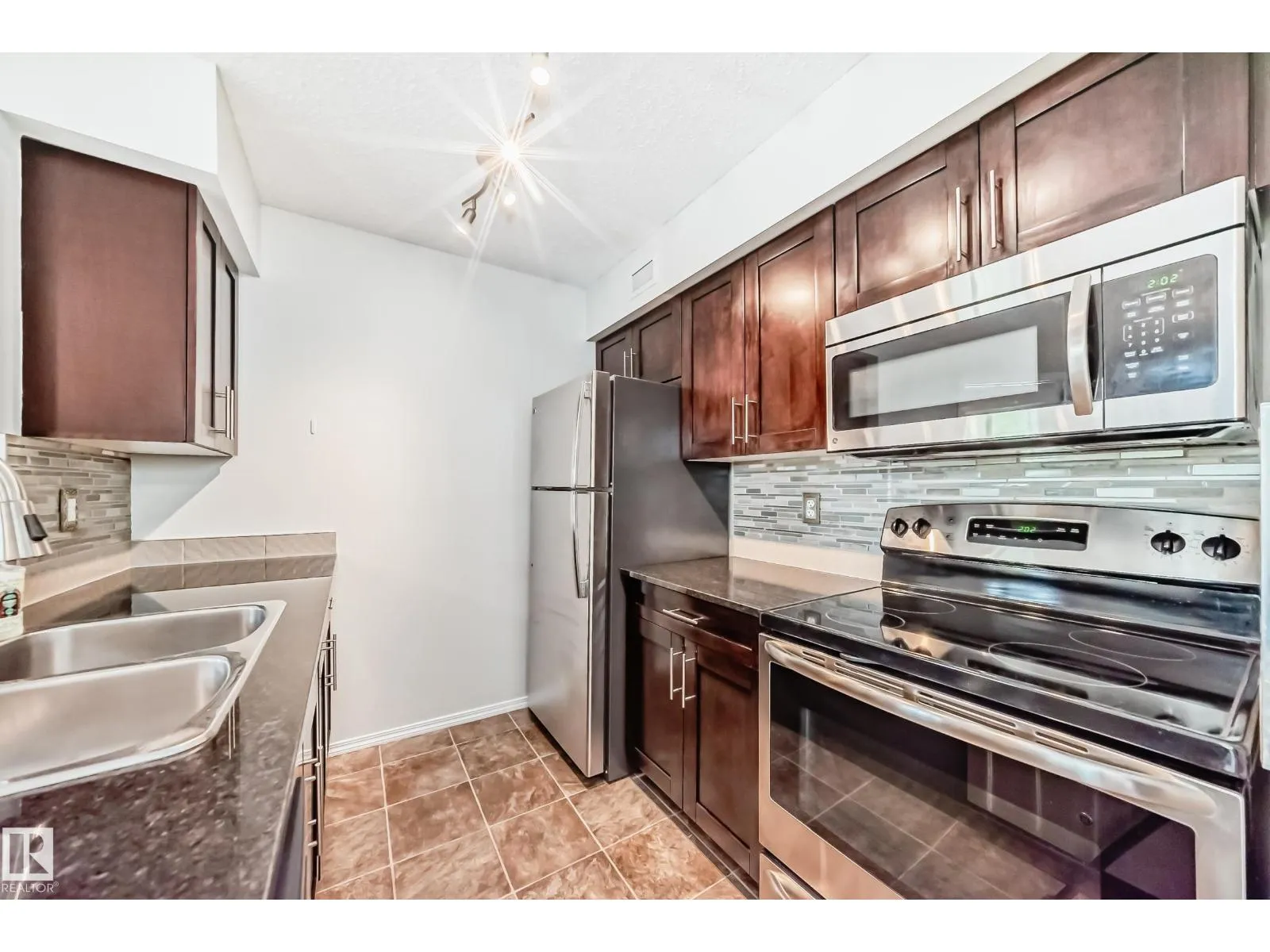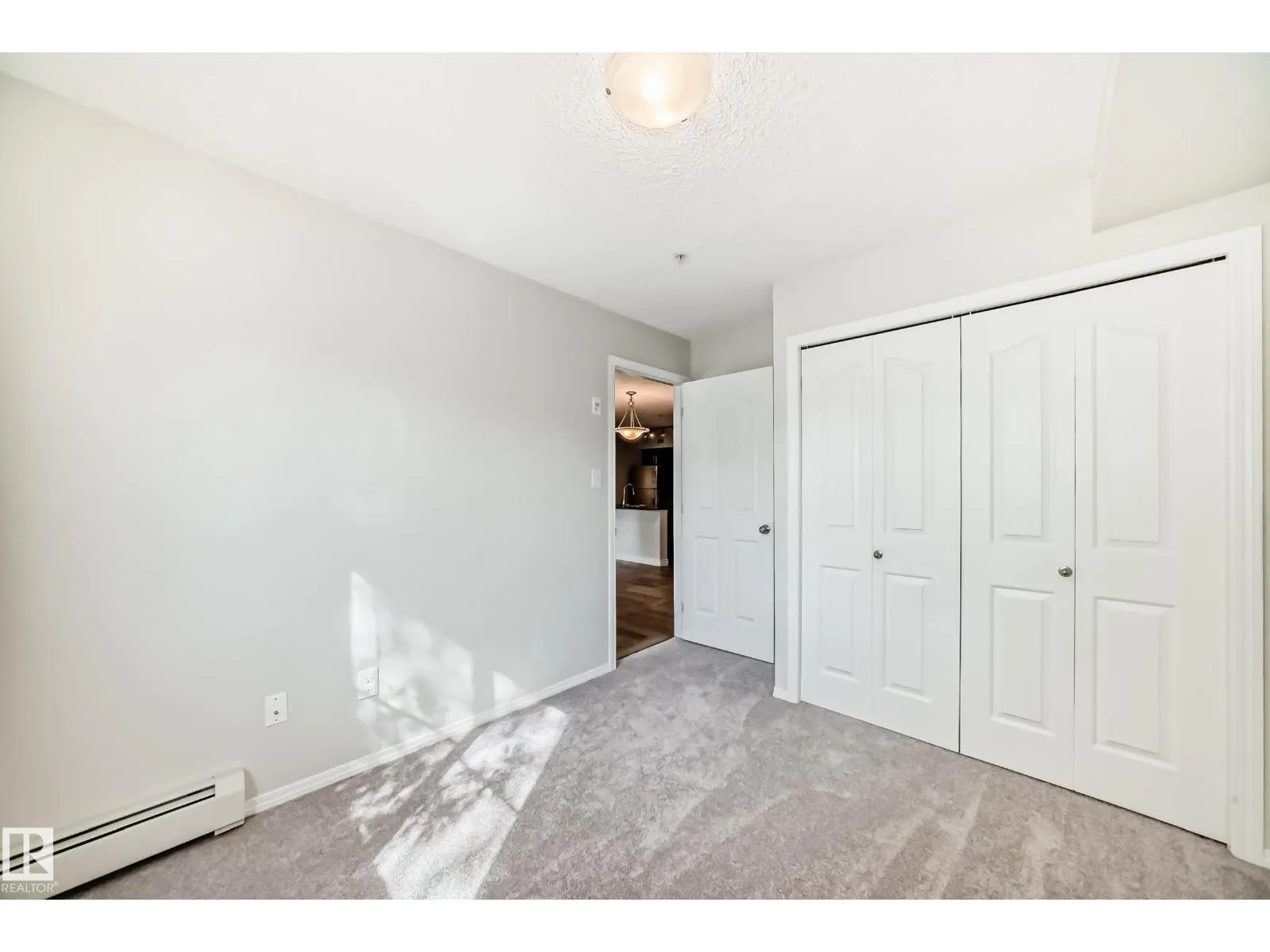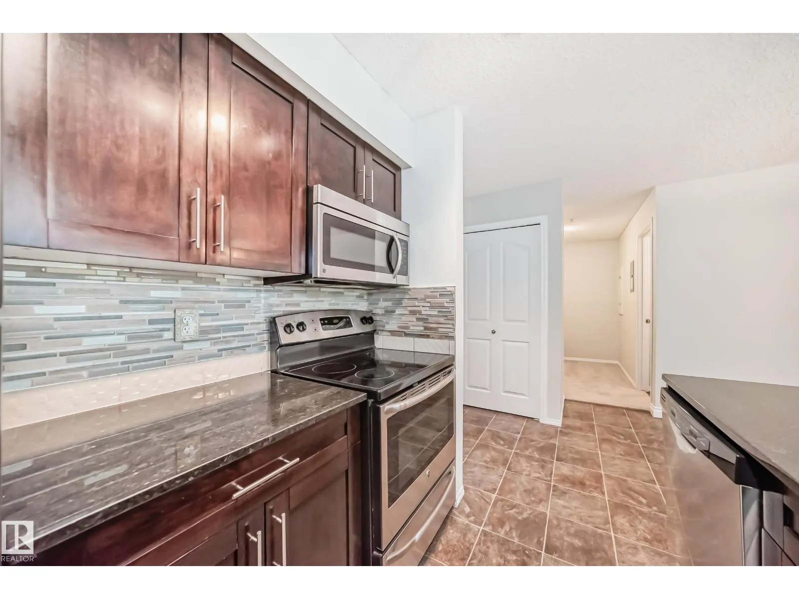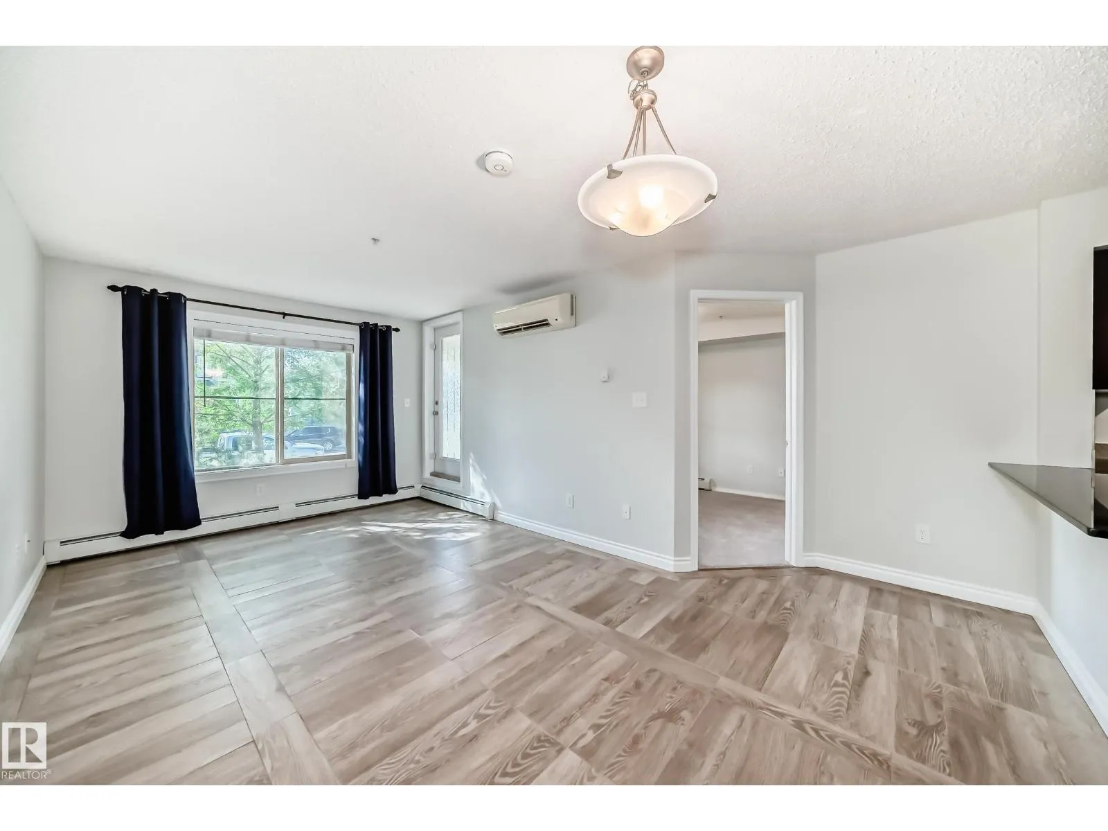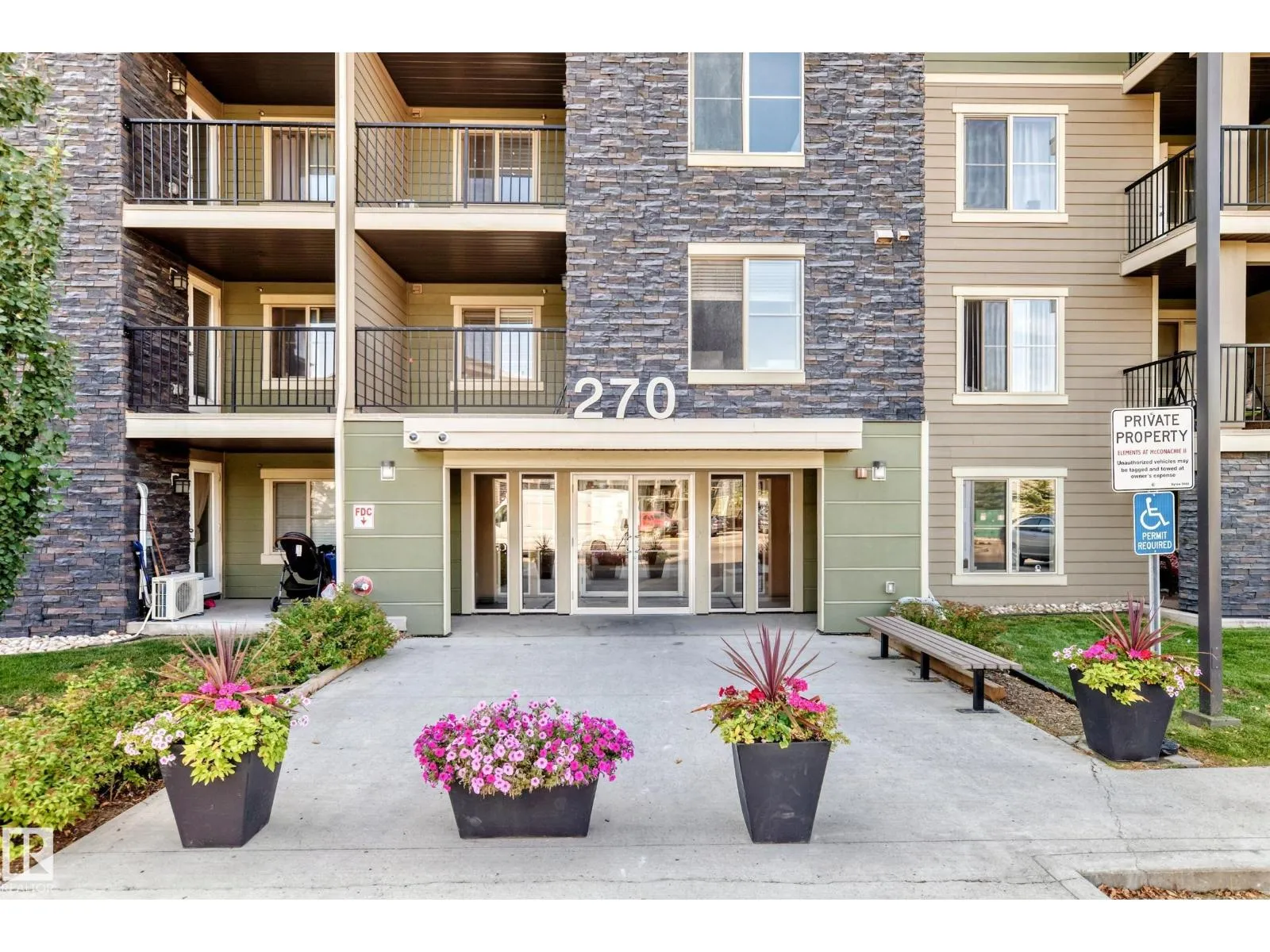 Welcome to McConachie - this is the one! Spacious 763 sq.ft main floor unit with 2 bedrooms, 2 bathrooms, den, 2 parking stalls, in-suite laundry and A/C, all in one stylish package! Enter this well-maintained unit and you are greeted with an open and bright floor plan, new flooring, and window view of mature trees. The kitchen boasts a peninsula style island with s/s appliances. The living and dining areas blend seamlessly together offering easy access to the south-facing covered patio. This unit faces McConachie Dr., providing the added benefit of convenient street parking and direct access to the unit perfect for you and your guests. The primary bedroom has a walk-through closet and private 4-piece ensuite with tiled shower. The second bedroom is also a good size able to fit a queen size bed. Complete the package with the heated underground and surface parking stalls. The complex is pet-friendly and within walking distance of schools, bus stops, & more amenities by vehicle including the Anthony Henday. (id:27476)