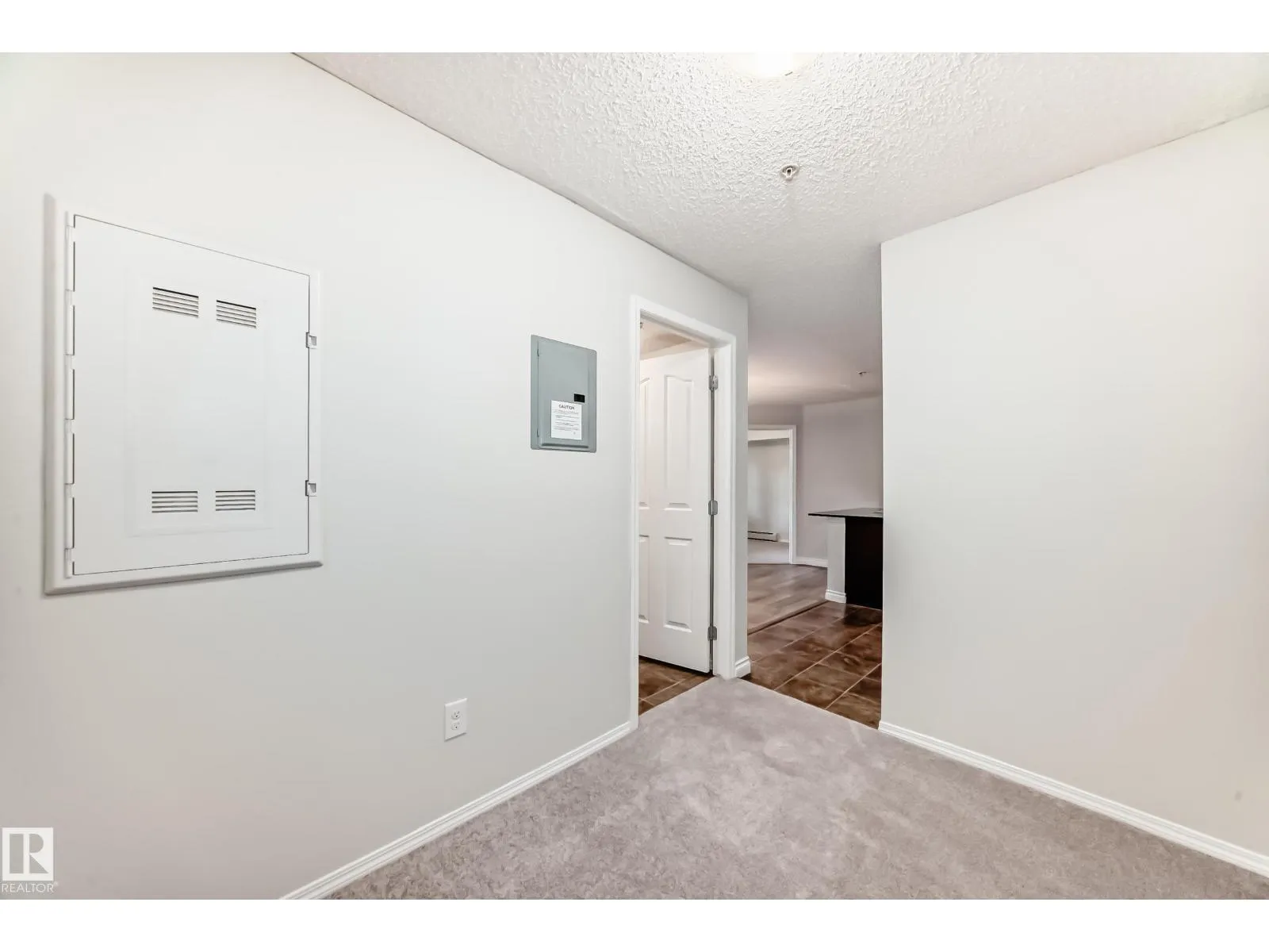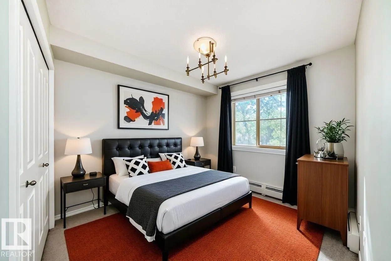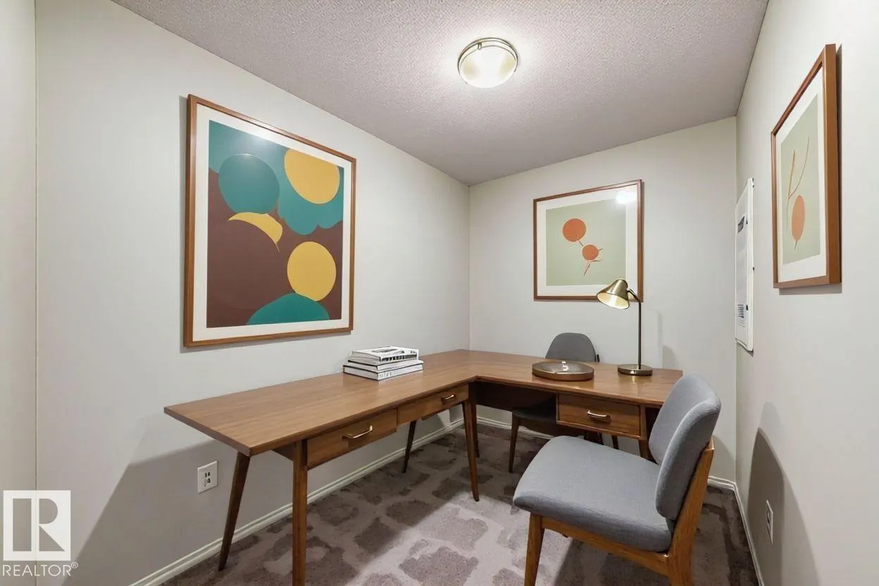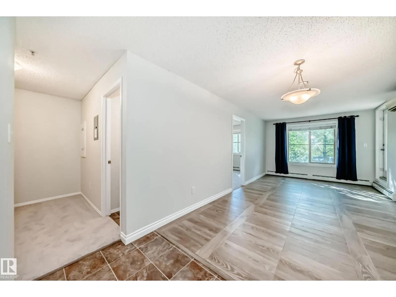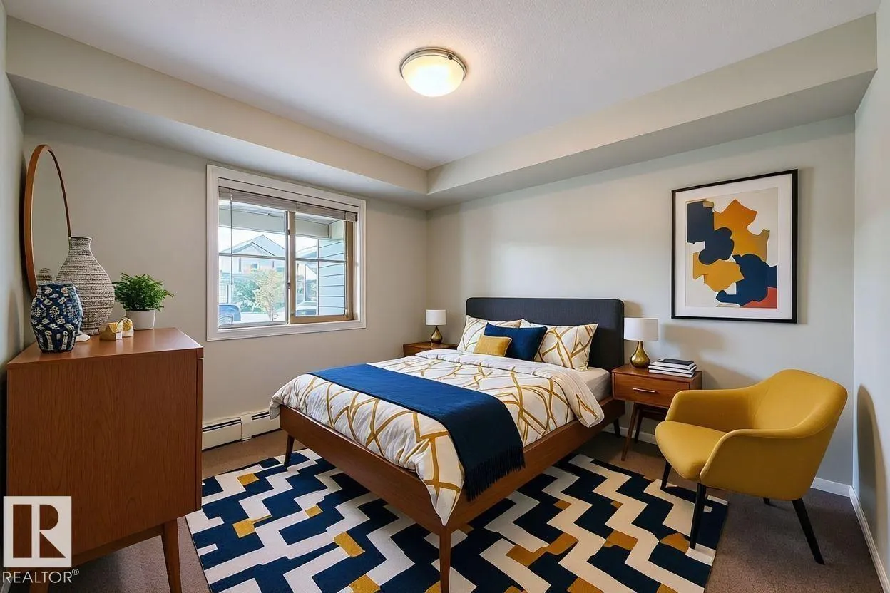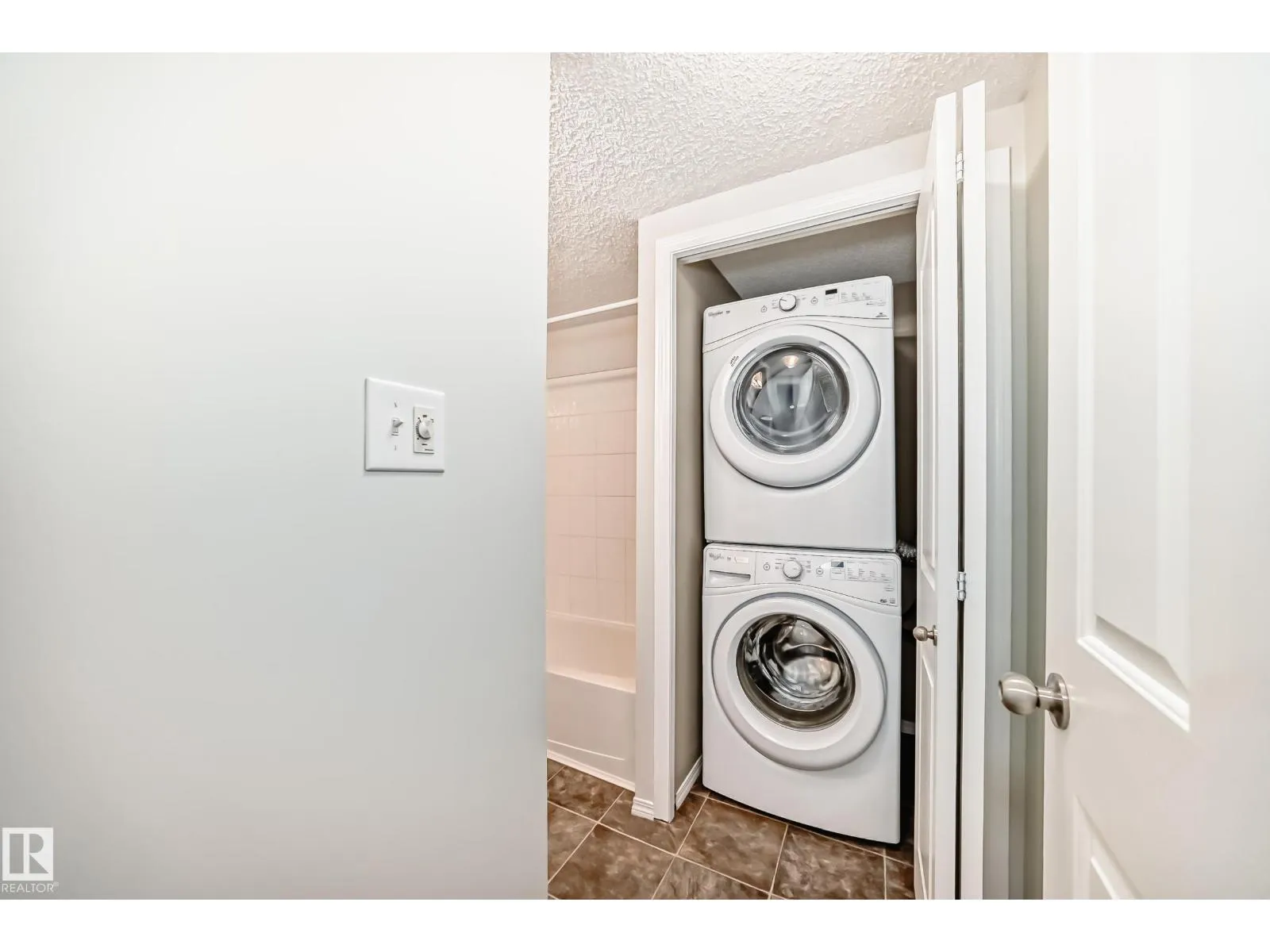 Welcome to McConachie - this is the one! Spacious 763 sq.ft main floor unit with 2 bedrooms, 2 bathrooms, den, 2 parking stalls, in-suite laundry and A/C, all in one stylish package! Enter this well-maintained unit and you are greeted with an open and bright floor plan, new flooring, and window view of mature trees. The kitchen boasts a peninsula style island with s/s appliances. The living and dining areas blend seamlessly together offering easy access to the south-facing covered patio. This unit faces McConachie Dr., providing the added benefit of convenient street parking and direct access to the unit perfect for you and your guests. The primary bedroom has a walk-through closet and private 4-piece ensuite with tiled shower. The second bedroom is also a good size able to fit a queen size bed. Complete the package with the heated underground and surface parking stalls. The complex is pet-friendly and within walking distance of schools, bus stops, & more amenities by vehicle including the Anthony Henday. (id:27476)