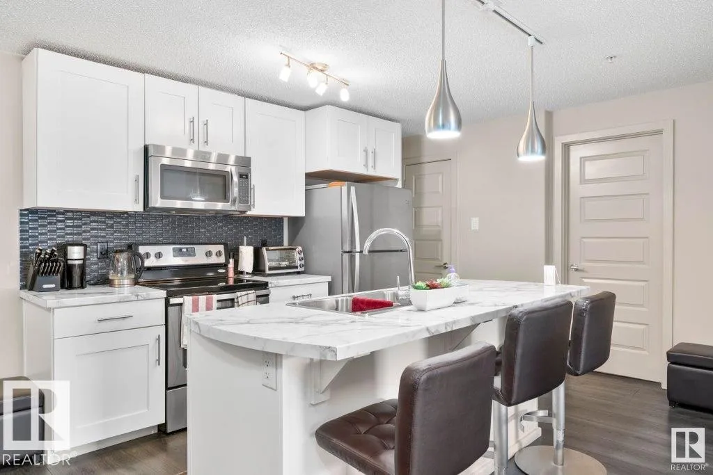 WELCOME to ARA at LAKE SUMMERSIDE! This beautiful and spacious well maintained 2 bedroom 2 bathroom condo comes with several feature such as open-concept layout with an ABUNDANCE of NATURAL LIGHT that connects the living area to the MODERN KITCHEN with stainless steel appliances, QUARTZ countertops, PANTRY & ISLAND complete with breakfast bar. It also features Vinyl plank flooring and large balcony. Bedrooms on both sides of the living room with walk-through closet into the 3 piece en-suite bathroom. Enjoy living here while gaining SUMMERSIDE lake access with an included membership in the Summerside beach club where you can canoe, paddle board, join the community classes and programs, and relax on the beach. Heat and water included in condo fees! The building also offers a gym, common room, and secured entrance for safety, storage and Titled parking stall. Get ready to move in! (id:27476)