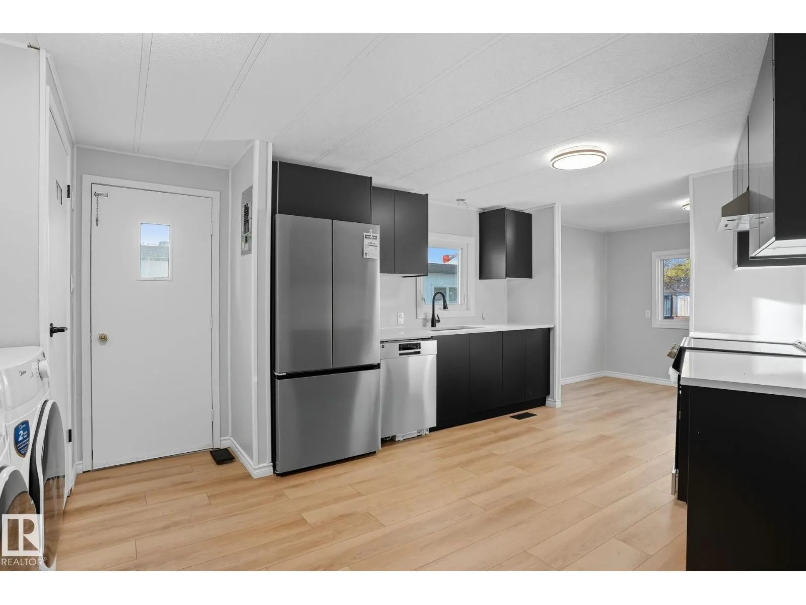 This NEWLY RENOVATED home offers 3 beds and 1.5 bath. All BRAND-NEW appliances, including furnace and hot water tank. New 6.5mm vinyl plank flooring throughout. All walls have been freshly PAINTED. NEW tub, toilets and vanities as well as upgraded pex pipes. Beautiful QUARTZ countertops and EASY CLOSE kitchen cabinets are all new. Newer VINYL WINDOWS all around. The roof was replaced in June 2025. Heat tape was done in 2023. Exterior areas were upgraded with NEW wood siding, trim and paint. The covered CAR PORT had all 4 support posts and cement replaced. Front ATTACHED PORCH has a 4'x8' storage area with a locking door. The home was levelled in June 2025. Freshly PAVED PARKING pad. Near by bus stop, store, and parks. (id:27476)