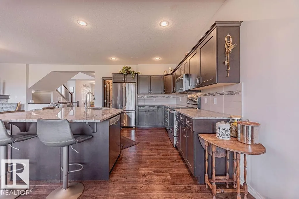 Welcome to this Montorio built immaculate home that offers comfort, style, and endless potential. From the moment you enter the huge, inviting foyer, youâre drawn into the open-concept main floor featuring a cozy gas fireplace and a beautiful kitchen with stainless steel appliances and elegant granite countertops. Upstairs, enjoy a spacious master bedroom suite with a 5-piece ensuite, another two generously sized additional bedrooms with a 4-piece bathroom in between, and a large, bright bonus room â perfect for family living. Step outside to an amazing backyard with a low-maintenance vinyl deck that leads down to a charming brick patio, ideal for relaxing or entertaining. The undeveloped basement is a blank canvas waiting for your personal touch, and the tandem triple-car garage provides ample space for vehicles, storage, or hobbies. (id:27476)