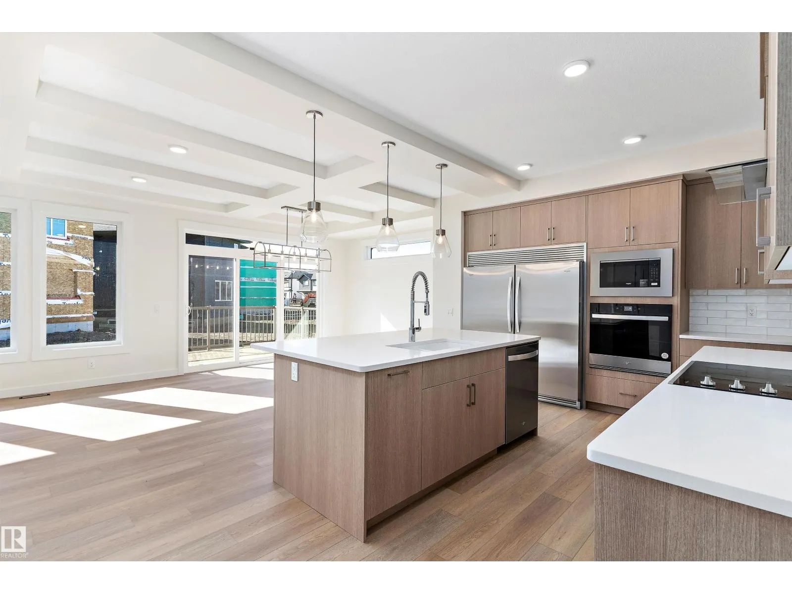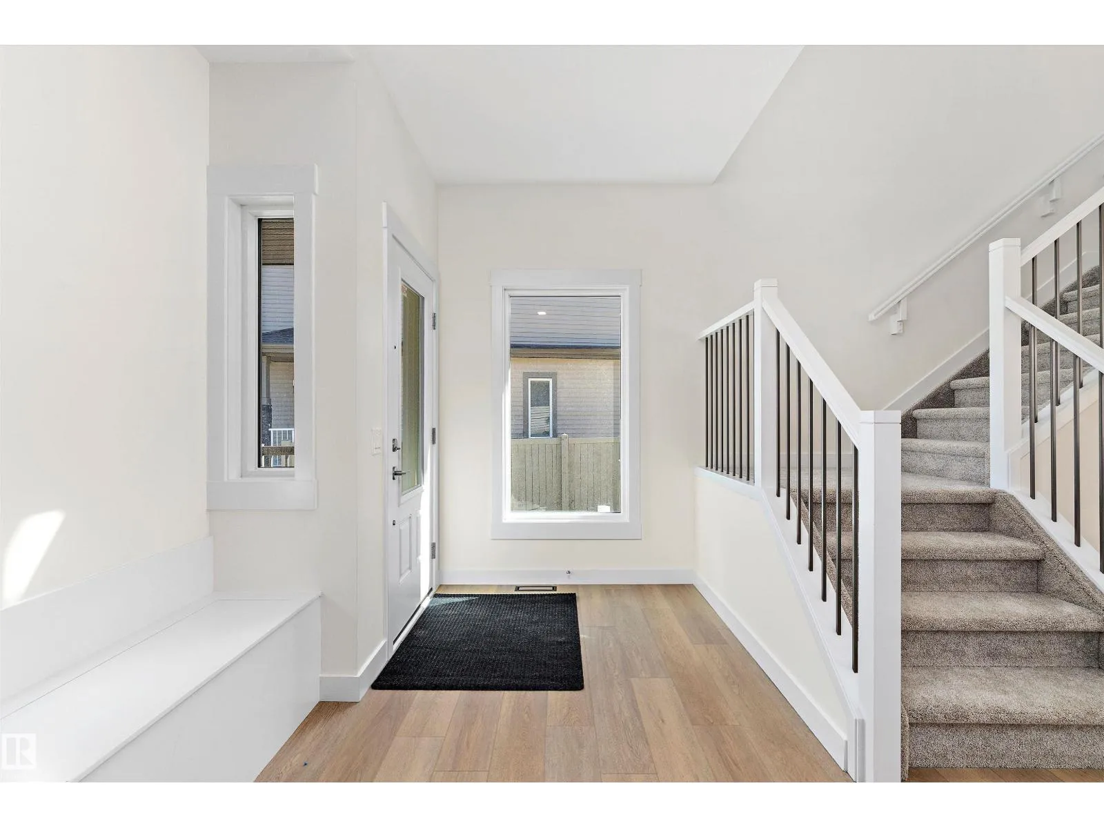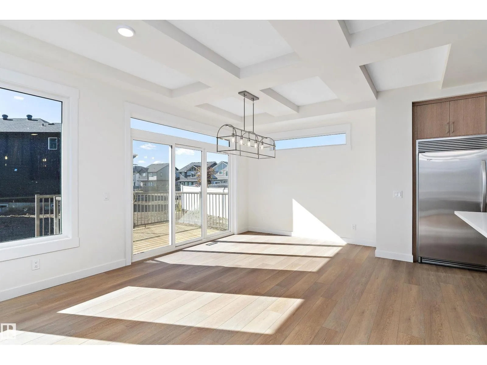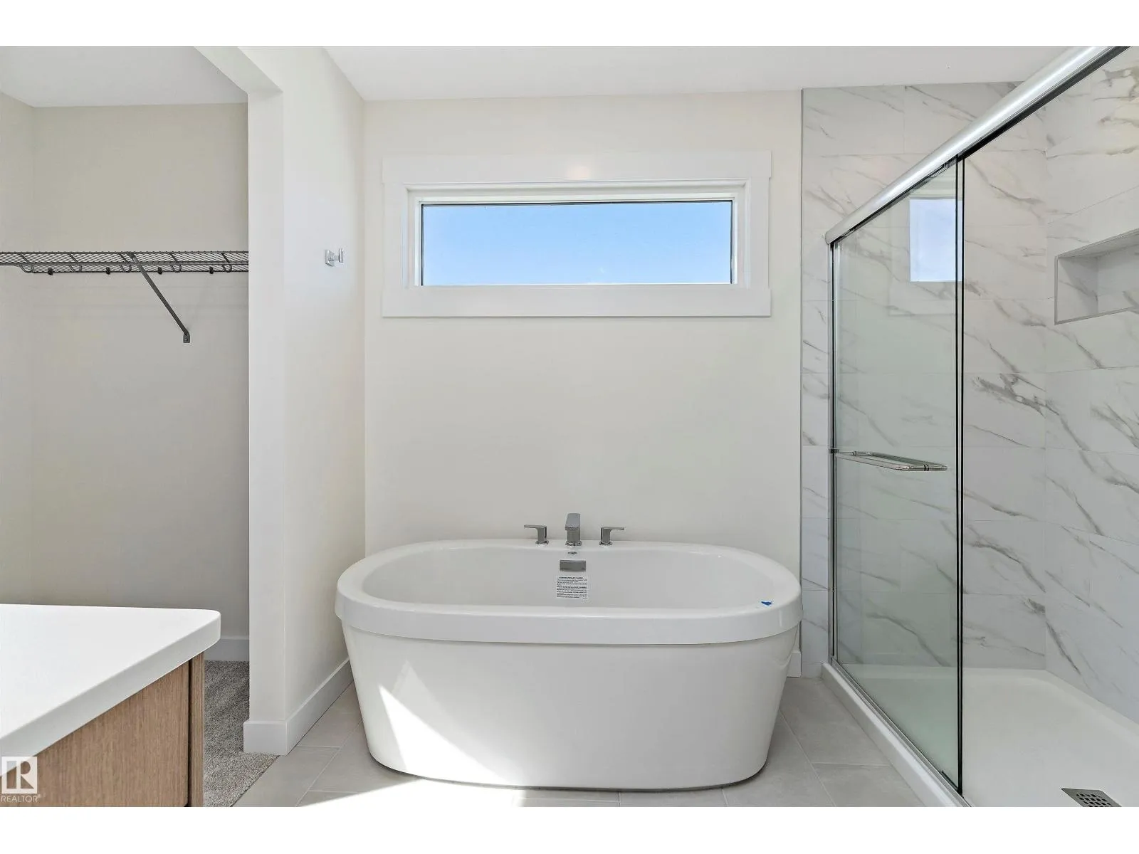 Discover your dream home in Crystallina! This brand new 2,164 sq ft two-storey Tofino model home built by City Homes, is loaded with over $40,000 in upgrades, situated in a pie shape lot, and ready for immediate possession! The main floor impresses with its open design, upgraded kitchen and appliance package, dining area that steps out to the included rear deck, and a spacious living room highlighted by a striking 60â electric fireplace. Upstairs offers a bright central bonus room with oversized slider window, a private primary suite with walk-in closet and ensuite with freestanding tub, plus two spacious additional bedrooms. Extras youâll love: elegant spindle railing, enlarged garage for added parking space, separate side entrance with suite potential, and basement rough-ins for laundry and sink. Situated in a family-friendly community close to schools, shopping, parks, and the Henday â this home combines elevated living with sophisticated style. Donât miss this move-in ready opportunity! (id:27476)