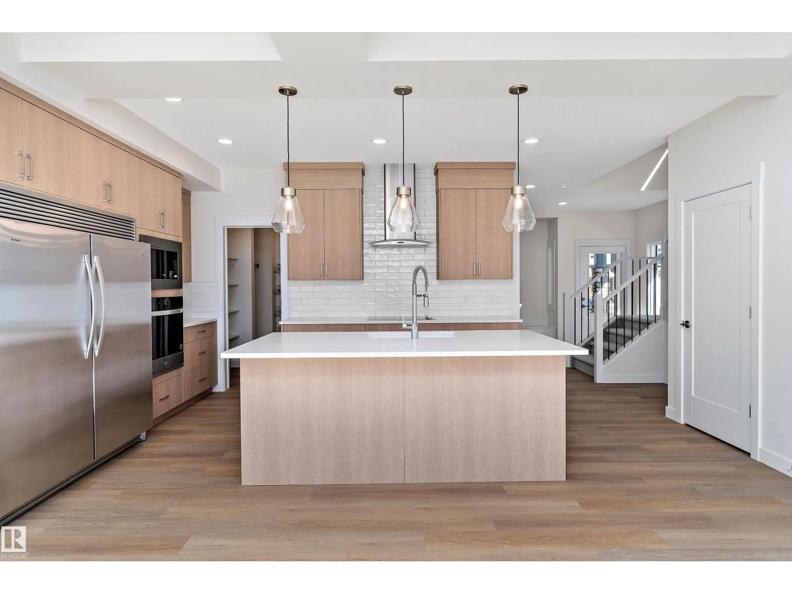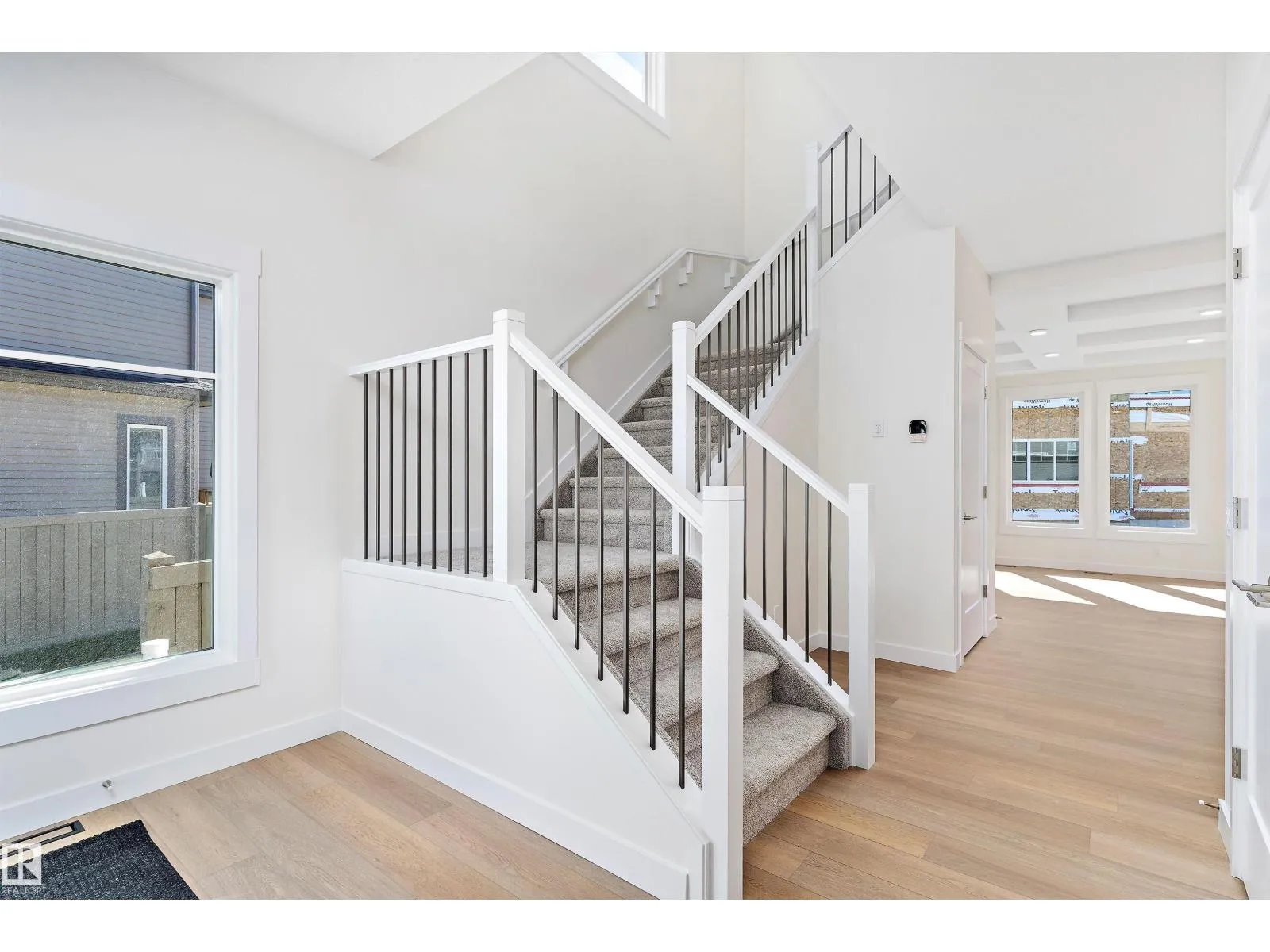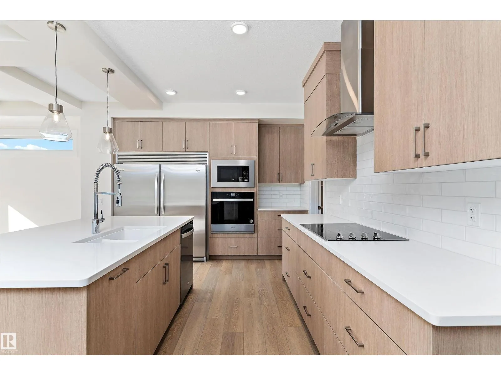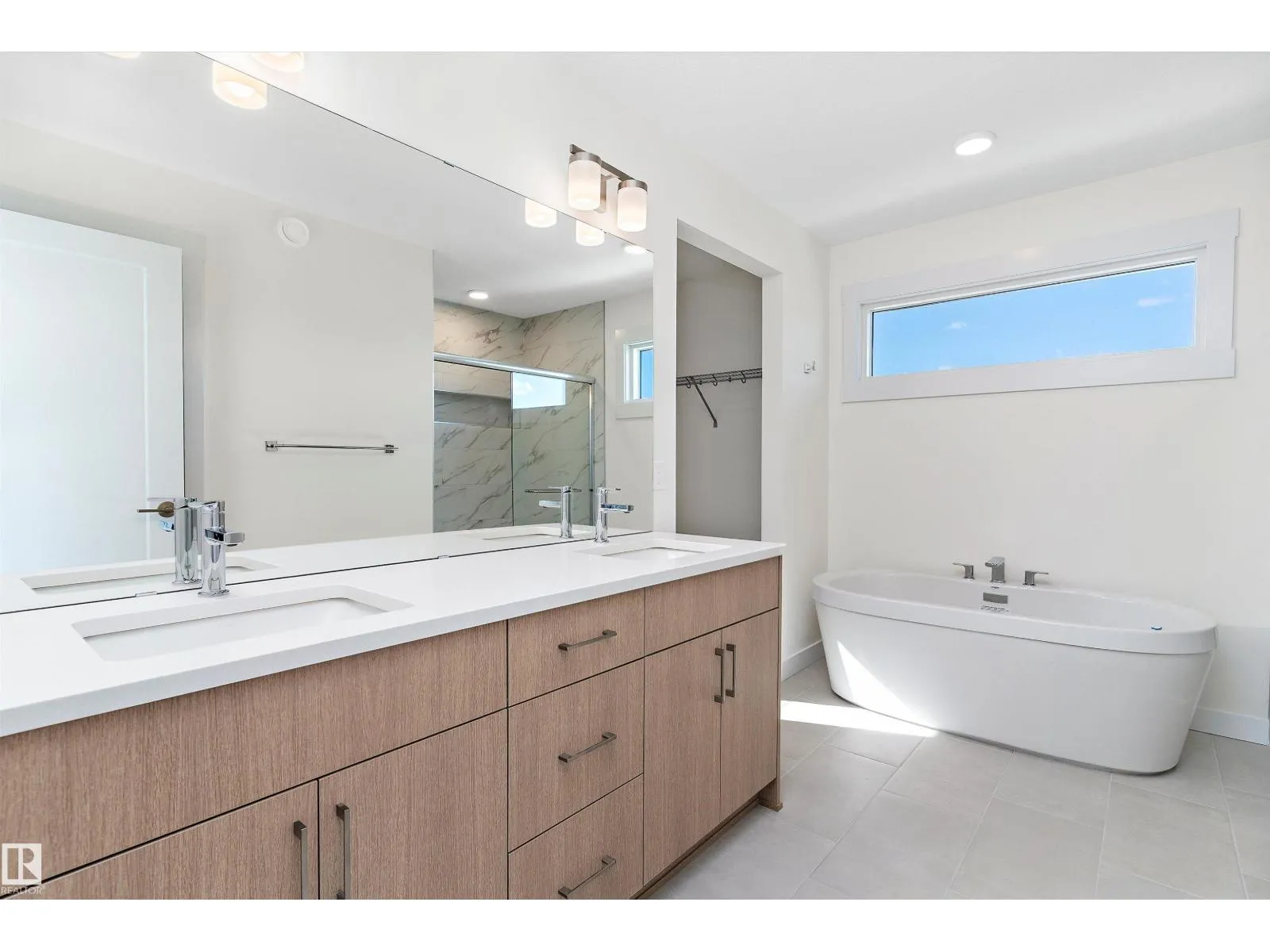 Discover your dream home in Crystallina! This brand new 2,164 sq ft two-storey Tofino model home built by City Homes, is loaded with over $40,000 in upgrades, situated in a pie shape lot, and ready for immediate possession! The main floor impresses with its open design, upgraded kitchen and appliance package, dining area that steps out to the included rear deck, and a spacious living room highlighted by a striking 60â electric fireplace. Upstairs offers a bright central bonus room with oversized slider window, a private primary suite with walk-in closet and ensuite with freestanding tub, plus two spacious additional bedrooms. Extras youâll love: elegant spindle railing, enlarged garage for added parking space, separate side entrance with suite potential, and basement rough-ins for laundry and sink. Situated in a family-friendly community close to schools, shopping, parks, and the Henday â this home combines elevated living with sophisticated style. Donât miss this move-in ready opportunity! (id:27476)