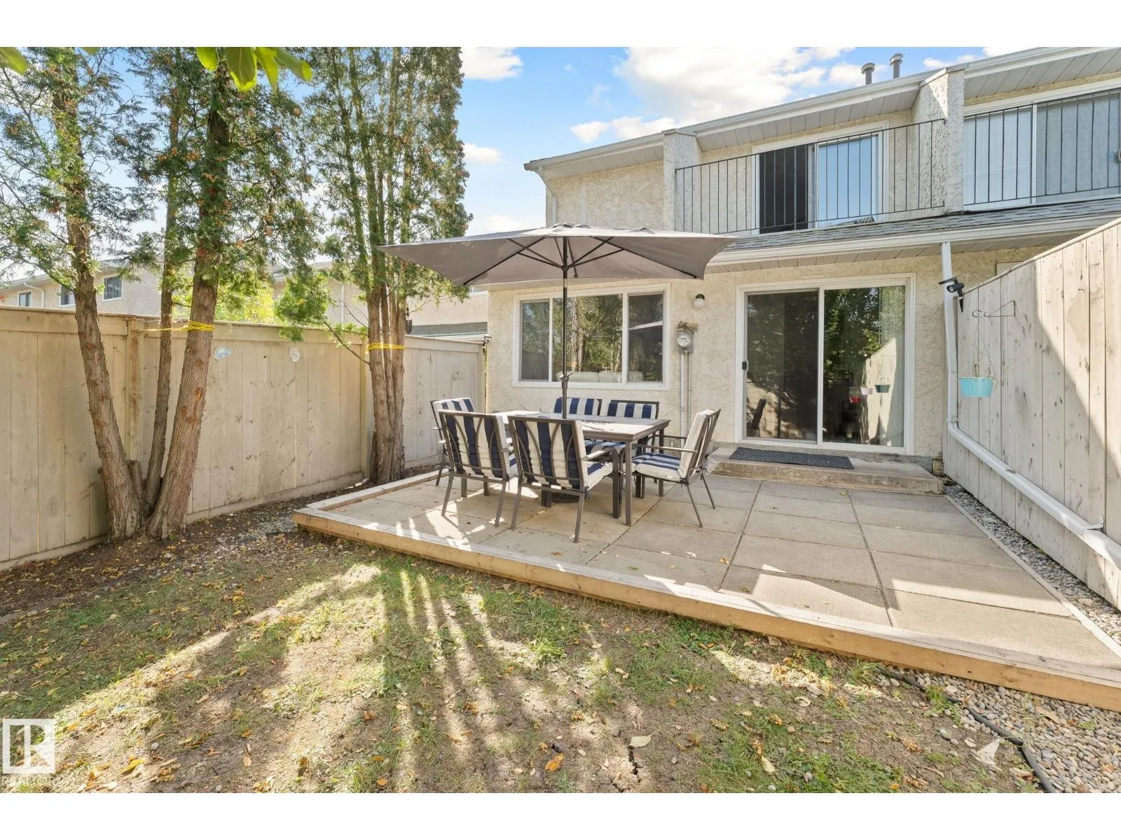 Welcome to this beautiful and well cared for 2 storey townhouse END UNIT W/SINGLE ATTACHED GARAGE! The main floor features the living room, kitchen, dinette leading to the backyard, and a 2 pc bathroom. The Upper level features the oversized primary bedroom with a balcony that overlooks the backyard, a second spacious bedroom, and a full 4 piece bathroom. In the fully fenced private backyard you'll find the recently constructed stone patio, an apple tree, and a convenient gate. The unfinished basement awaits your touch, and it's big enough to add more living space for a rec room or an office den. A convenient single attached garage completes this home. Recent upgrades include: new paint, new carpet flooring on the upper level, and the stone patio. Callingwood Place is conveniently located, just minutes to access Whitemud and Anthony Henday. WEM is a 9 minute drive away. Close to schools, shopping and all amenities. (id:27476)
