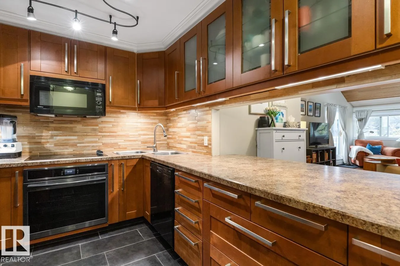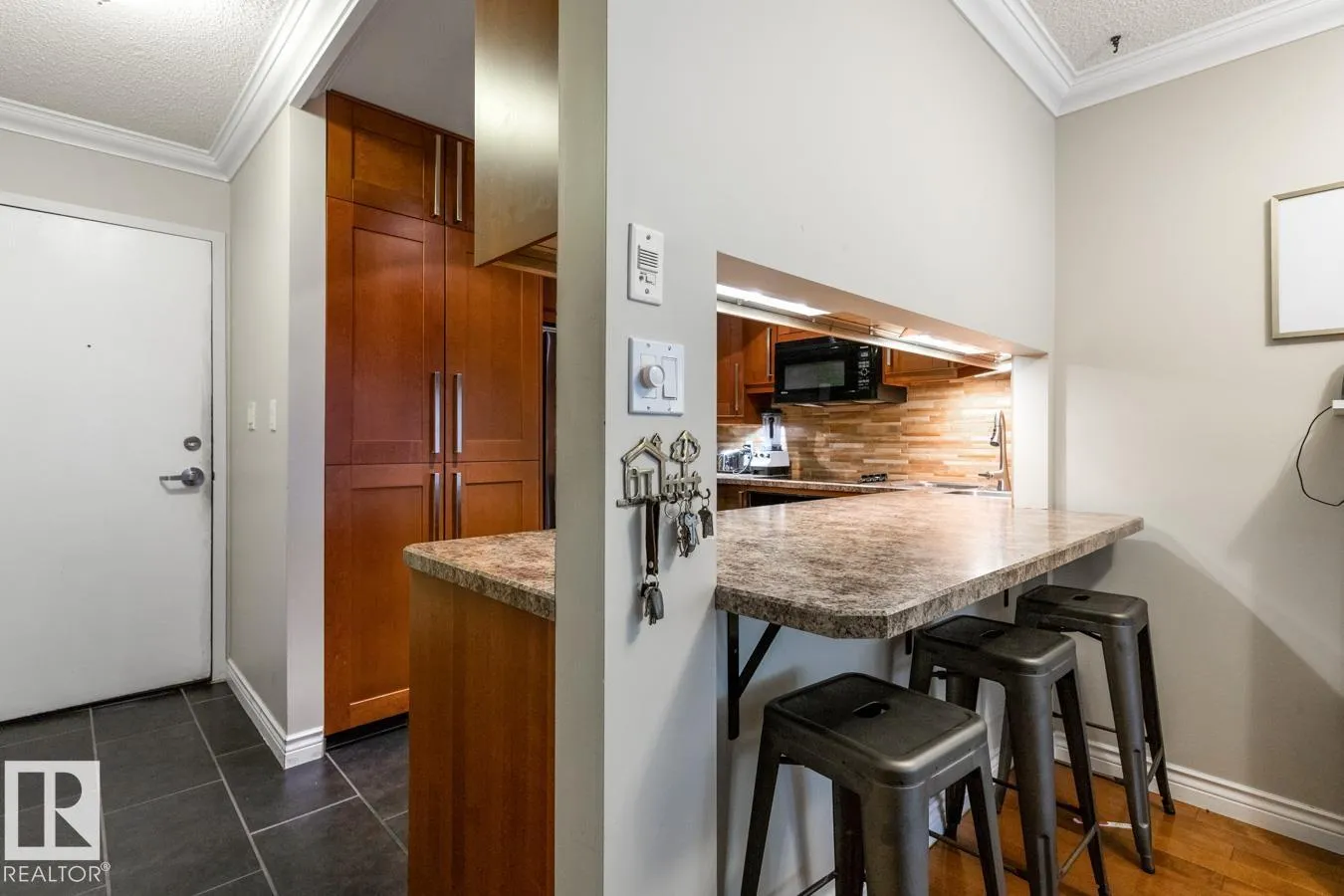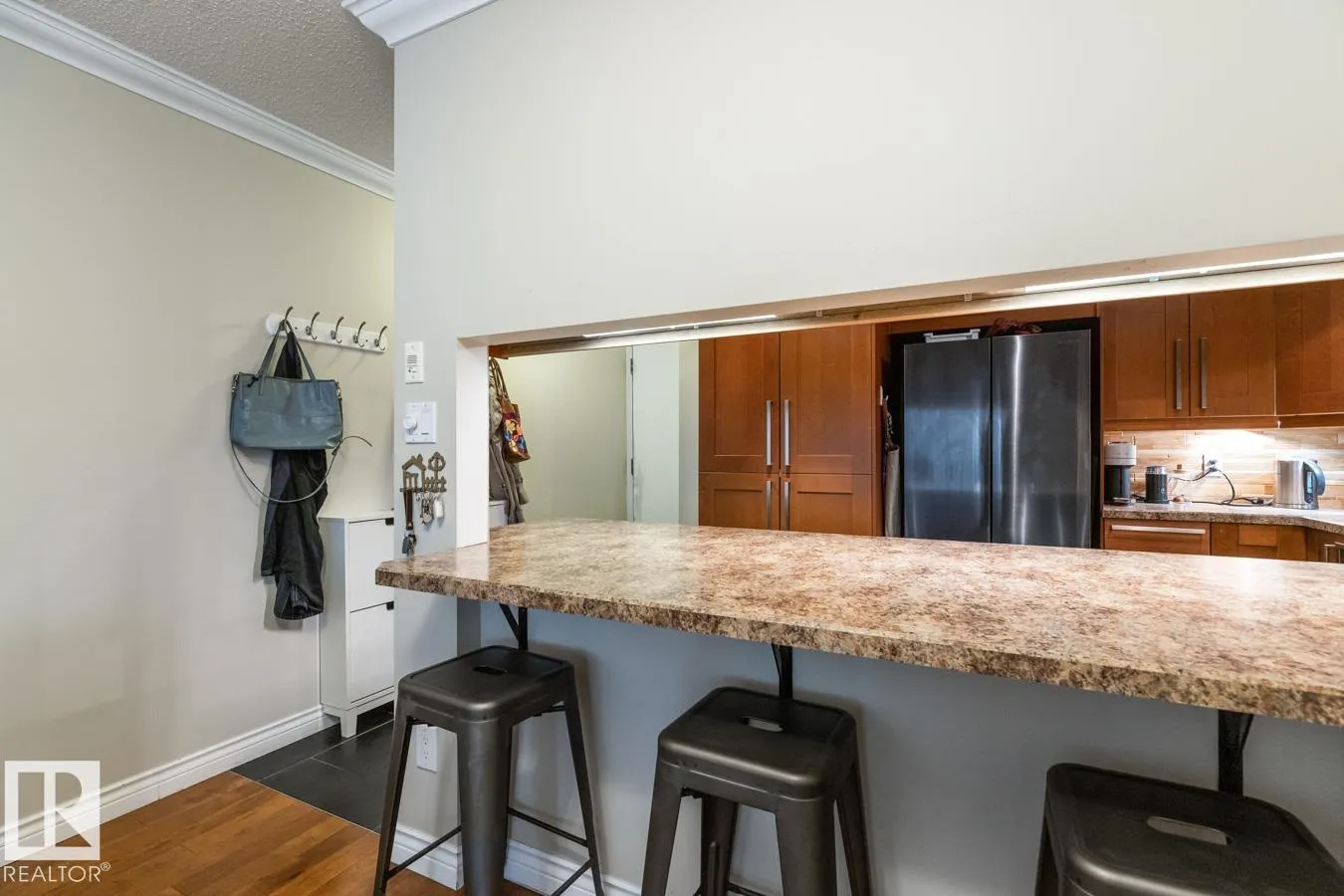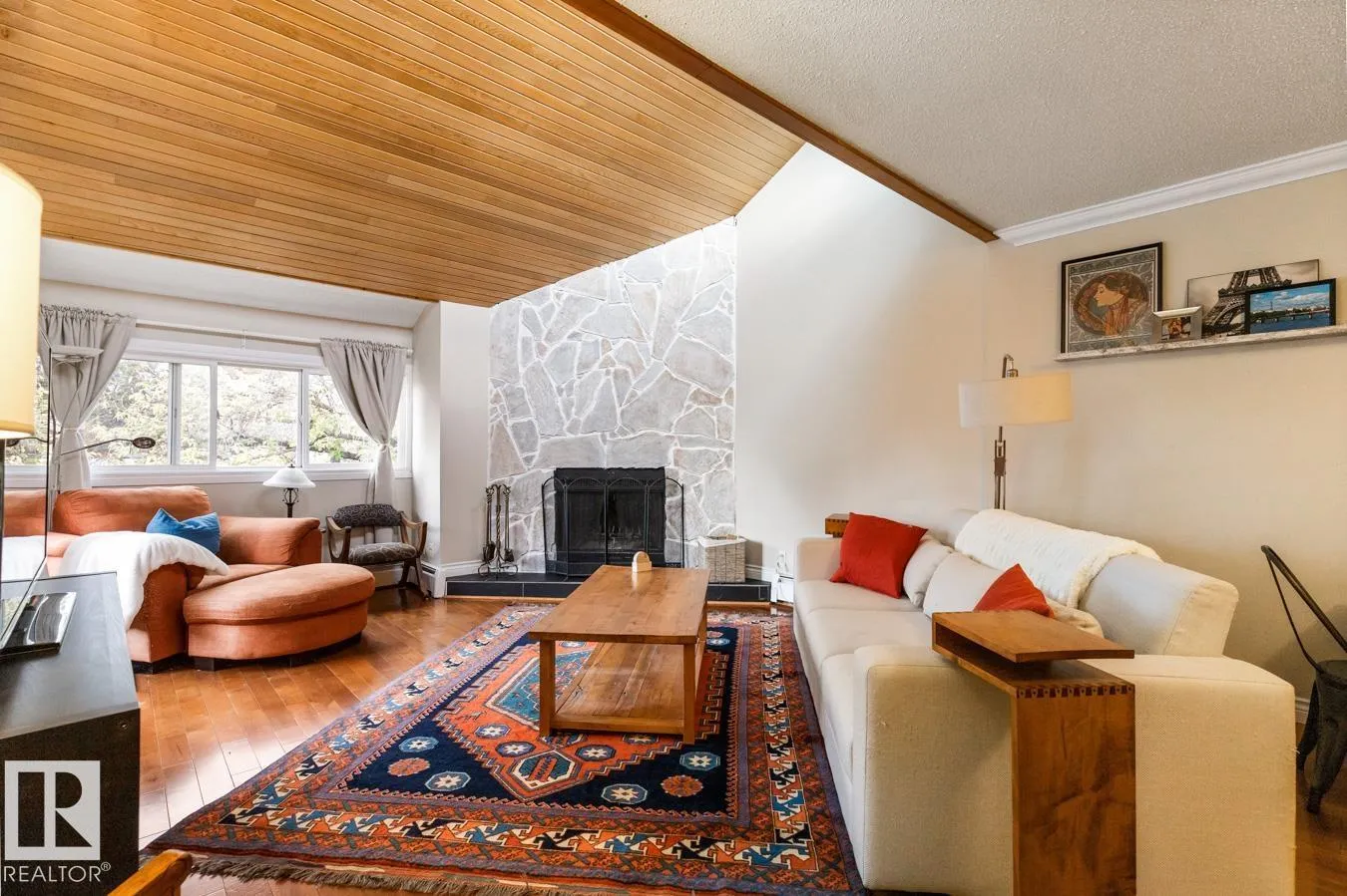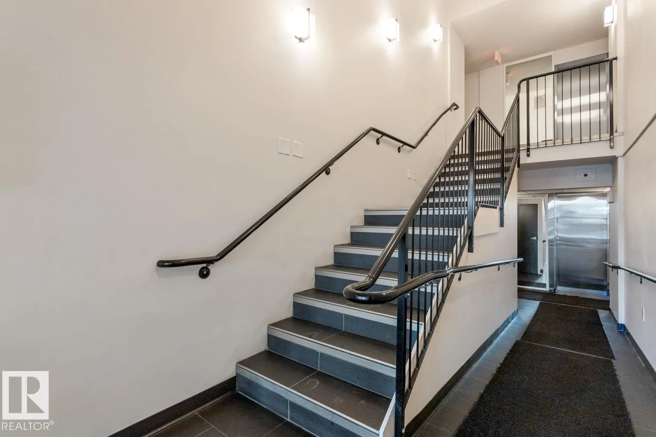 Welcome to this exceptional unit located just west of the downtown core, nestled in an urban area characterized by tree-lined streets, dedicated bike paths, and convenient access to cafes and shops. This inviting condominium features a modernized kitchen with new appliances, seamlessly connected to a spacious living area highlighted by soaring vaulted ceilings and a striking stone fireplace. Boasting two comfortable bedrooms, an updated four-piece bathroom, and in-suite laundry, this unit is ideal for contemporary living. Additional benefits include an oversized storage locker on the same floor and a west-facing balcony perfect for enjoying quiet summer evenings, as well as a heated underground garage for winter convenience. With easy access to the University of Alberta and Grant MacEwan University, along with efficient transit and roadway options, this home meets all your lifestyle needs. (id:27476)