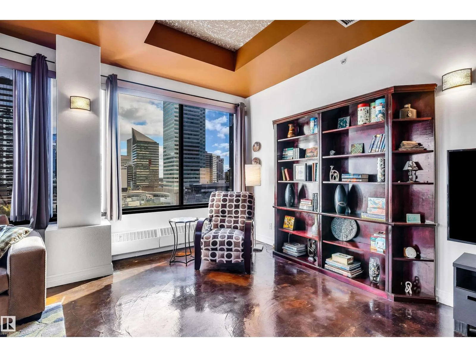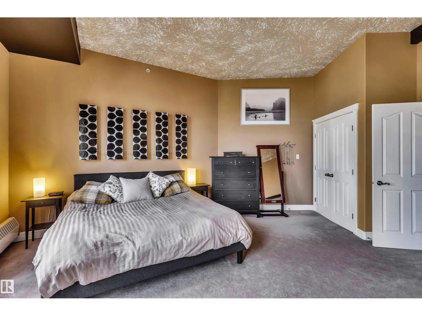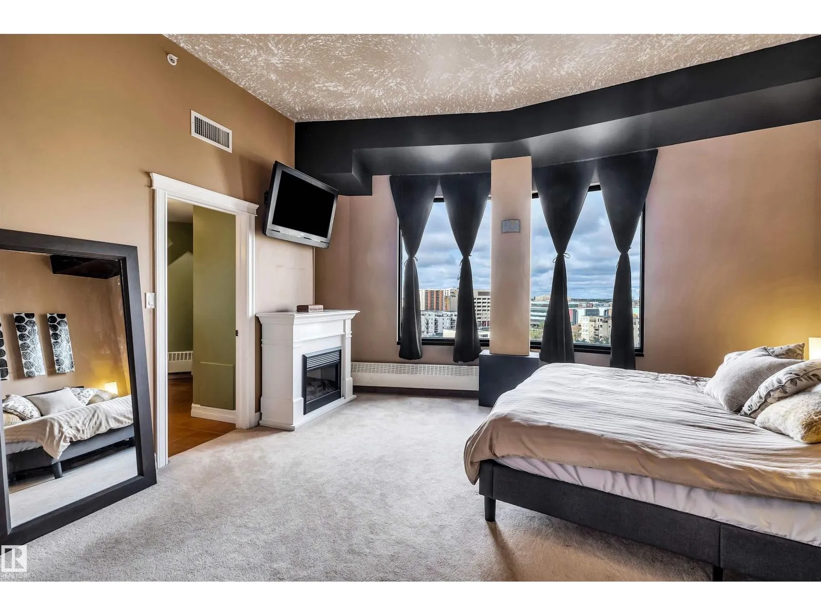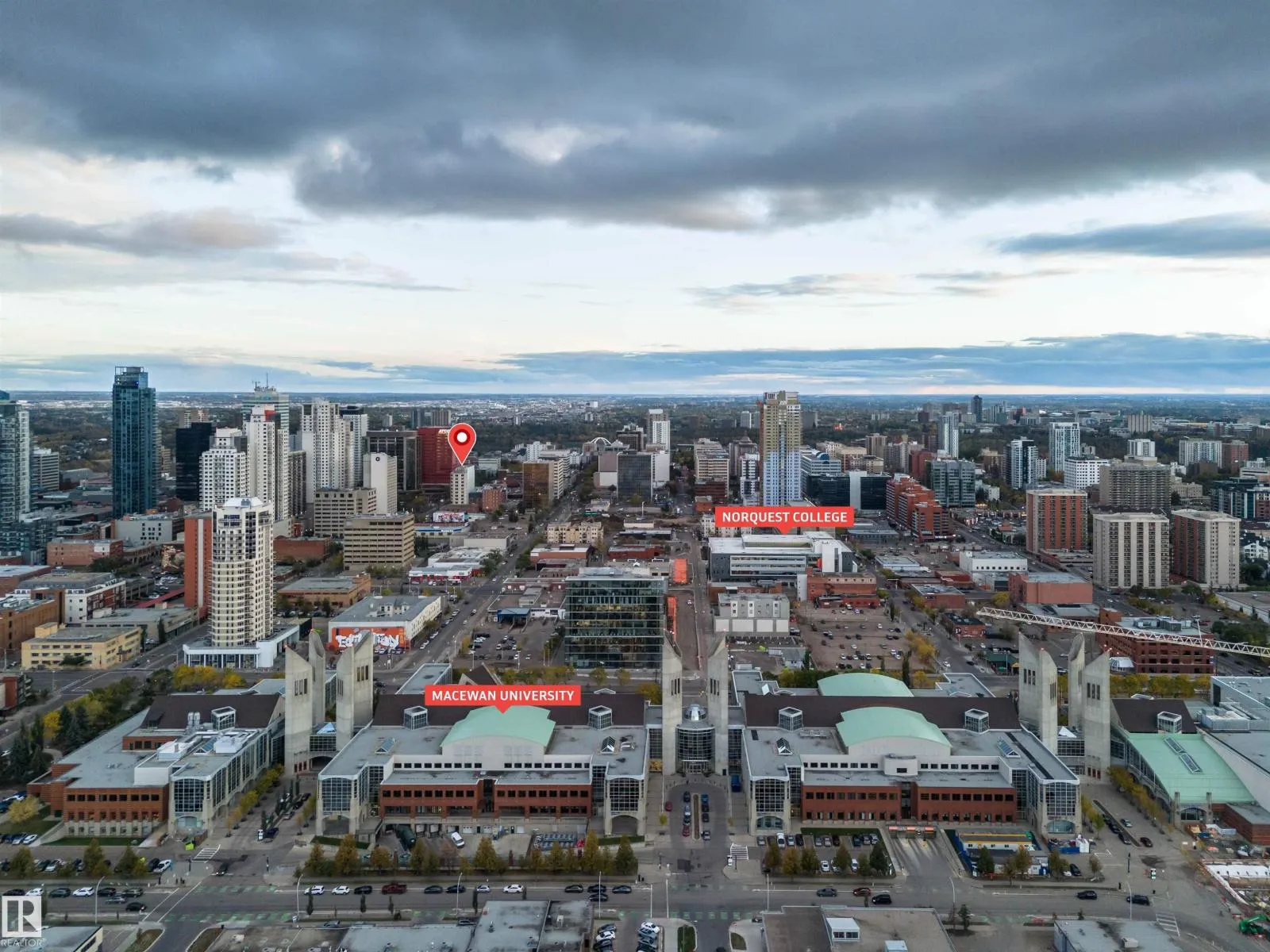 OPEN CONCEPT LOFT! 2 BEDROOMS + 2 BATHS. This 1,539 sq ft, 8th floor unit features an open layout with polished concrete & ceramic tile flooring, soaring 10 ft ceilings, and breathtaking panoramic views of downtown Edmonton. The spacious living room flows into an impressive kitchen, complete with a center island that seats two, an abundance of cabinets and ample counter space, all adjacent to the dining area - perfect for entertaining or intimate dinners. The primary bedroom includes a 4-pce ensuite bath & walk-in closet. The 2nd bedroom with a Murphy Bed can double as an office if required. The unit is finished with a second 3-pce bathroom and in-suite laundry for added convenience. 1 stall in parkade. Located across from a park currently being expanded and revitalized by the City, providing a beautiful outdoor space for relaxation. Enjoy great access to public transportation, allowing you to easily navigate the city, as well as proximity to excellent post-secondary schools & much more! ONLY $175,000 (id:27476)