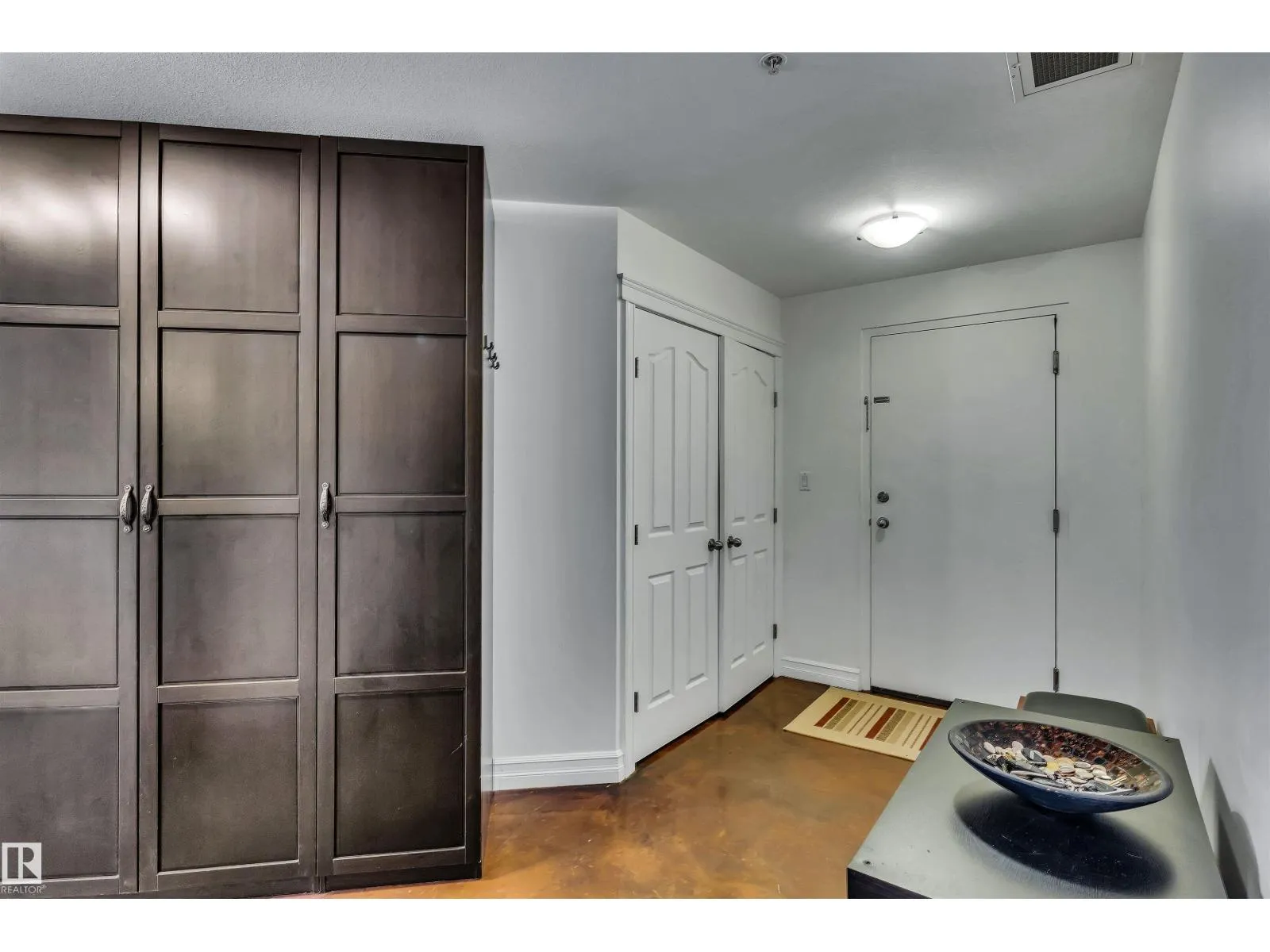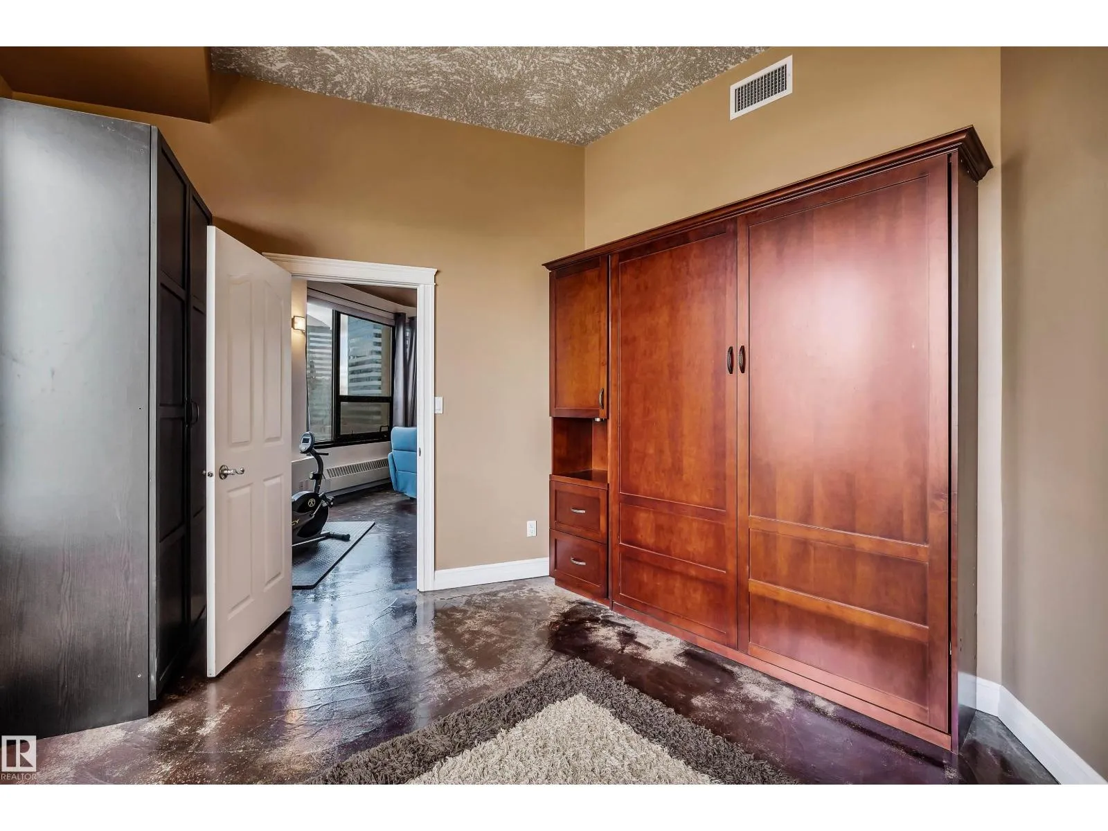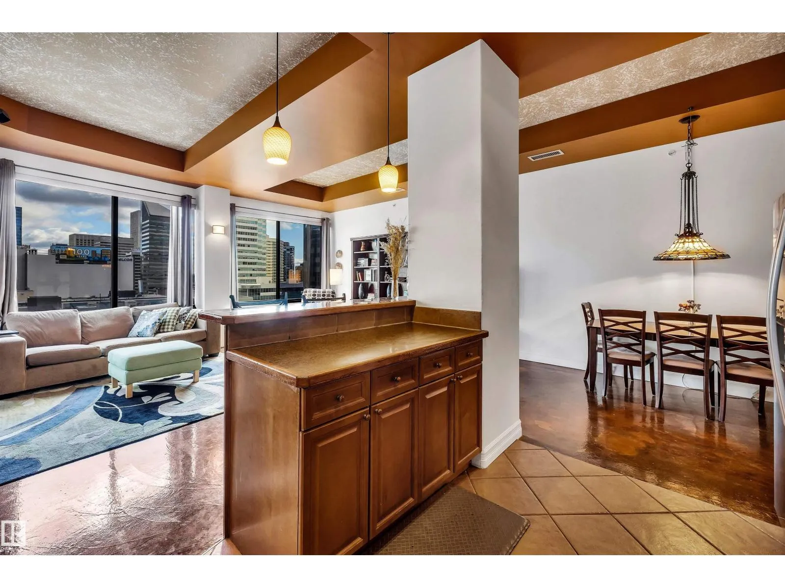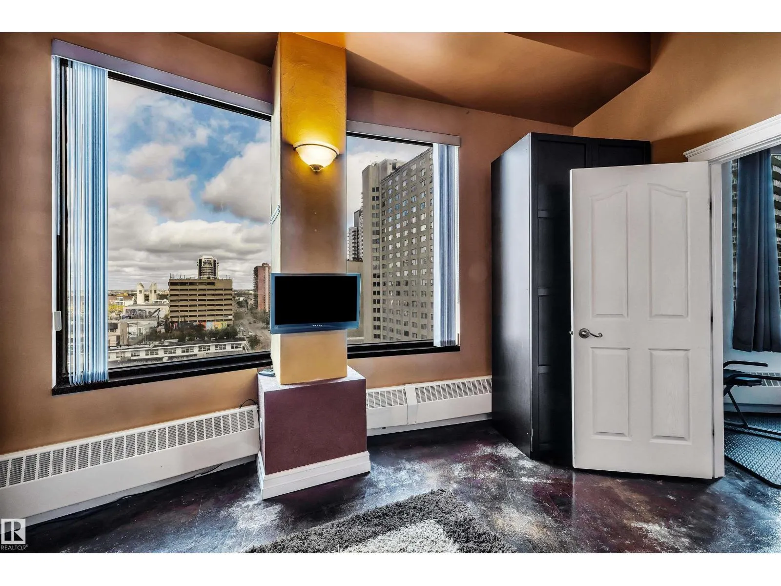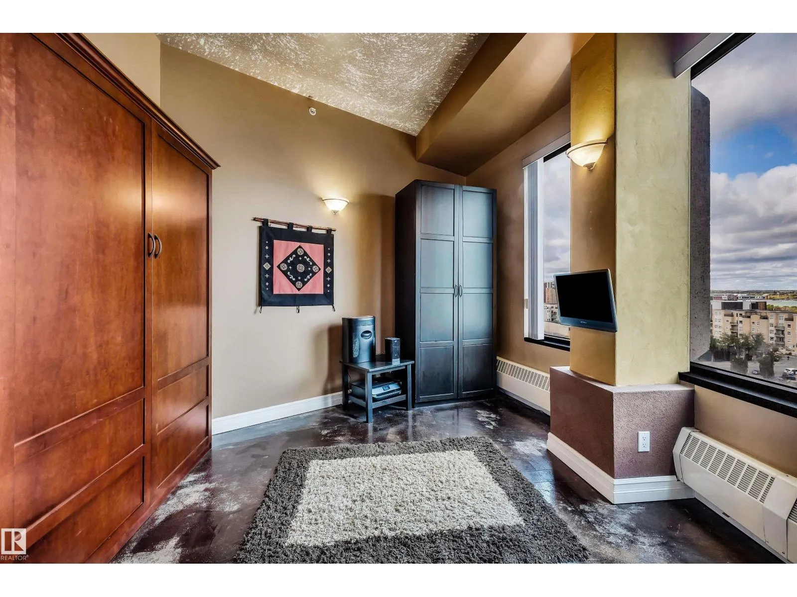 OPEN CONCEPT LOFT! 2 BEDROOMS + 2 BATHS. This 1,539 sq ft, 8th floor unit features an open layout with polished concrete & ceramic tile flooring, soaring 10 ft ceilings, and breathtaking panoramic views of downtown Edmonton. The spacious living room flows into an impressive kitchen, complete with a center island that seats two, an abundance of cabinets and ample counter space, all adjacent to the dining area - perfect for entertaining or intimate dinners. The primary bedroom includes a 4-pce ensuite bath & walk-in closet. The 2nd bedroom with a Murphy Bed can double as an office if required. The unit is finished with a second 3-pce bathroom and in-suite laundry for added convenience. 1 stall in parkade. Located across from a park currently being expanded and revitalized by the City, providing a beautiful outdoor space for relaxation. Enjoy great access to public transportation, allowing you to easily navigate the city, as well as proximity to excellent post-secondary schools & much more! ONLY $175,000 (id:27476)