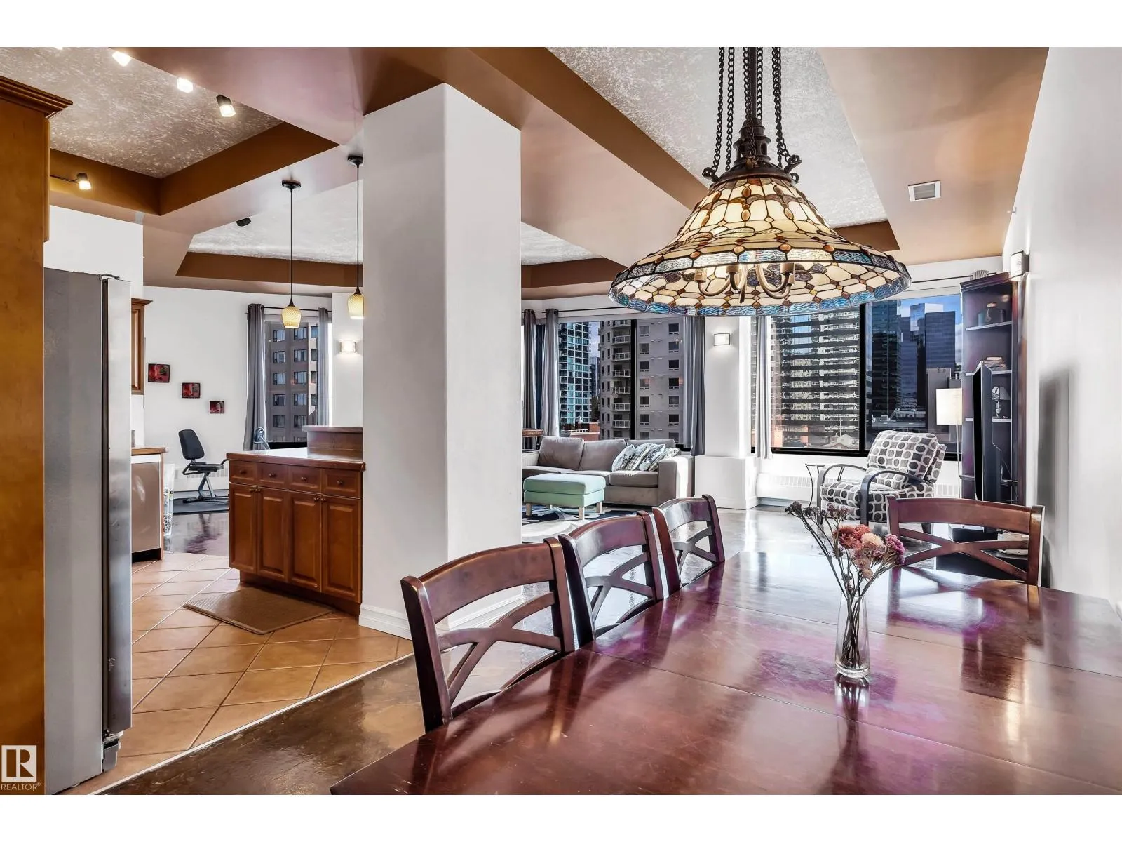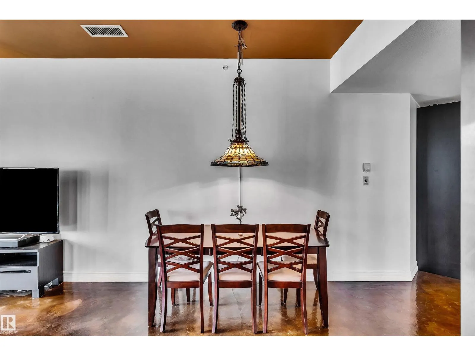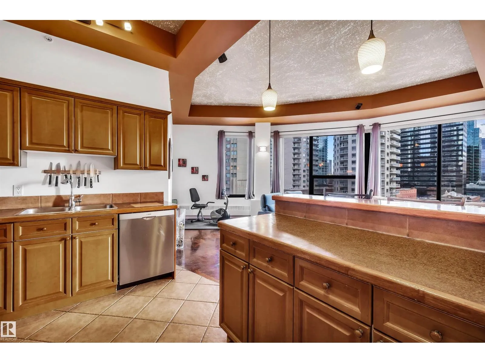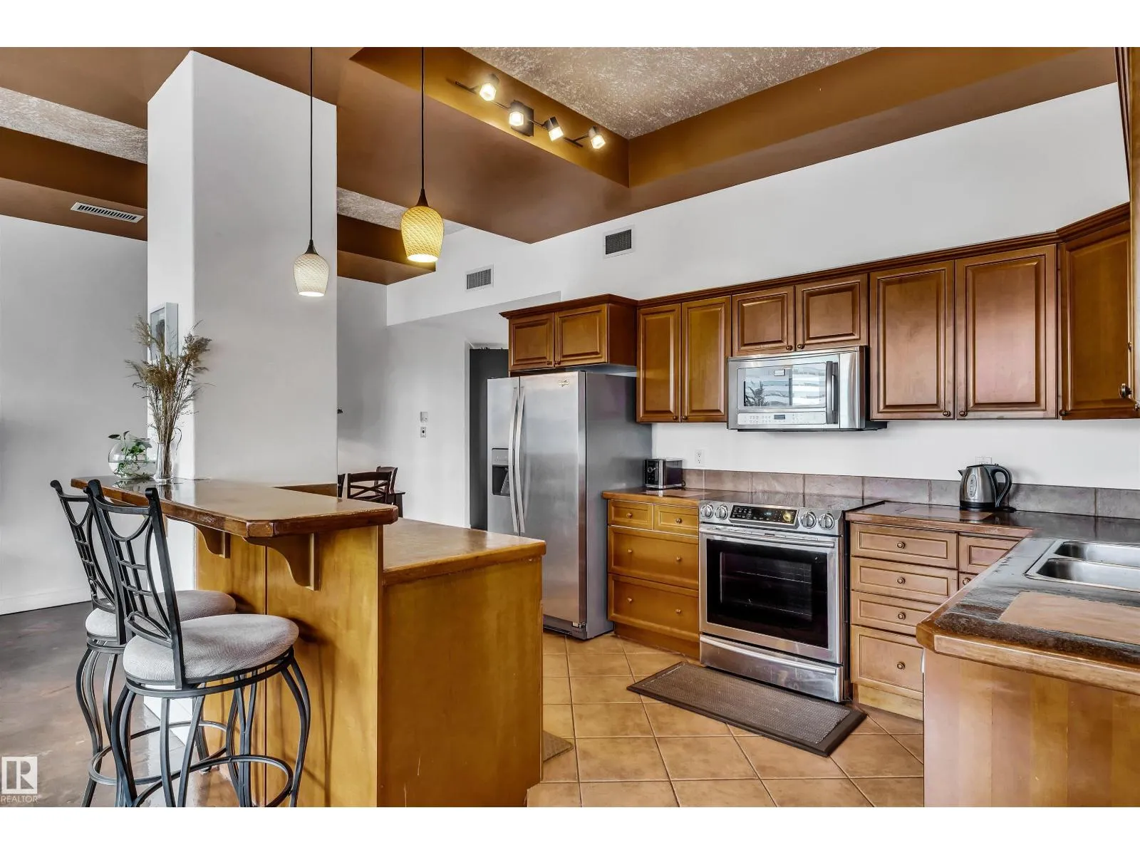 OPEN CONCEPT LOFT! 2 BEDROOMS + 2 BATHS. This 1,539 sq ft, 8th floor unit features an open layout with polished concrete & ceramic tile flooring, soaring 10 ft ceilings, and breathtaking panoramic views of downtown Edmonton. The spacious living room flows into an impressive kitchen, complete with a center island that seats two, an abundance of cabinets and ample counter space, all adjacent to the dining area - perfect for entertaining or intimate dinners. The primary bedroom includes a 4-pce ensuite bath & walk-in closet. The 2nd bedroom with a Murphy Bed can double as an office if required. The unit is finished with a second 3-pce bathroom and in-suite laundry for added convenience. 1 stall in parkade. Located across from a park currently being expanded and revitalized by the City, providing a beautiful outdoor space for relaxation. Enjoy great access to public transportation, allowing you to easily navigate the city, as well as proximity to excellent post-secondary schools & much more! ONLY $175,000 (id:27476)