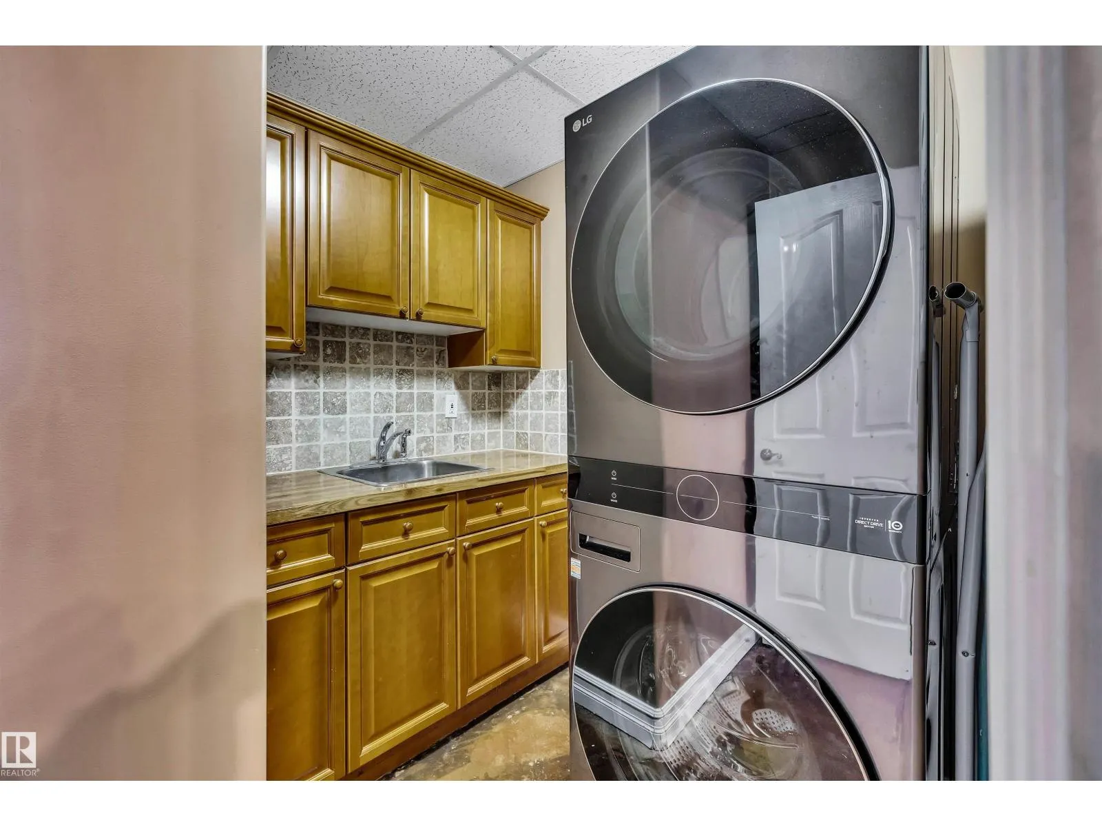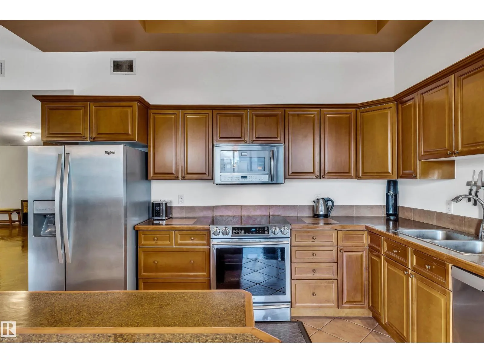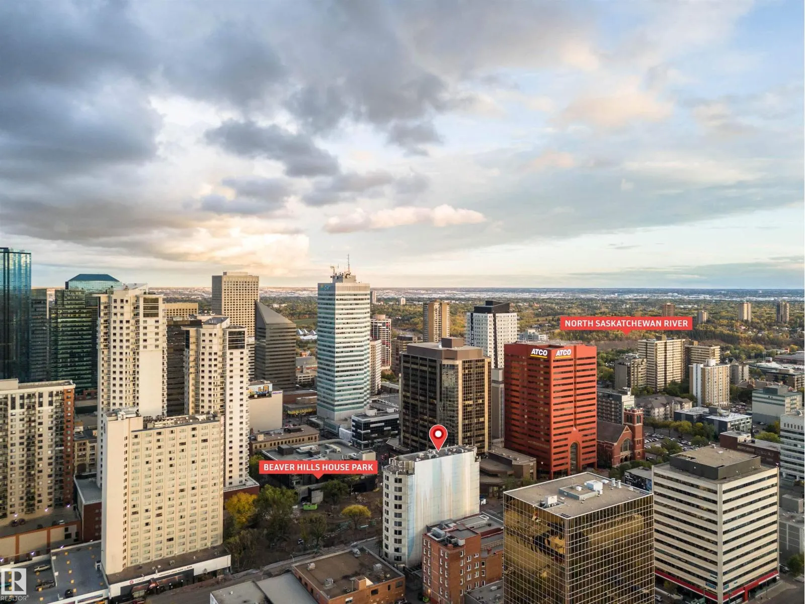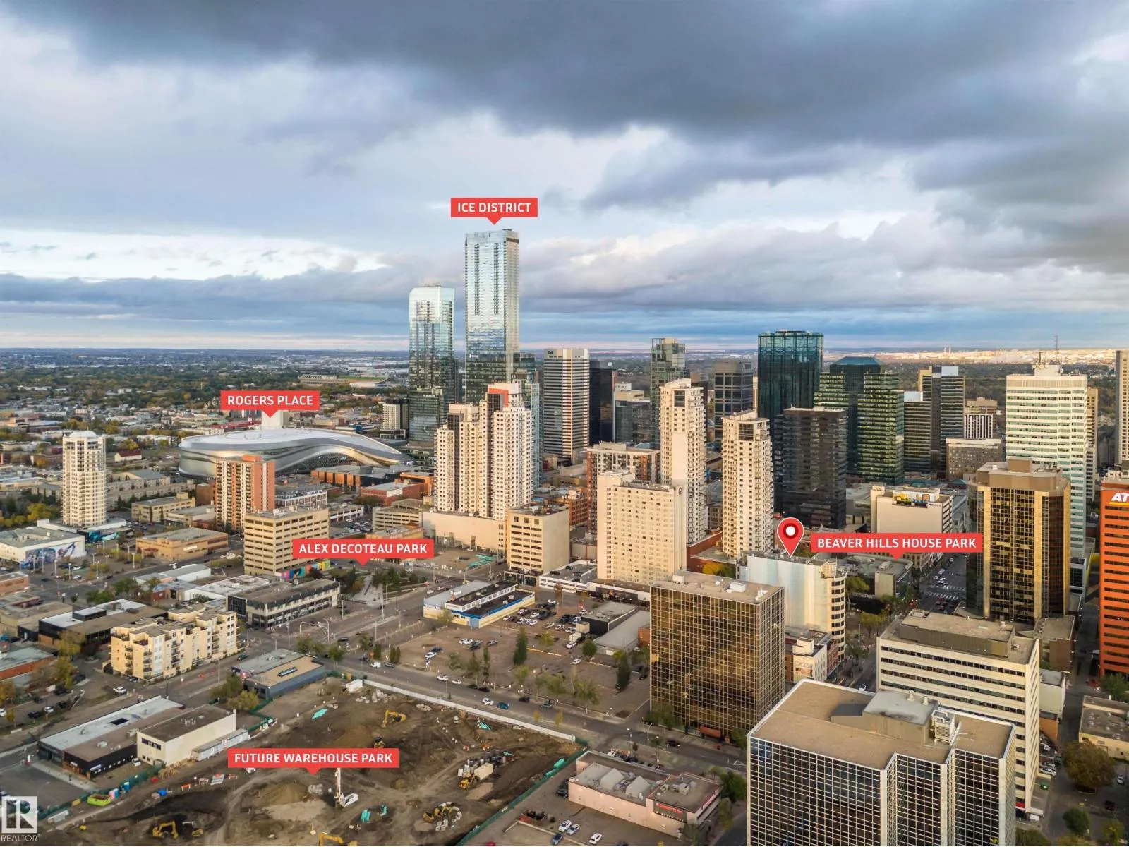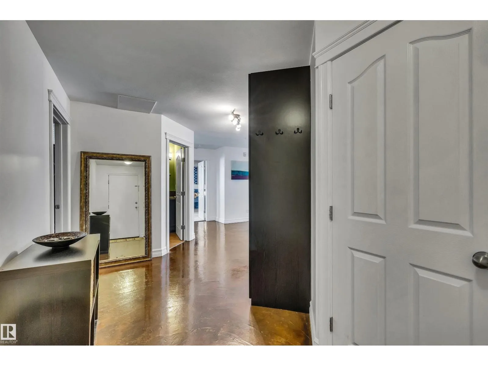 OPEN CONCEPT LOFT! 2 BEDROOMS + 2 BATHS. This 1,539 sq ft, 8th floor unit features an open layout with polished concrete & ceramic tile flooring, soaring 10 ft ceilings, and breathtaking panoramic views of downtown Edmonton. The spacious living room flows into an impressive kitchen, complete with a center island that seats two, an abundance of cabinets and ample counter space, all adjacent to the dining area - perfect for entertaining or intimate dinners. The primary bedroom includes a 4-pce ensuite bath & walk-in closet. The 2nd bedroom with a Murphy Bed can double as an office if required. The unit is finished with a second 3-pce bathroom and in-suite laundry for added convenience. 1 stall in parkade. Located across from a park currently being expanded and revitalized by the City, providing a beautiful outdoor space for relaxation. Enjoy great access to public transportation, allowing you to easily navigate the city, as well as proximity to excellent post-secondary schools & much more! ONLY $175,000 (id:27476)